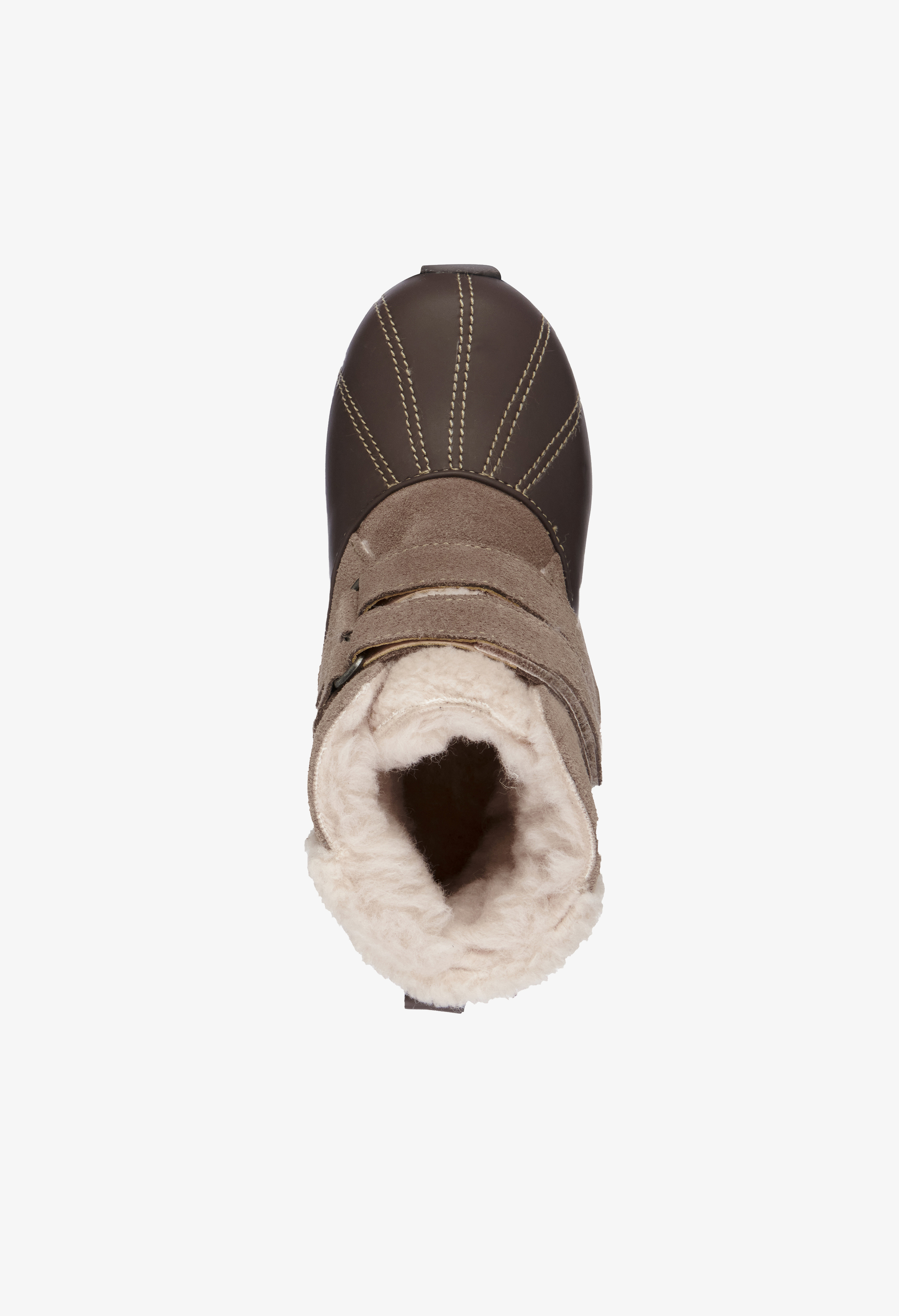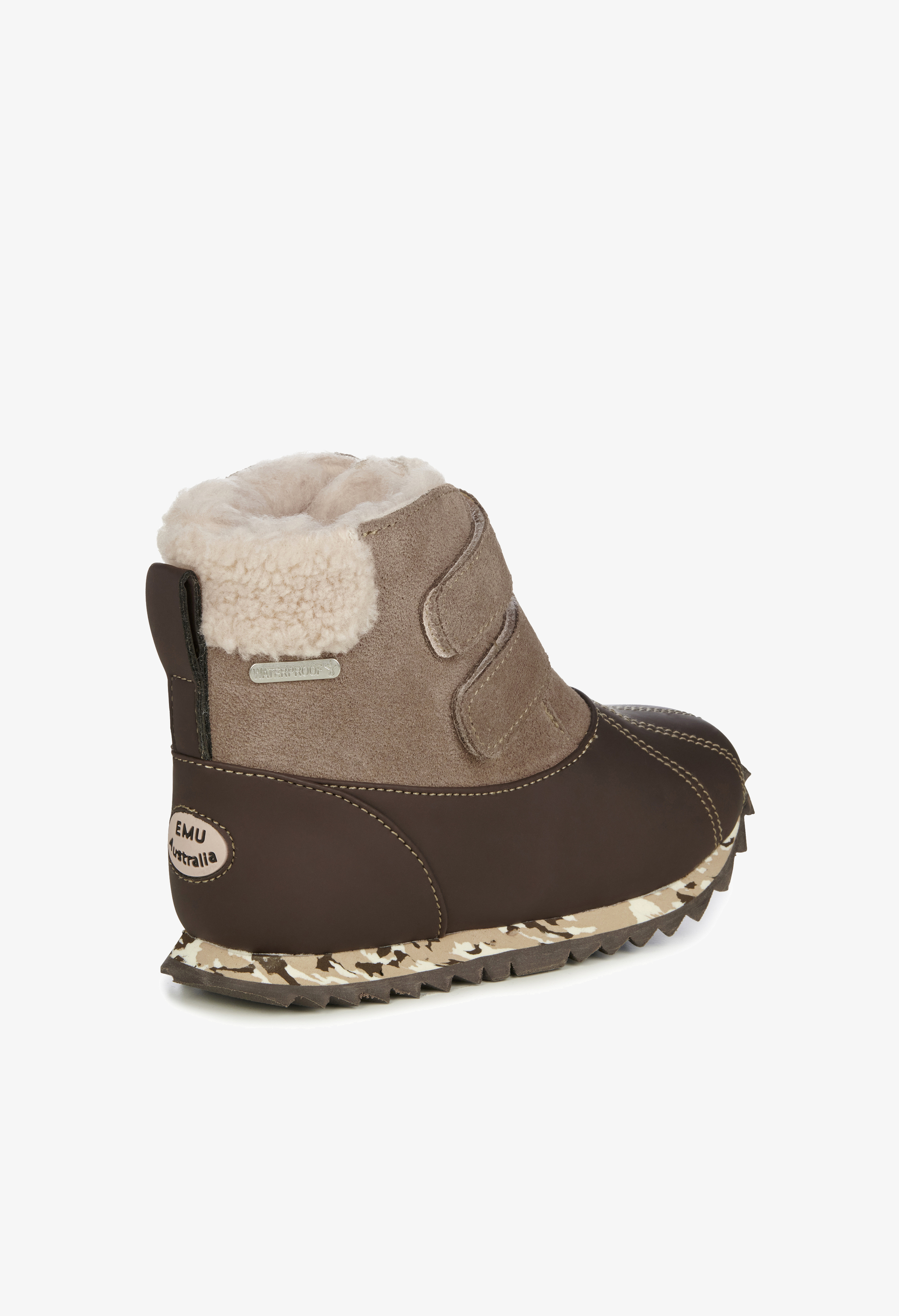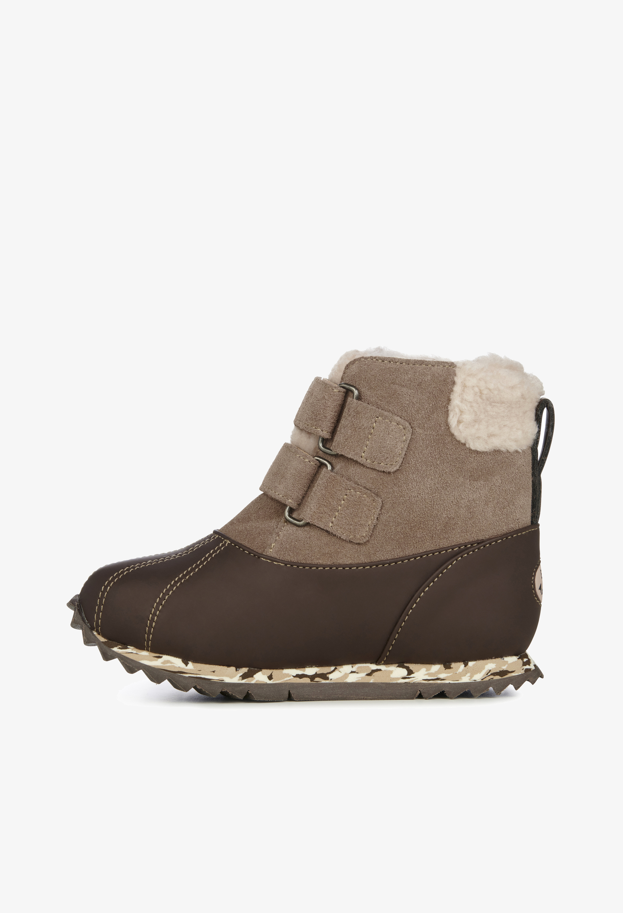 Cholewka wykonana jest z naturalnej skóry zamszowej. W połączeniu z naturalnym, miękkim wnętrzem z kożucha merynosów gwarantuje ciepło i wygodę. Zapięcie na rzepę idealnie dopasuje się do stopy i ułatwi zakładanie i zdejmowanie obuwia. Gumowa antypoślizgowa podeszwa zapewnia stabilny krok i amortyzację. Usztywniony zapiętek zapobiega odkształceniom.