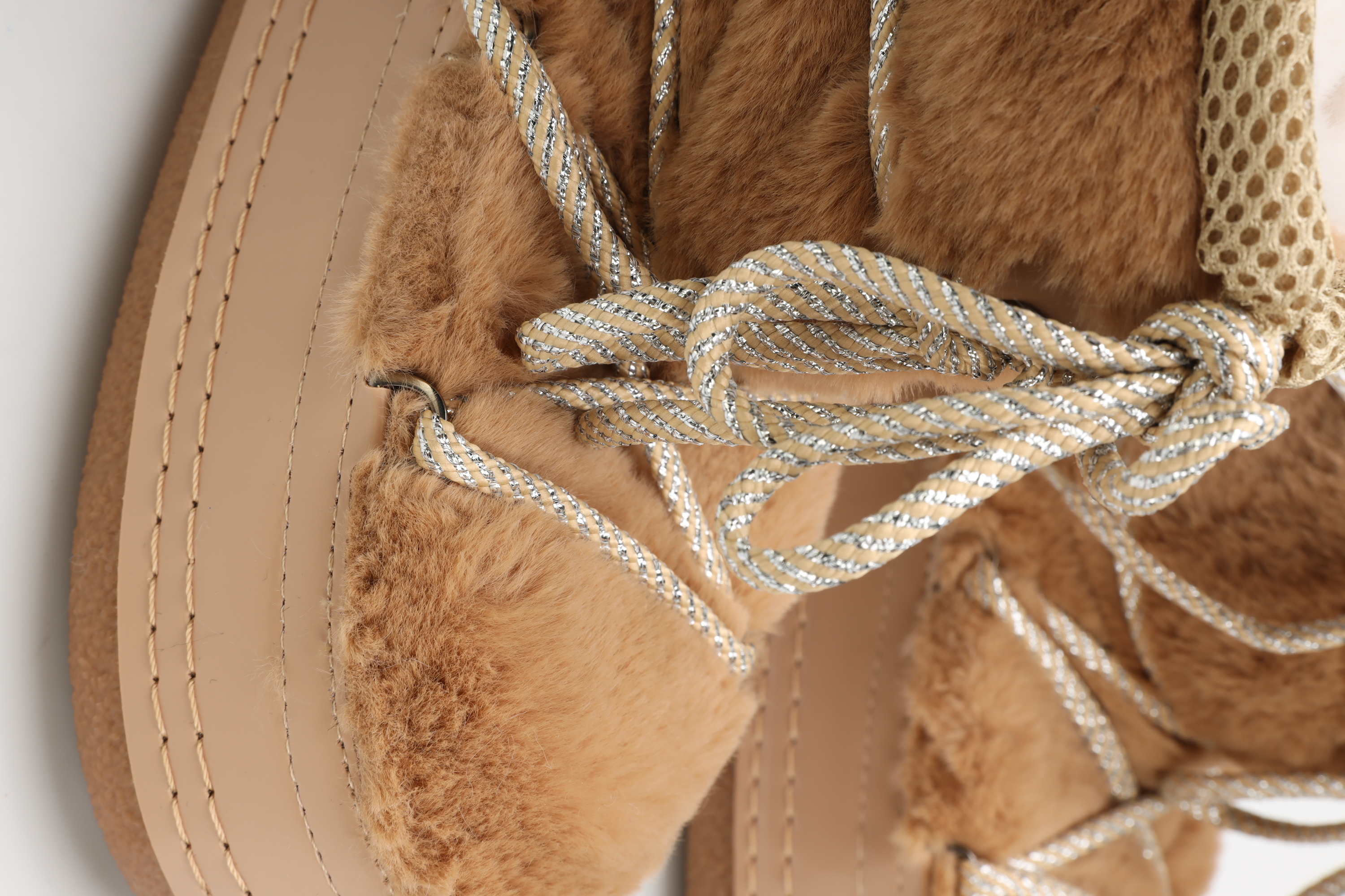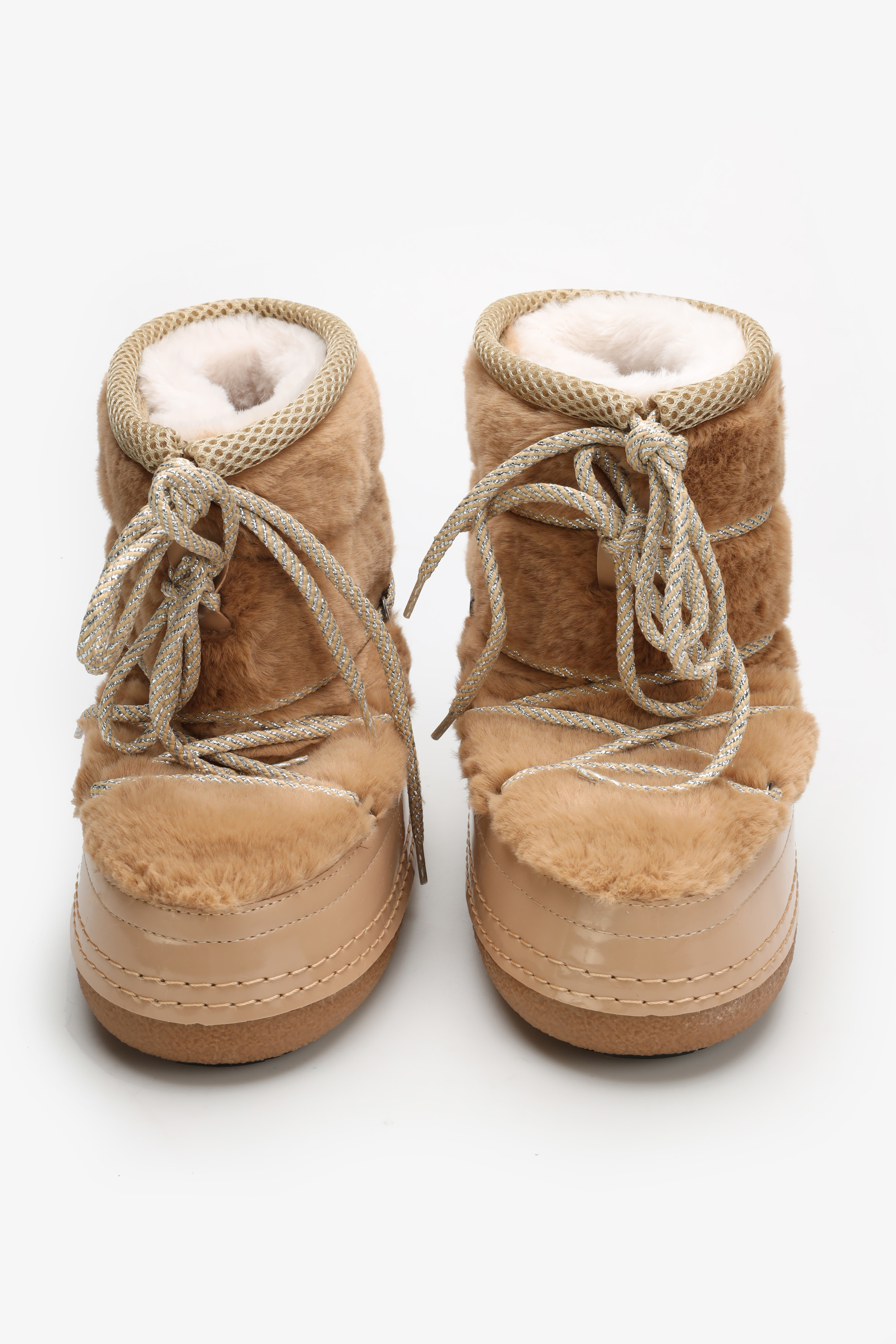 Najmodniejszy krój w klasycznym,beżowym kolorze wzbogacony został nietypowym sznurowaniem,które prezentuje się bardzo efektownie i jest niewątpliwe ciekawym elementem ozdobnym. Gumowa,żłobiona podeszwa zapewni dobrą przyczepność.