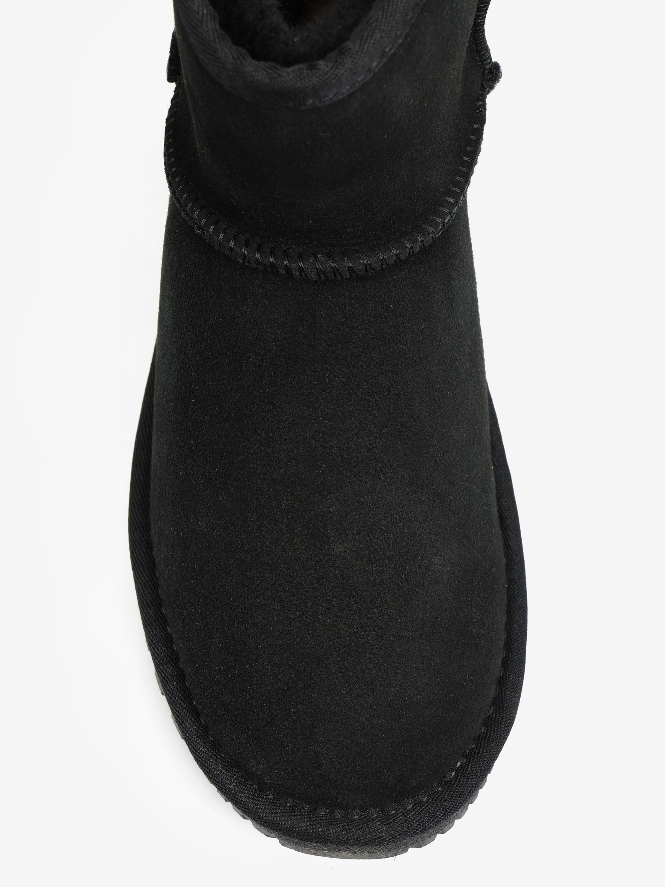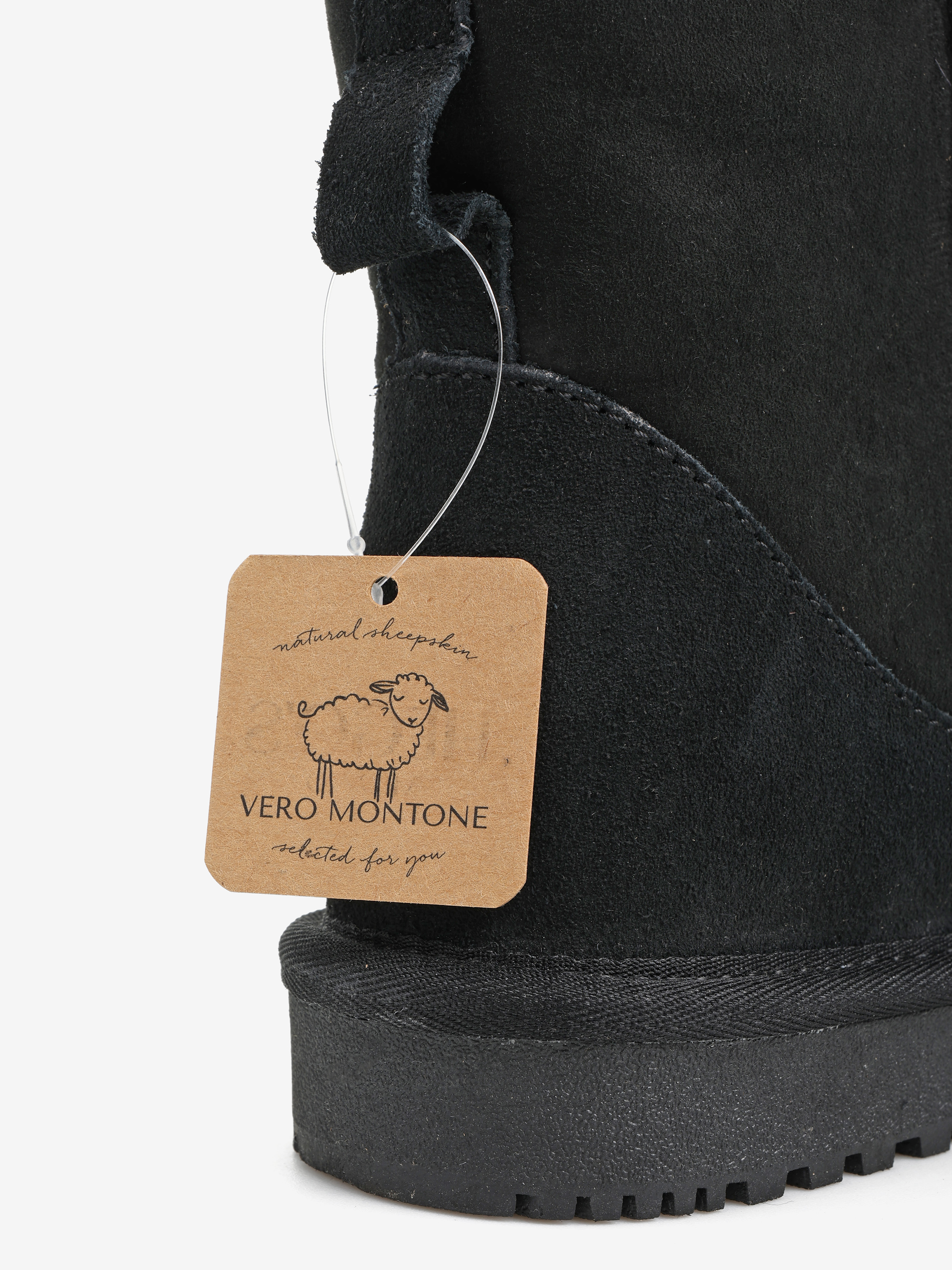 Śniegowce na niskiej platformie, wykonane z 100% naturalnej skóry owczej. Zewnętrzna warstwa to miękka, zamszowa skóra, natomiast wnętrze to ciepły, naturalny kożuch.
