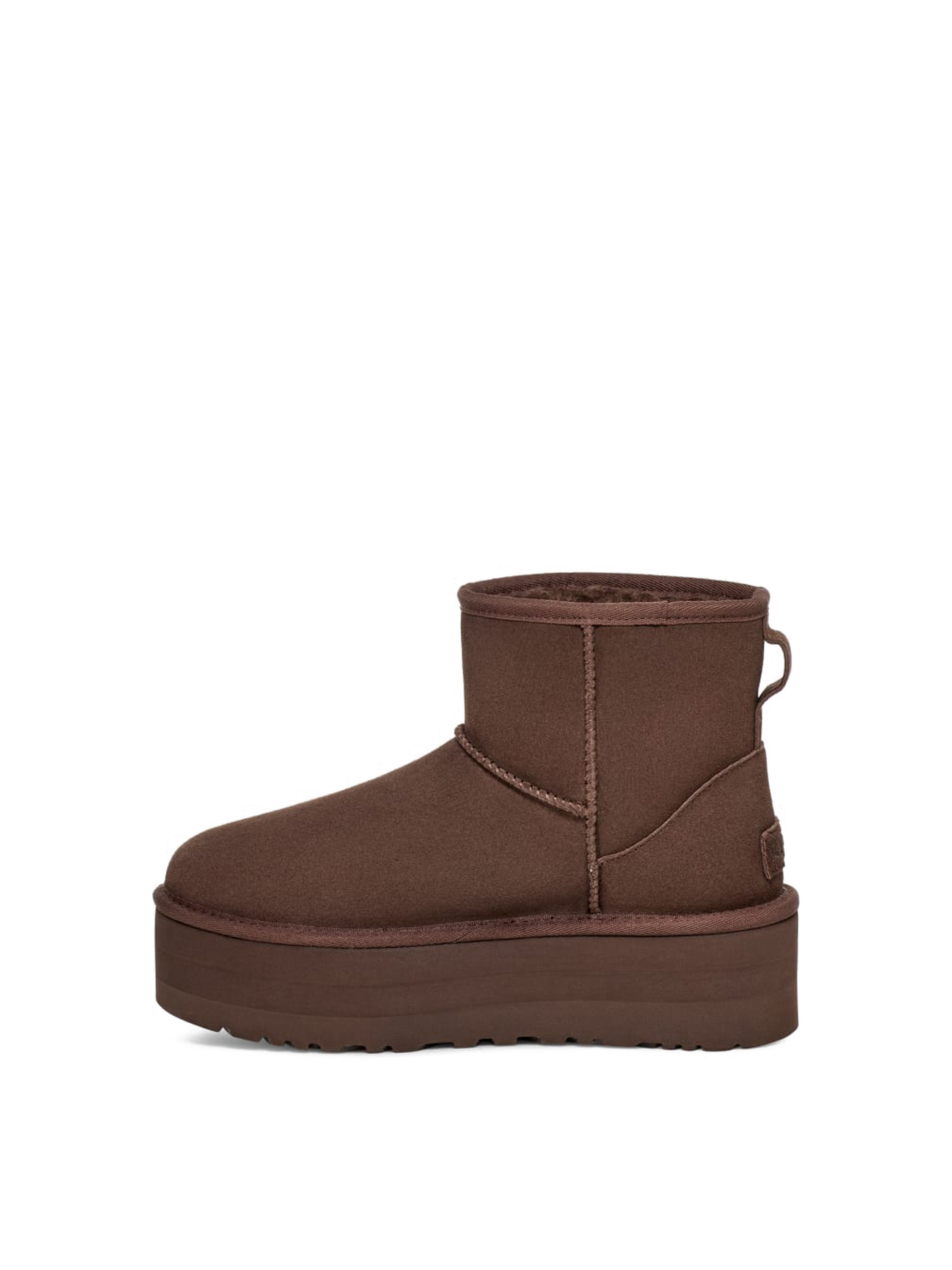 Śniegowce na platformie UGG to Top Trend sezonu. Wykonane są z owczej skóry, która gwarantuje nie tylko ciepło, ale również wygodę. Wysokogatunkowa i starannie dobrana wełna wykorzystana do ocieplenia wnętrza dzięki termostatycznym właściwościom reguluje temperaturę ciała, przez co buty można nosić w każdych warunkach i o każdej porze roku. Podeszwa na platformie zapewnia odpowiednią amortyzację i świetnie sprawdzi się zarówno na suchej jak i mokrej powierzchni.