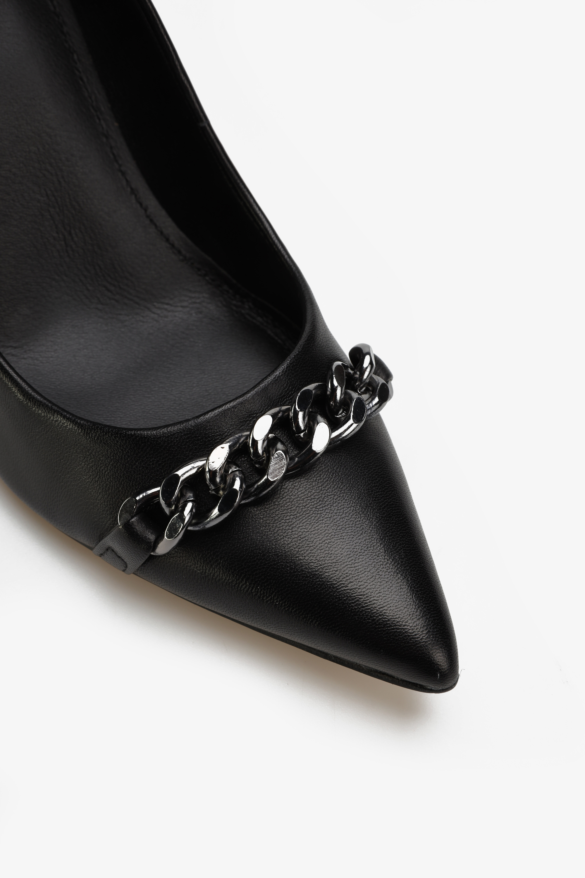 Spiczasty nosek oraz wysoki obcas optycznie wysmuklają i wydłużają sylwetkę.Delikatna klamra w srebrnym kolorze przymocowana na przodzie stanowi ozdobę i nadaje charakteru klasycznemu modelowi FL8PNT.