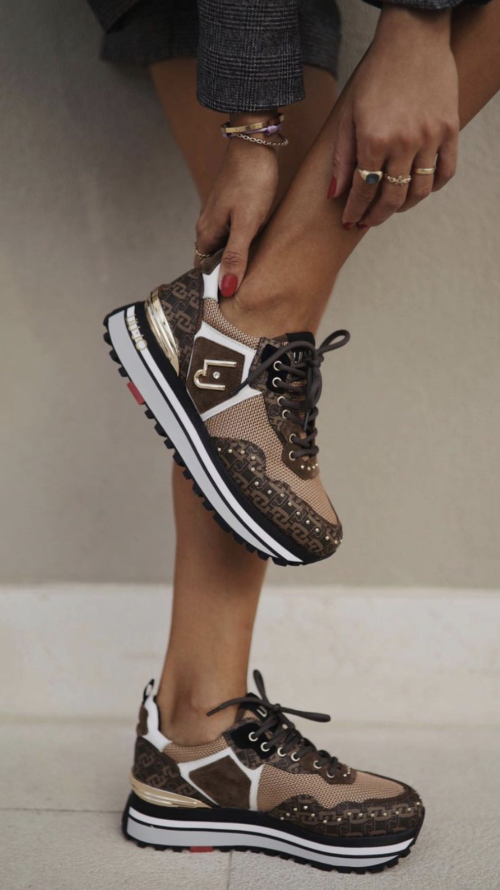 W kolekcji AW20 nie mogło zabraknąć unikatowych, przyciągających wzrok sneakersów. Charakterystyczna dla sportowych butów marki podeszwa na platformie zapewnia komfort i amortyzację. Cholewka wykonana ze skóry i wysokiej jakości materiału łącząca ze sobą jesienne kolory oraz print w połączeniu ze skórzaną wkładką gwarantuje wygodę przez wiele godzin na nogach. Nikt nie przejdzie obok nich obojętnie!