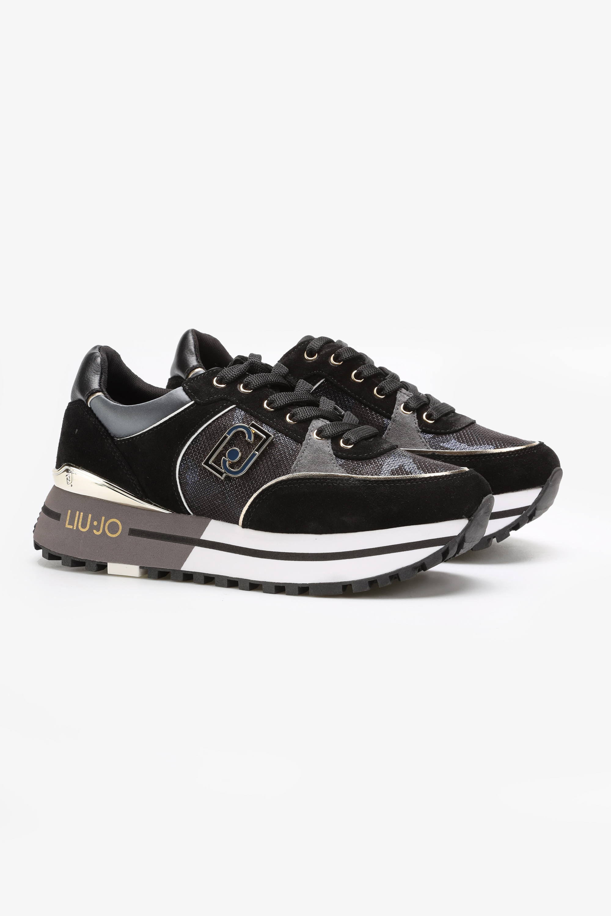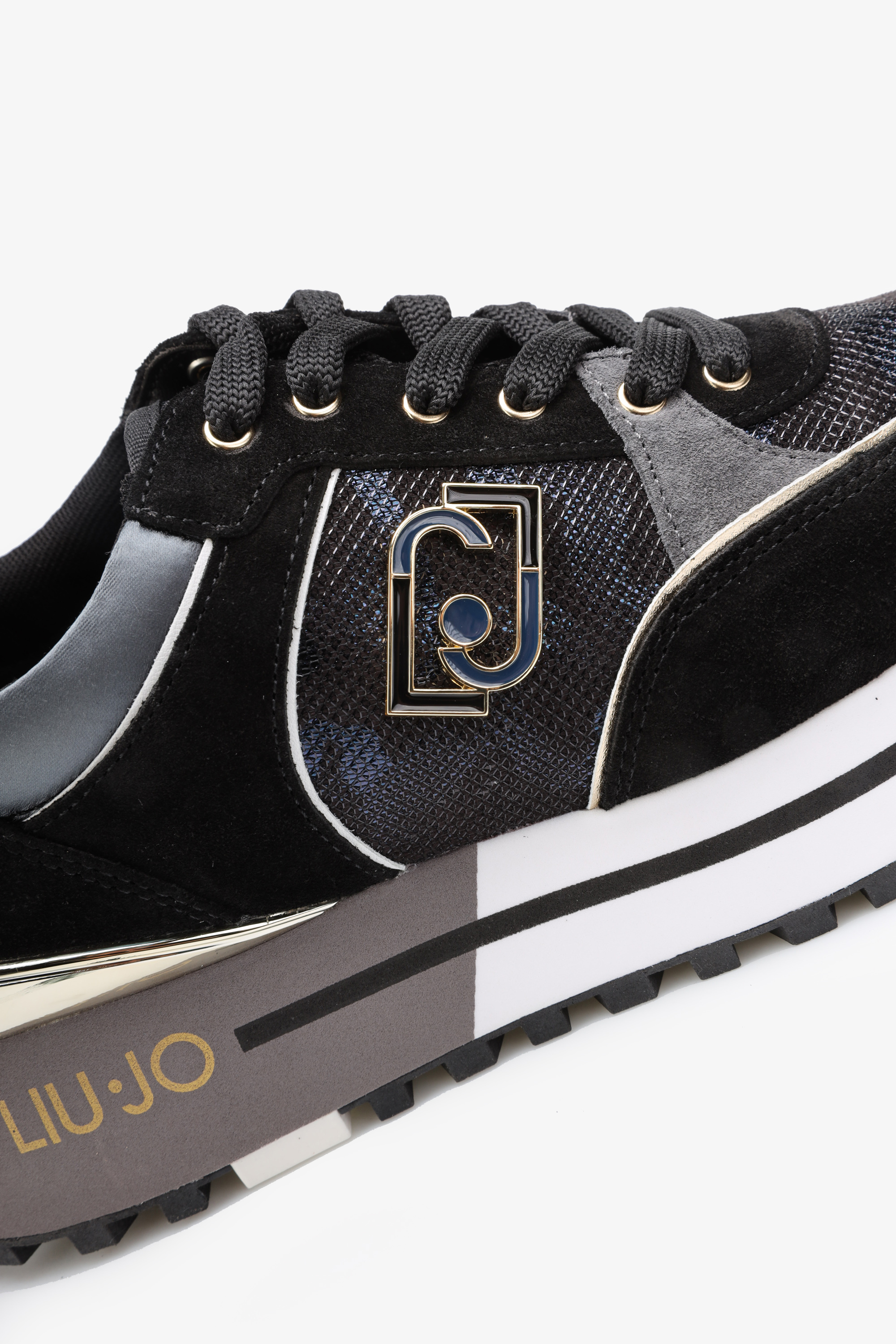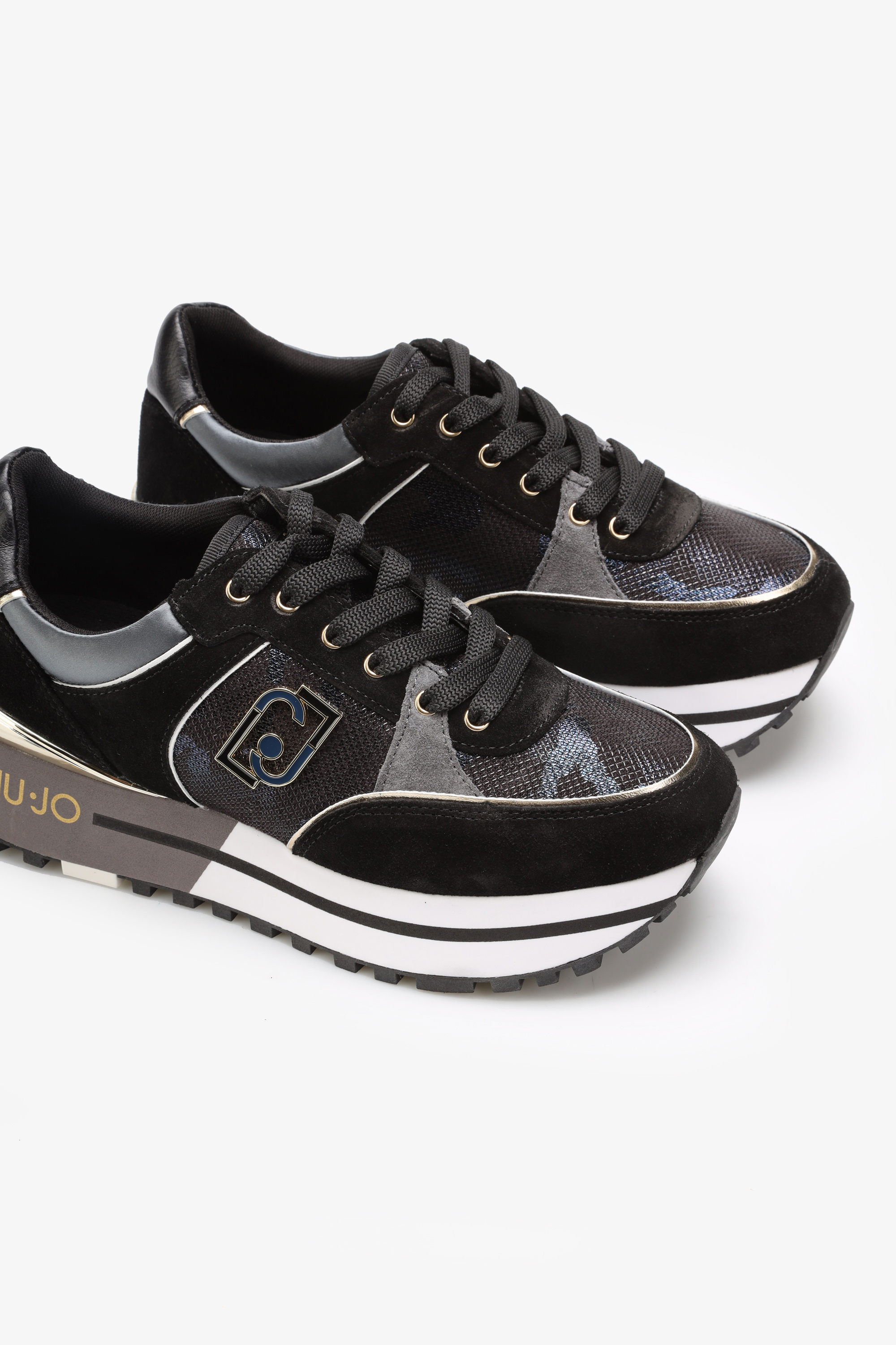 Czarna cholewka wykonana jest z naturalnej skóry oraz wysokogatunkowych materiałów. Chrakterystyczna dla sportowych butów marki Liu Jo podeszwa na platformie wpisuje się w Trendy sezonu. Odpowiada ona za komfort i stabilny krok. Wygodne sznurowanie pozwala dopasować obuwie do stopy.