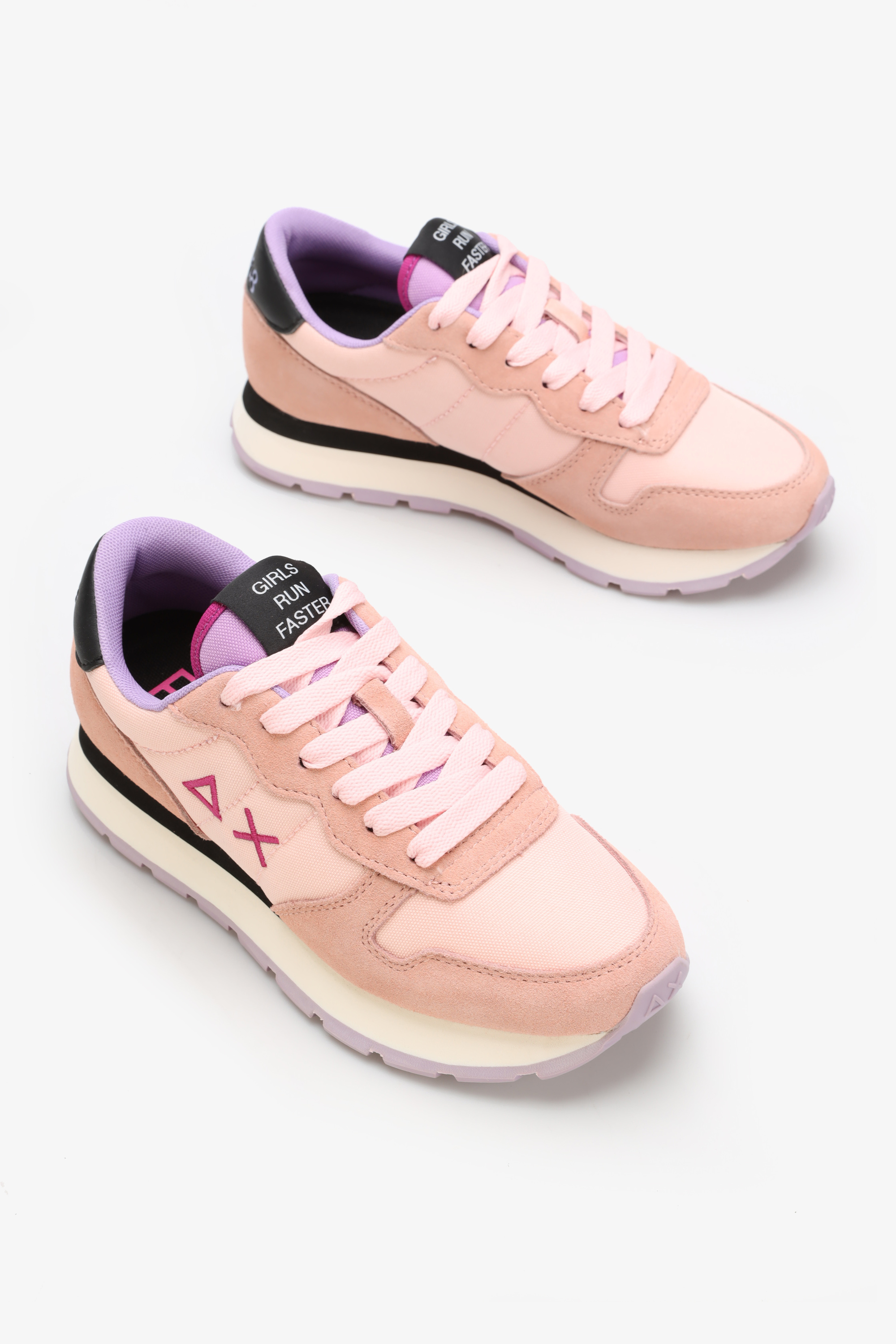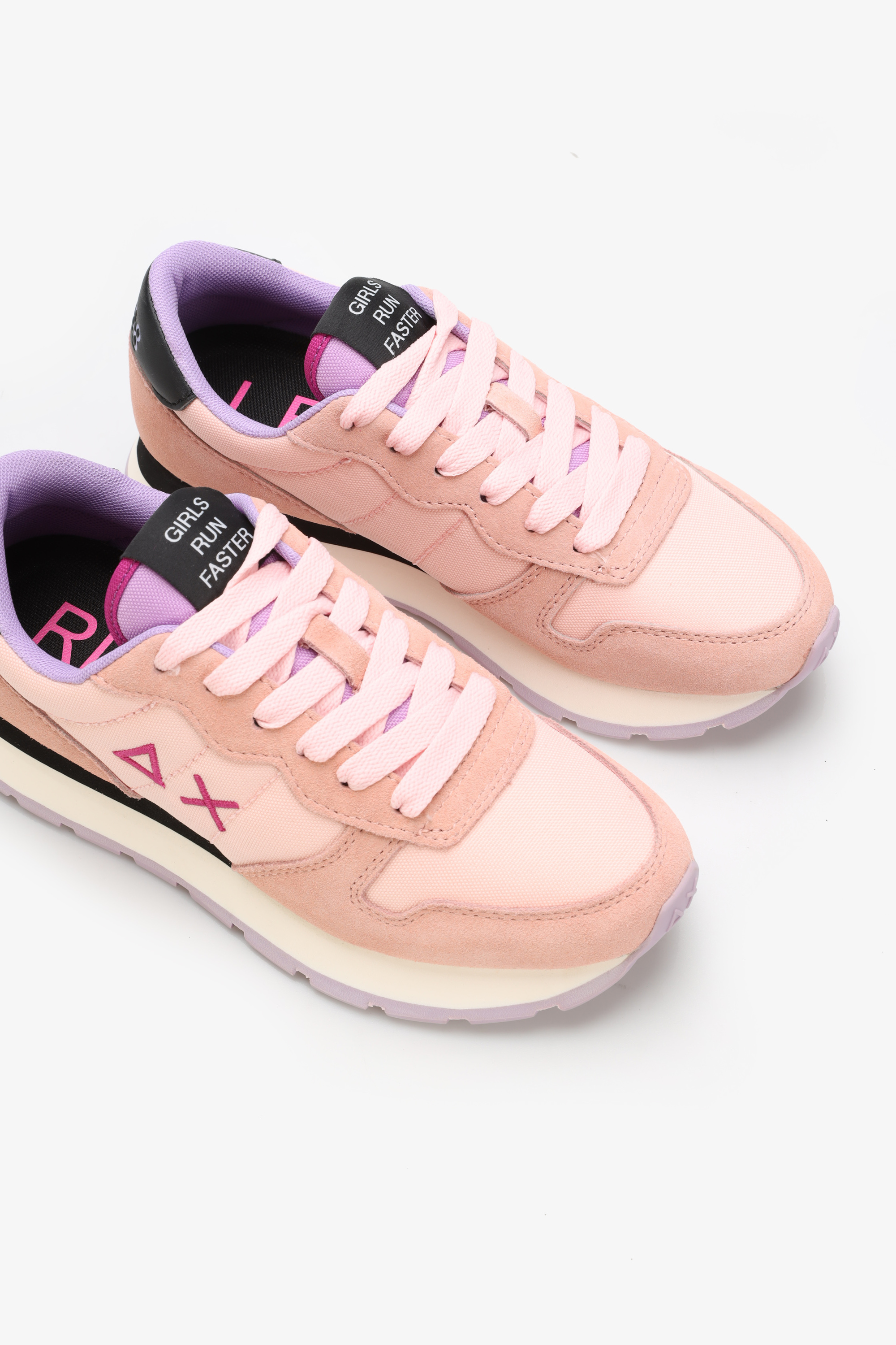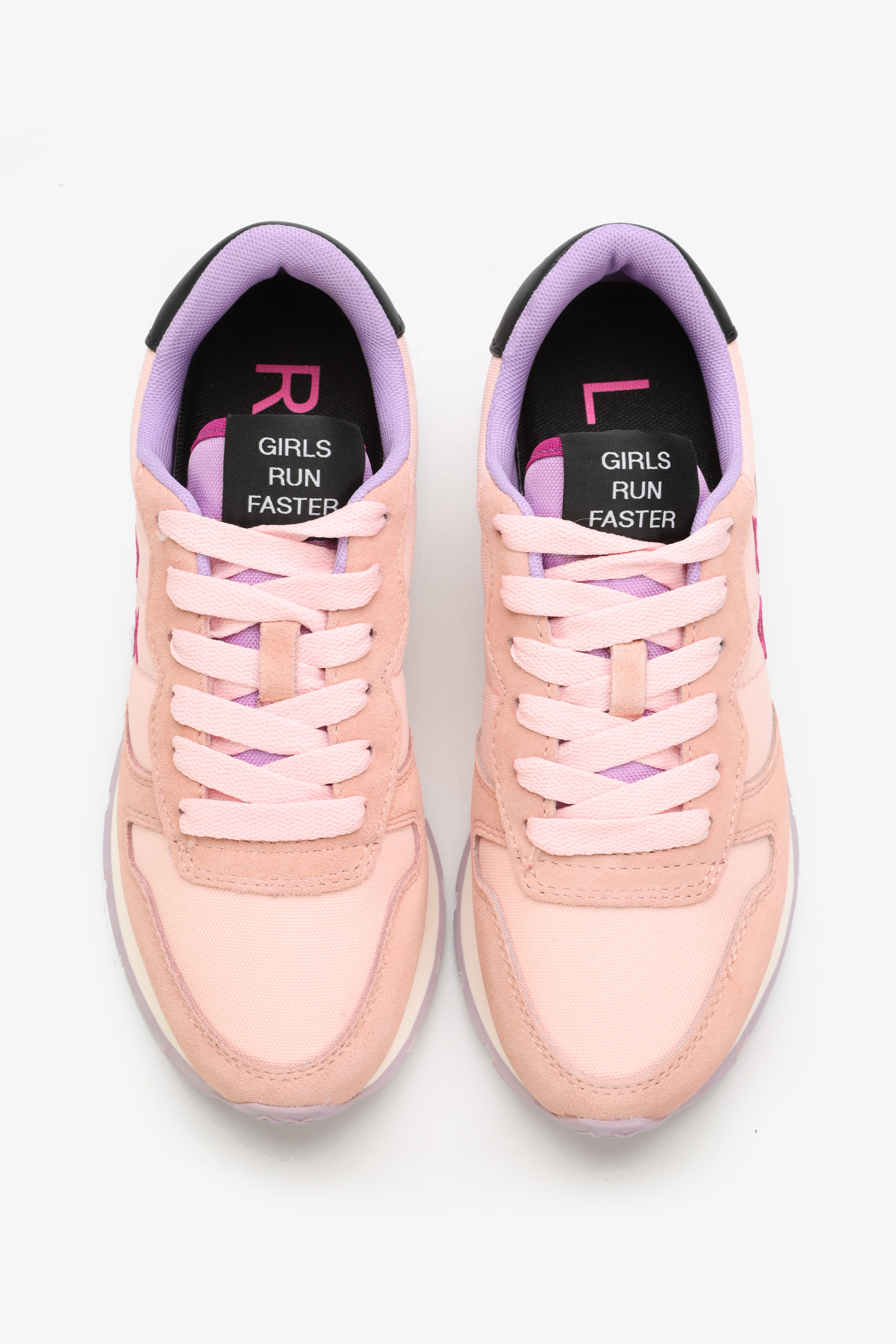 Sneakersy damskie w różowym kolorze wykonane są z zamszowej skóry i materiału tekstylnego. Posiadają czarny zapiętek a z boku widoczne jest logo marki. Wygodna i miękka podeszwa w stylu running shoes odpowiada za komfort chodzenia przez cały dzień. Dodatkowa para sznurówek w innym kolorze pozwala zmieniać je w zależności od nastroju.