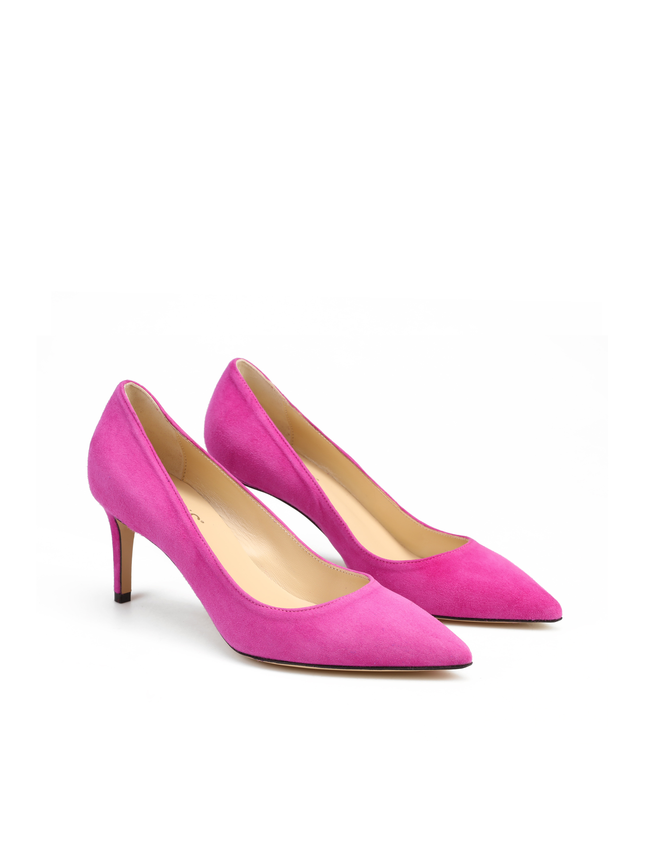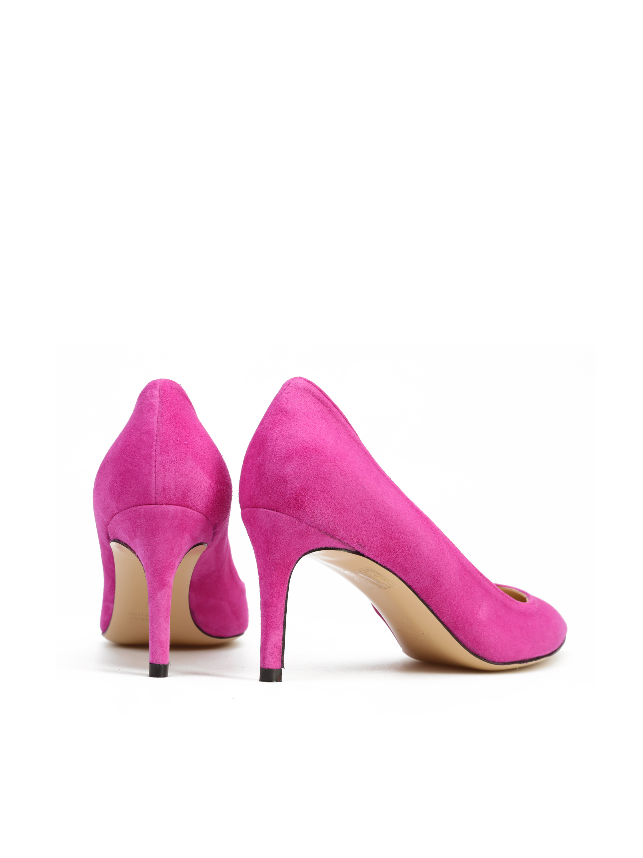 Szpilki w szpic wykonane są z włoskiej, zamszowej skóry. Cholewka w modnym odcieniu różu. Wygodny obcas na szpilce w połączeniu ze skórzaną wkładką zapewnią komfort podczas użytkowania obuwia.