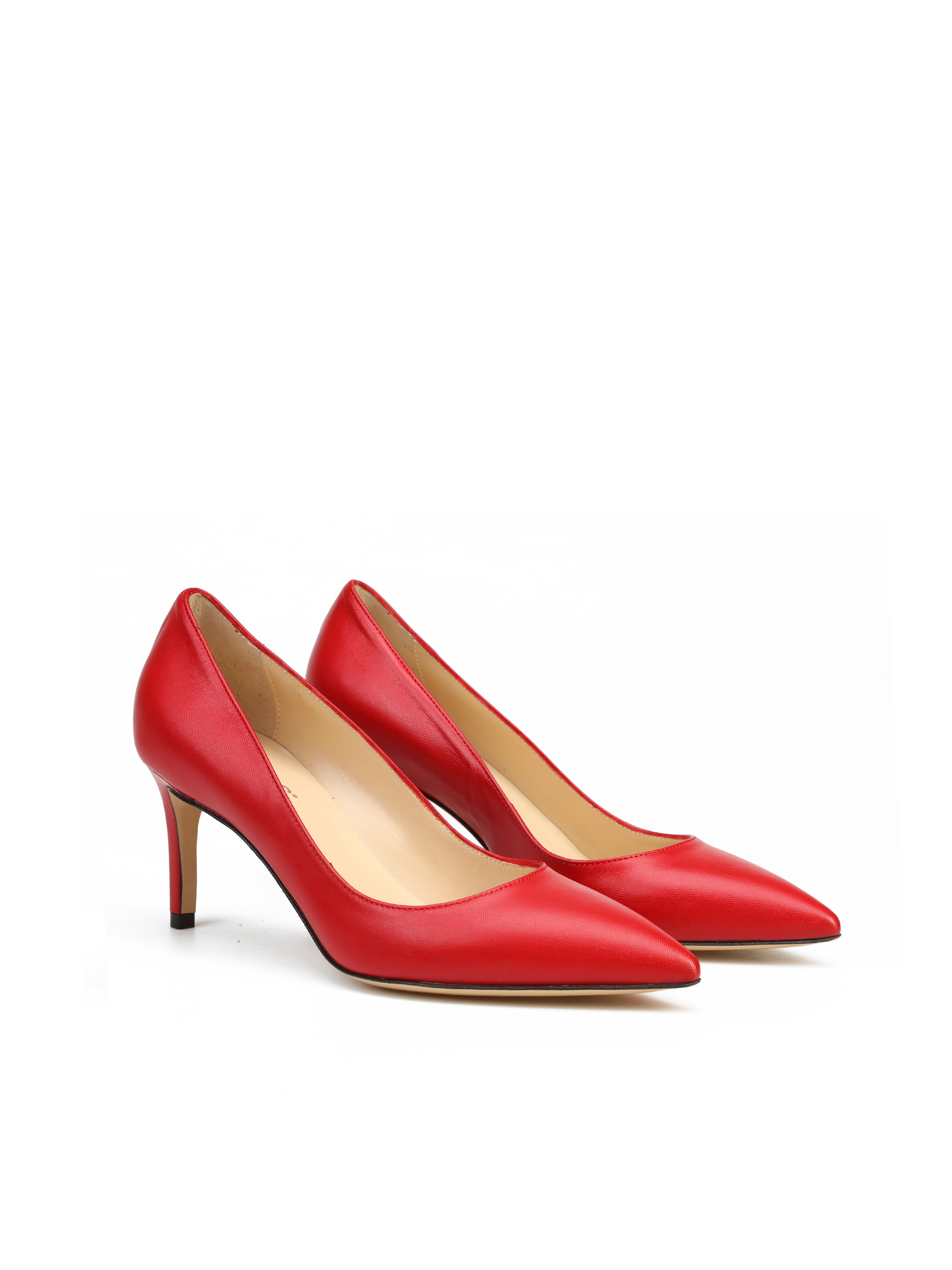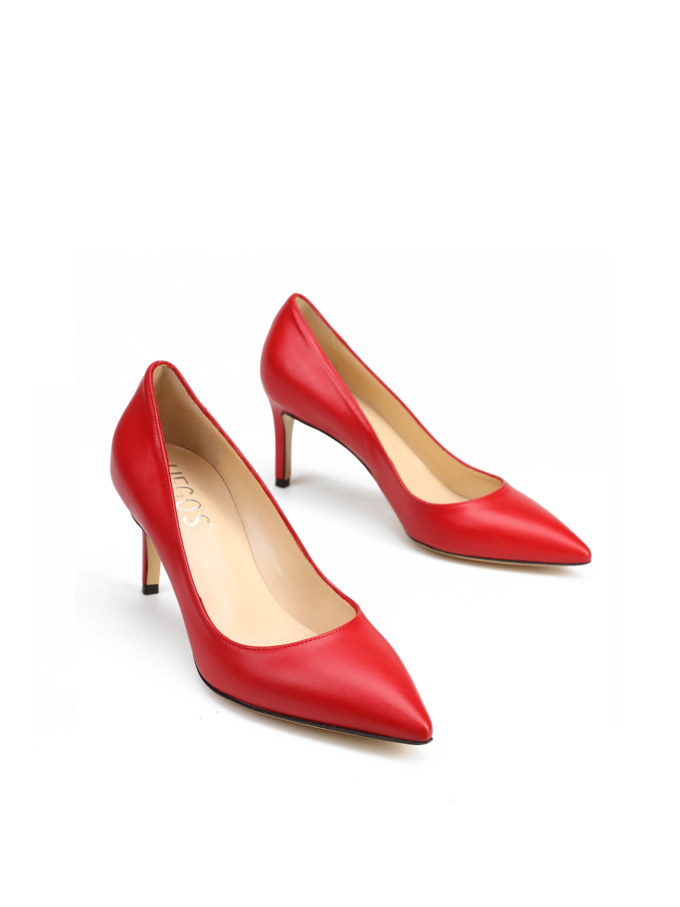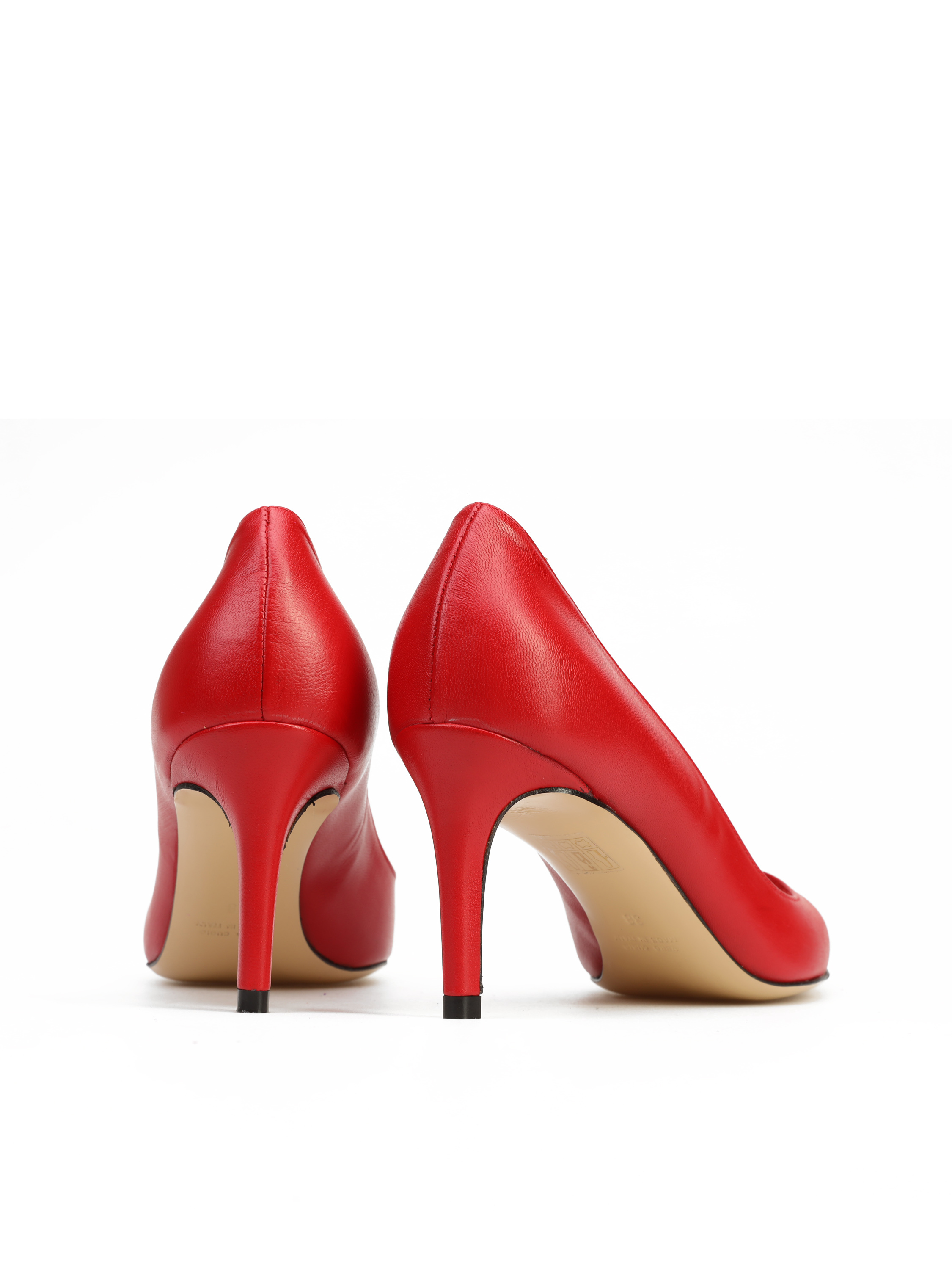 Szpilki w szpic wykonane są z włoskiej, naturalnej skóry. Cholewka w stylowym, czerwonym kolorze. Wygodny obcas na szpilce w połączeniu ze skórzaną wkładką zapewnią komfort podczas użytkowania obuwia.