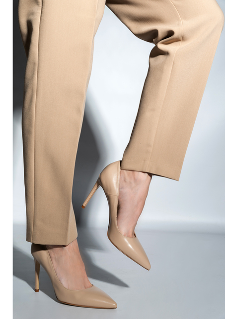 Szpilki w beżowym kolorze wykonane są z włoskiej naturalnej skóry NAPPA. Kolory natury to Top Trend sezonu. Wygodny obcas na szpilce w połączeniu ze skórzaną wkładką i elastyczną podeszwą gwarantują wygodę i komfort. Nosek w szpic wpisuje się nie tylko w obecne Trendy.
