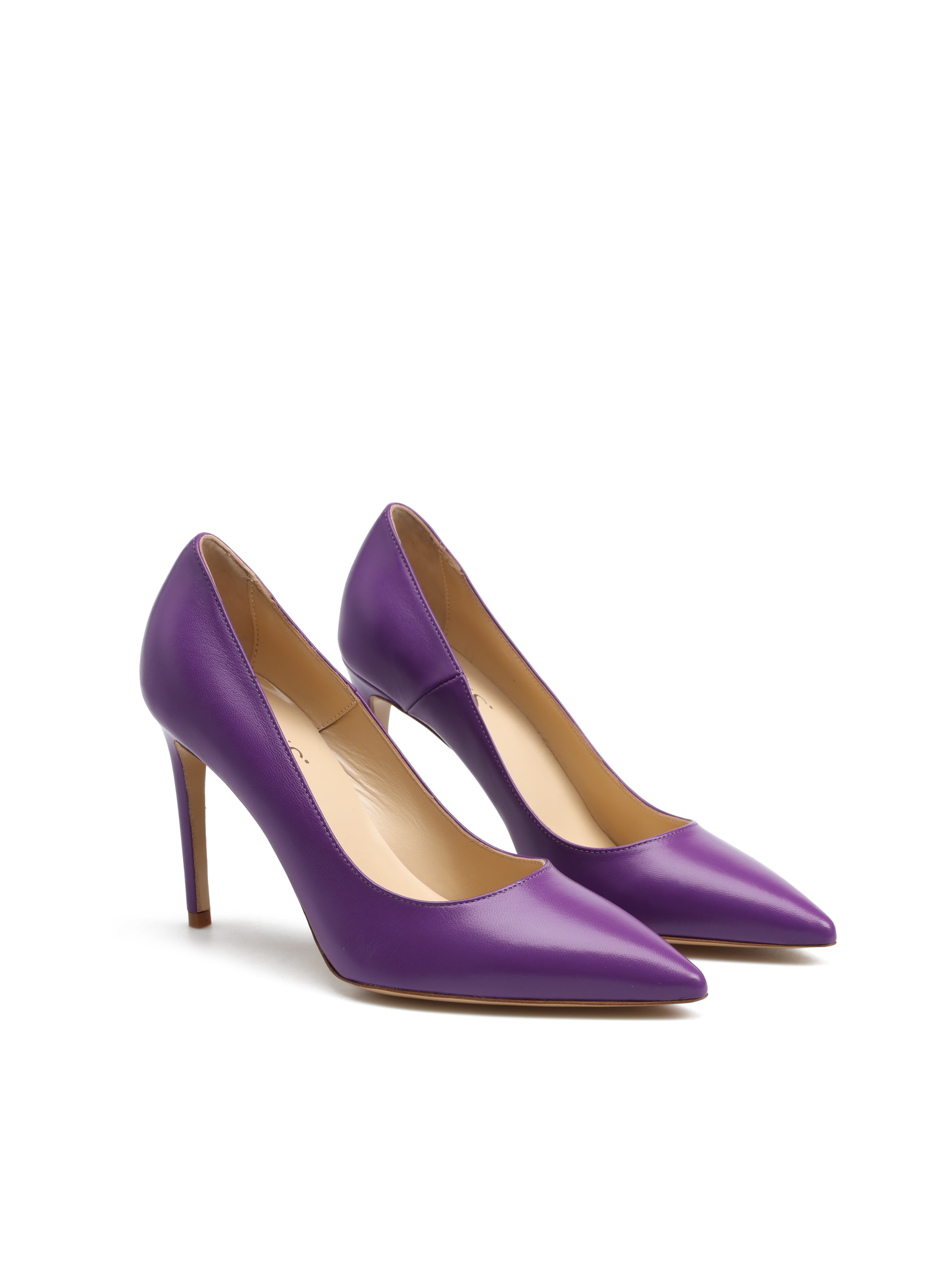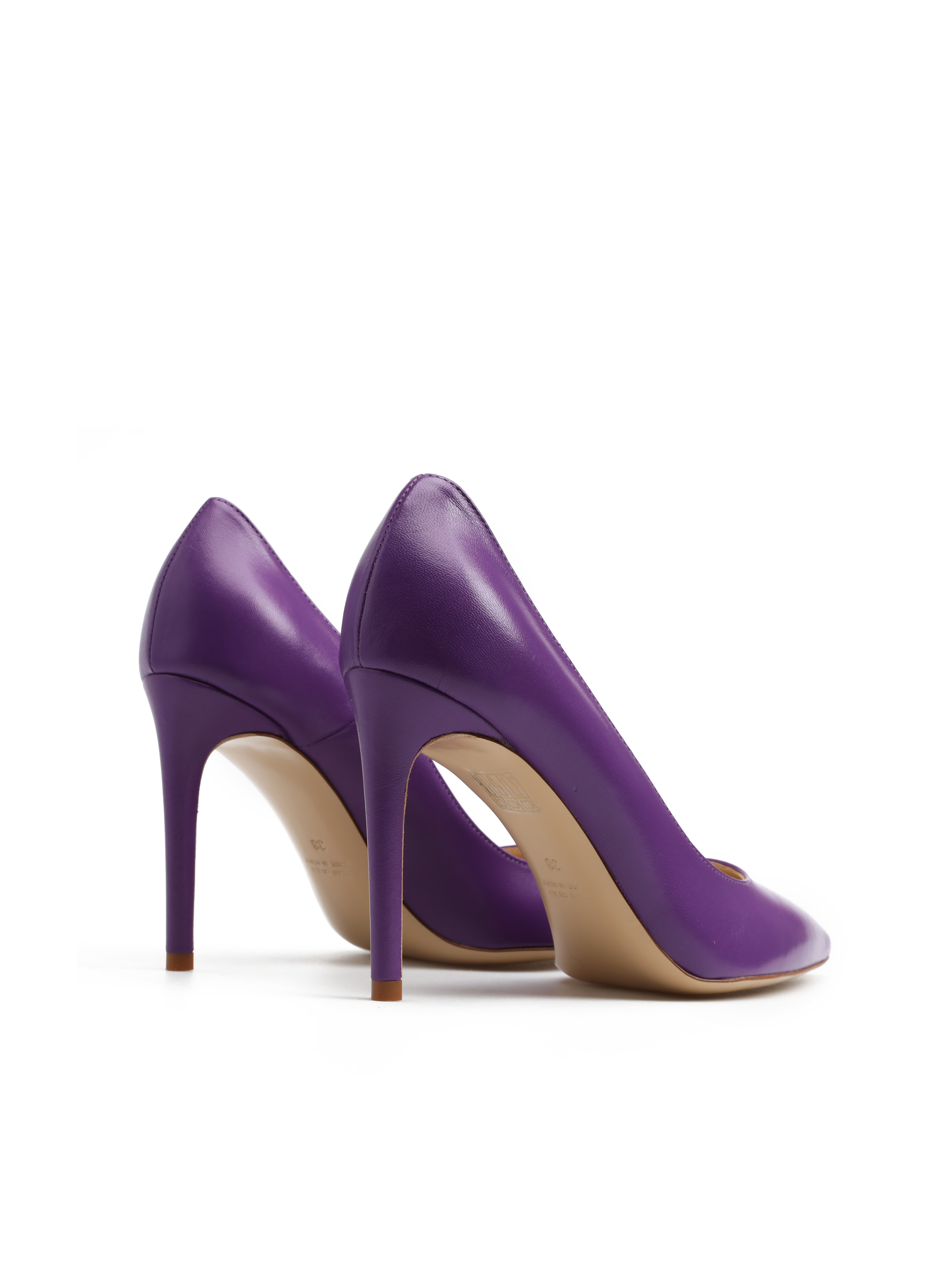 Szpilki damskie to propozycja dla kobiet ceniących klasyczny design. Szpilki w fioletowym kolorze wykonane są z włoskiej naturalnej skóry. Obcas na szpilce w połączeniu ze skórzaną wkładką i elastyczną, skórzaną podeszwą gwarantują wygodę i komfort. Nosek w szpic wpisuje się nie tylko w obecne Trendy.