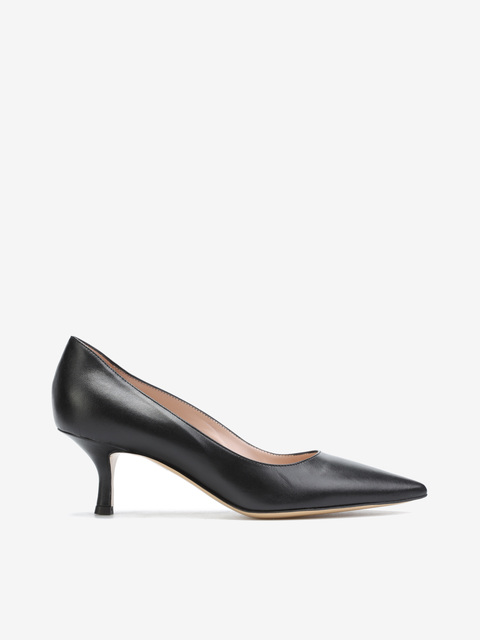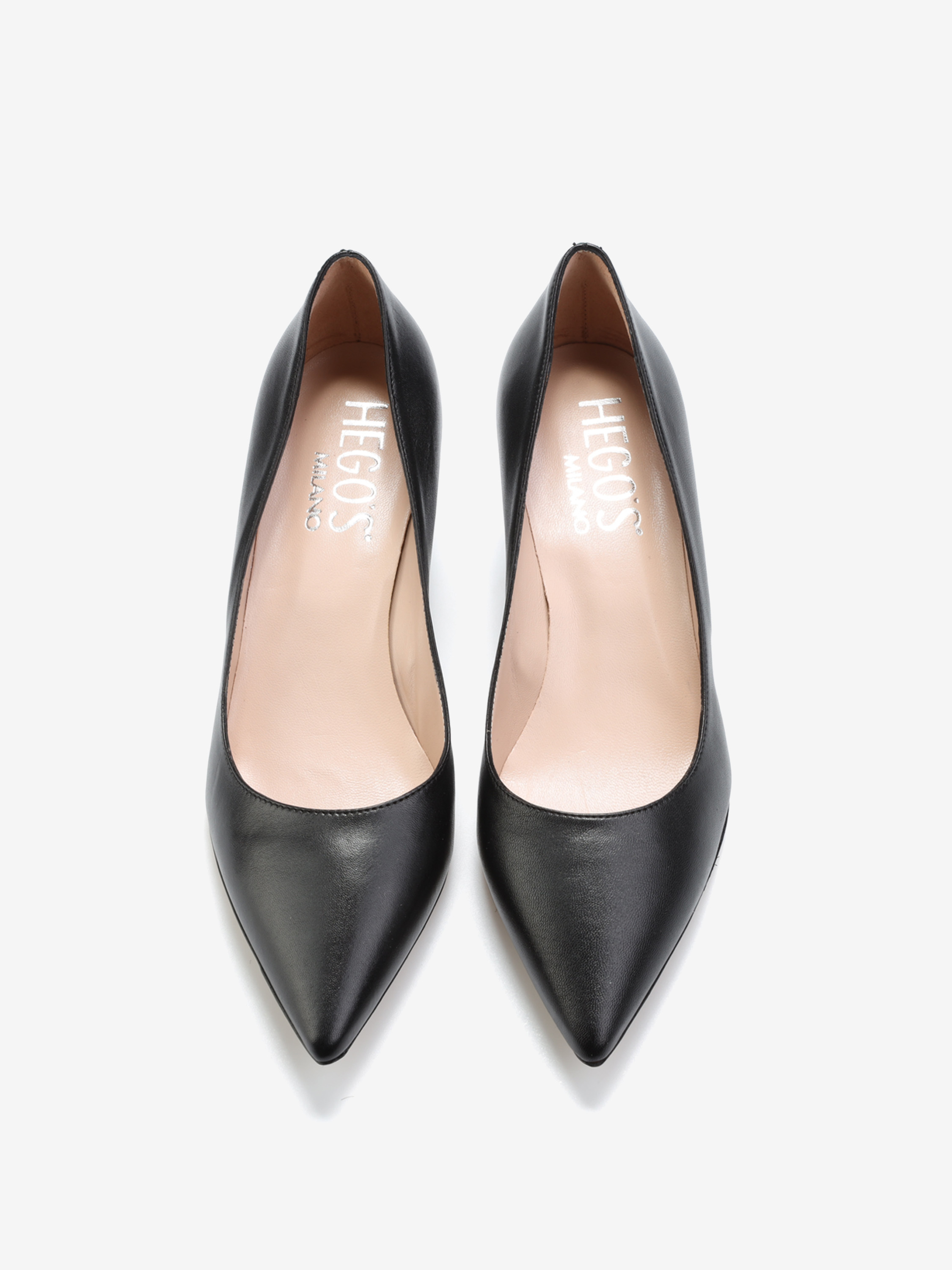 Szpilki w szpic w ponadczasowym, czarnym kolorze wykonane są z włoskiej naturalnej skóry. Wygodny obcas na niewysokiej szpilce w połączeniu ze skórzaną wkładką i elastyczną podeszwą gwarantują wygodę i komfort. Nosek w szpic wpisuje się nie tylko w obecne Trendy.