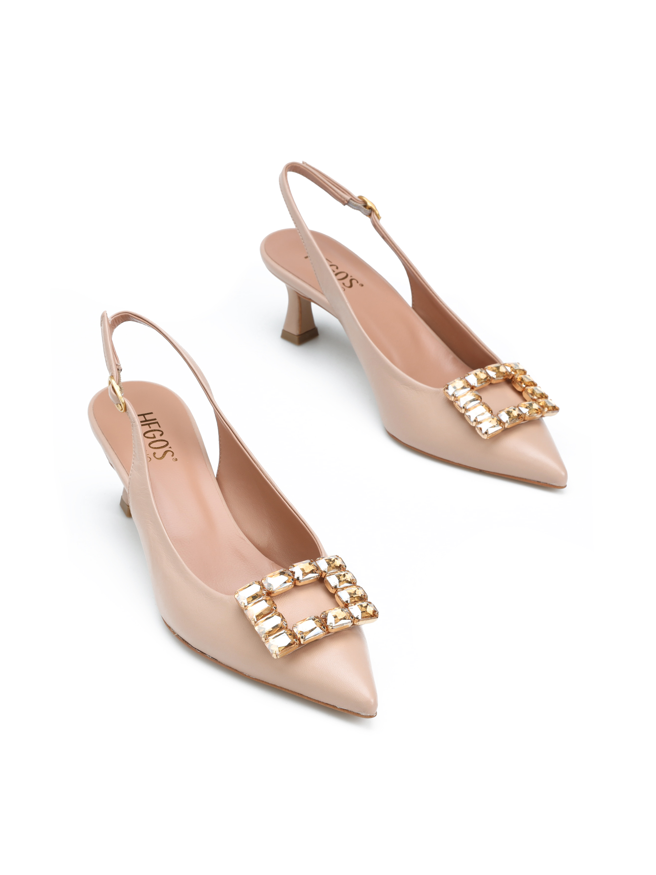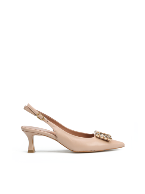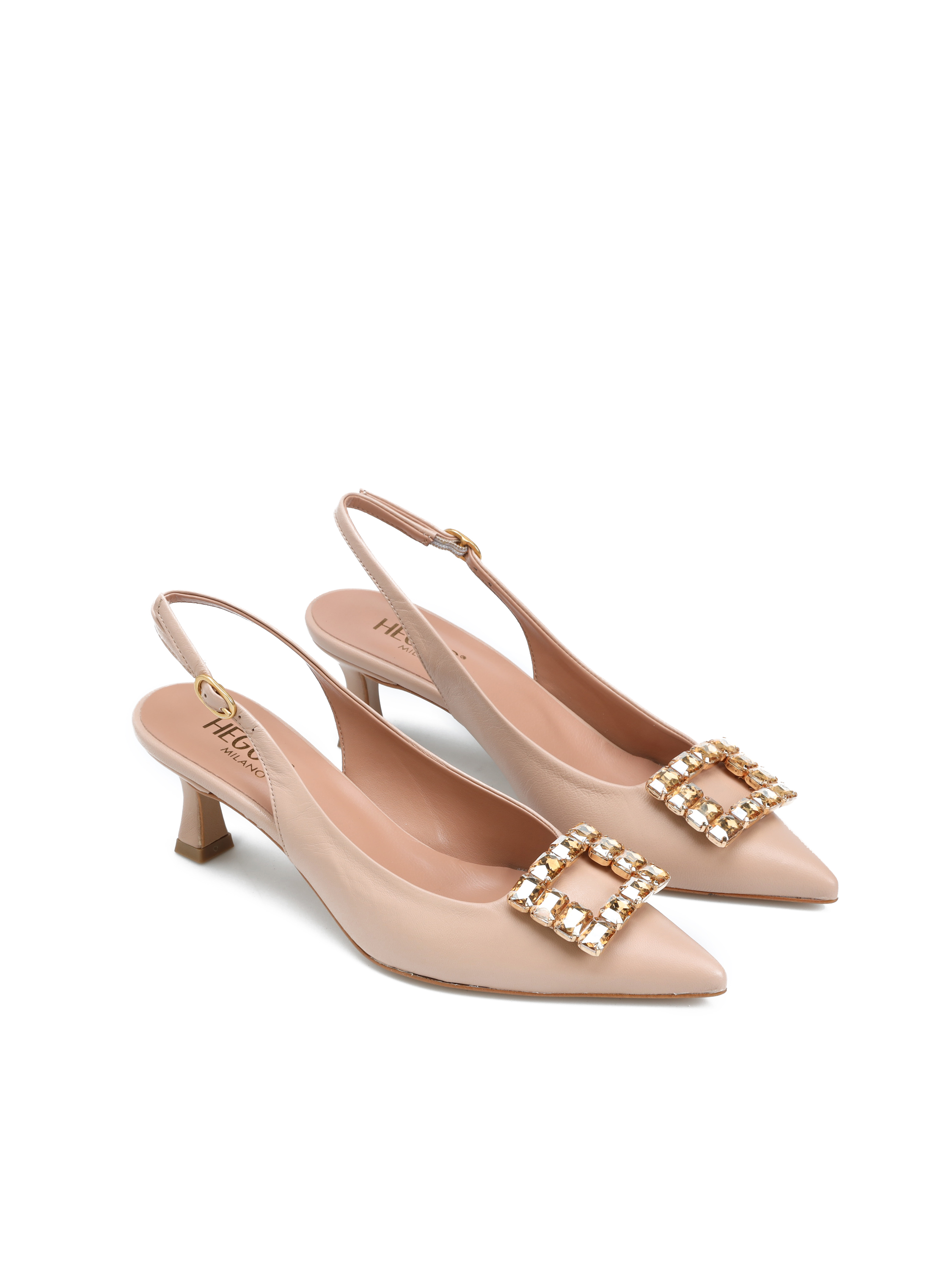 Szpilki z odkrytą piętą HEGO'S Milano to model prosto z włoskich ulic. Cholewka w beżowym kolorze wykonana jest z naturalnej skóry NAPPA. Wzbogacona została o biżuteryjną broszkę z kamieni. Nosek w szpic wpisuje się nie tylko w obecne Trendy. Wygodne, regulowane zapięcie pozwala dopasować obuwie do stopy. Skórzana wkładka w połączeniu z niskim, stabilnym obcasem na szpilce to komfort i wygoda na co dzień.