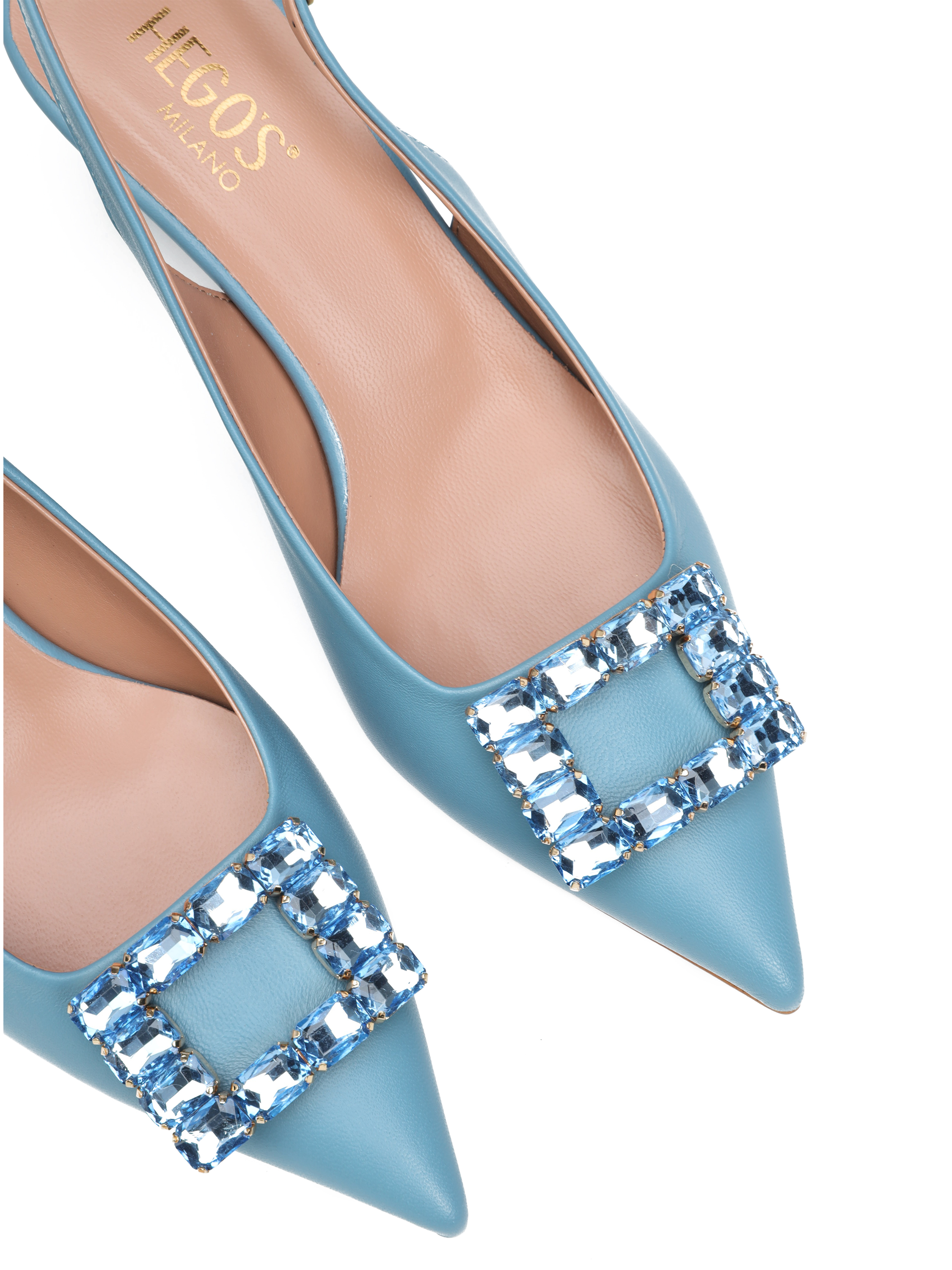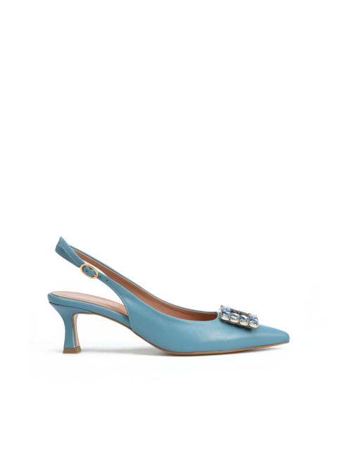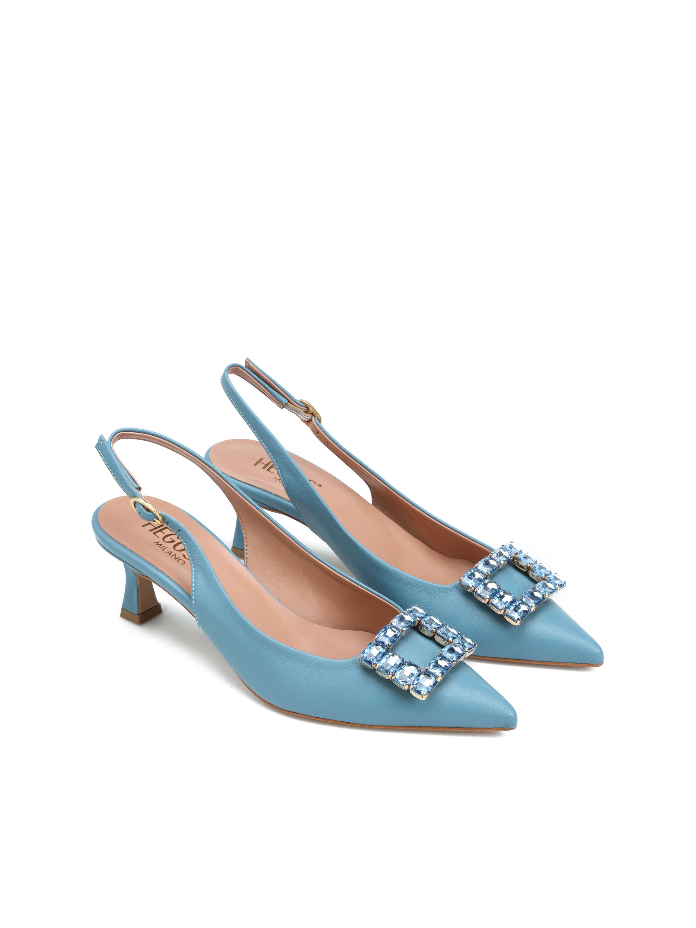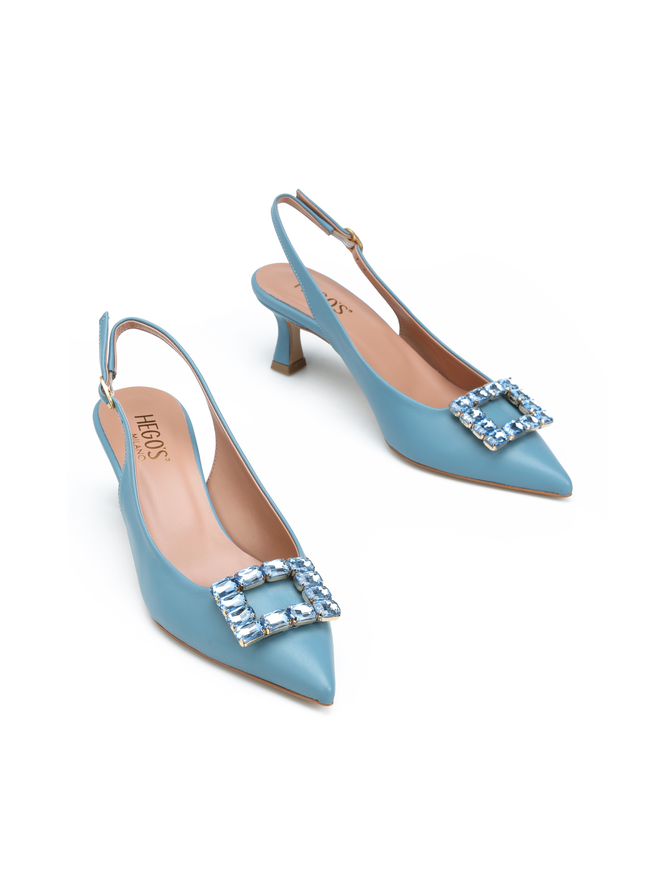Szpilki z odkrytą piętą HEGO'S Milano to model prosto z włoskich ulic. Cholewka w modowym kolorze wykonana jest z naturalnej skóry NAPPA. Wzbogacona została o biżuteryjną broszkę z kamieni. Nosek w szpic wpisuje się nie tylko w obecne Trendy. Wygodne, regulowane zapięcie pozwala dopasować obuwie do stopy. Skórzana wkładka w połączeniu z niskim, stabilnym obcasem na szpilce to komfort i wygoda na co dzień.