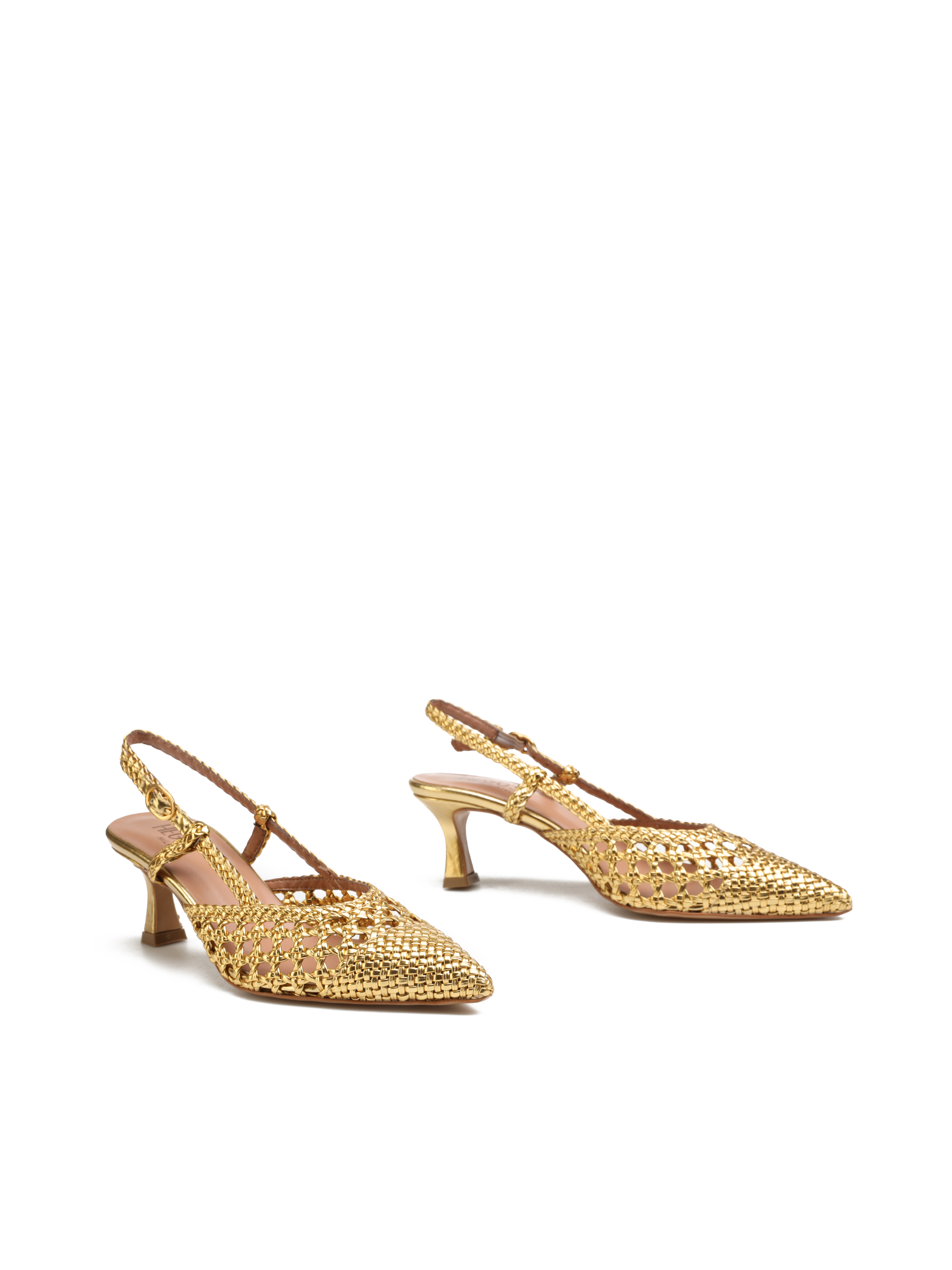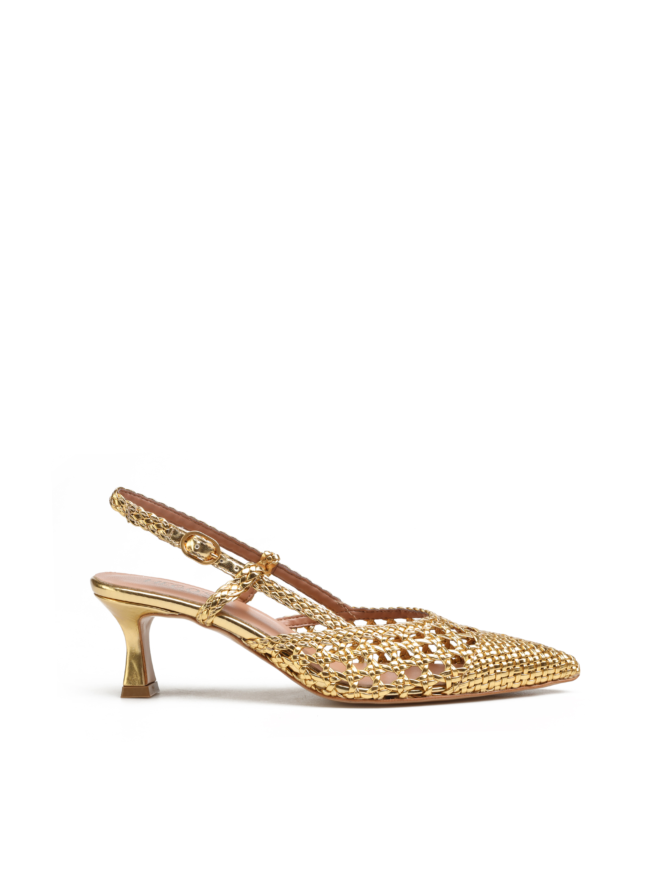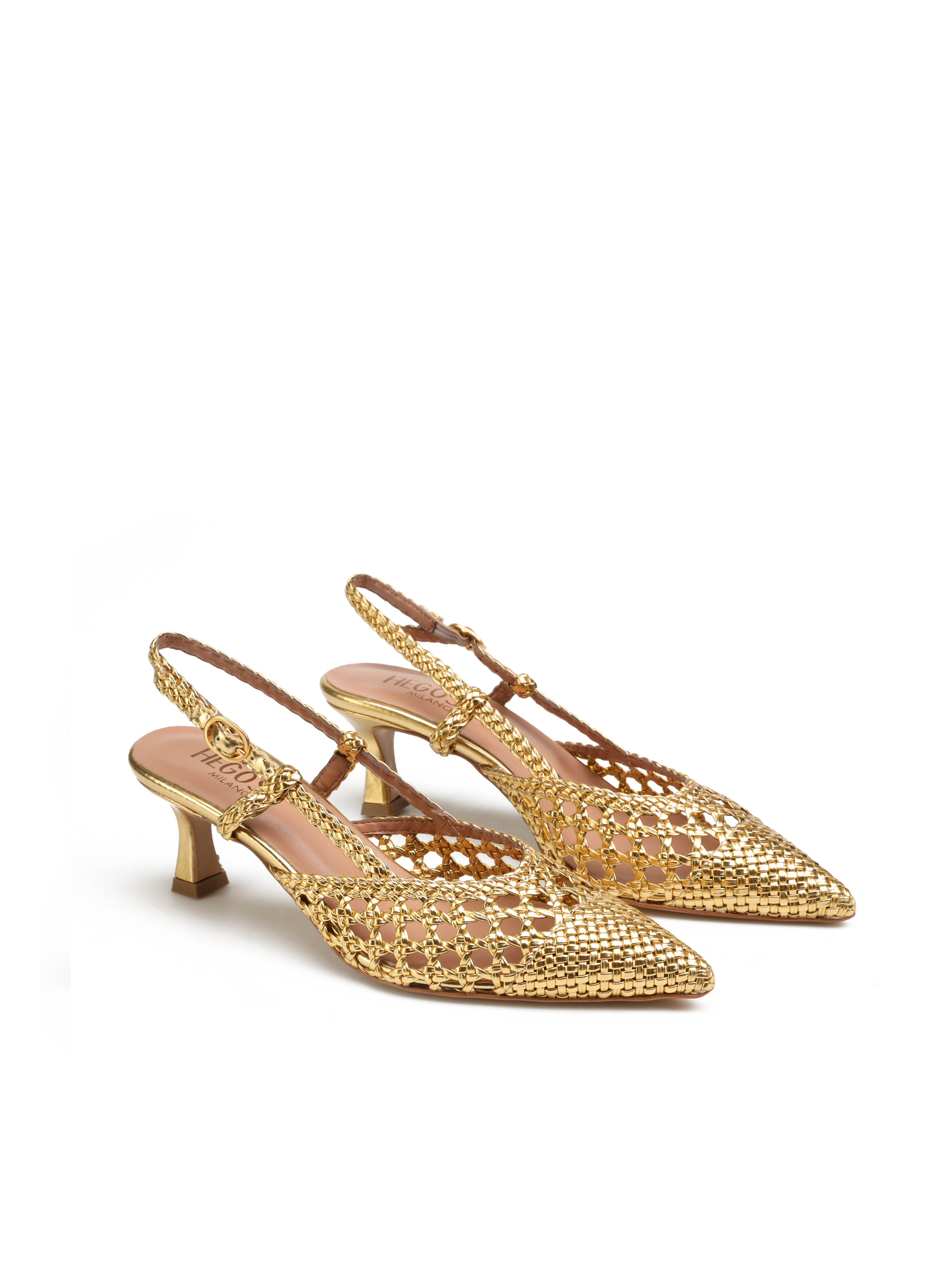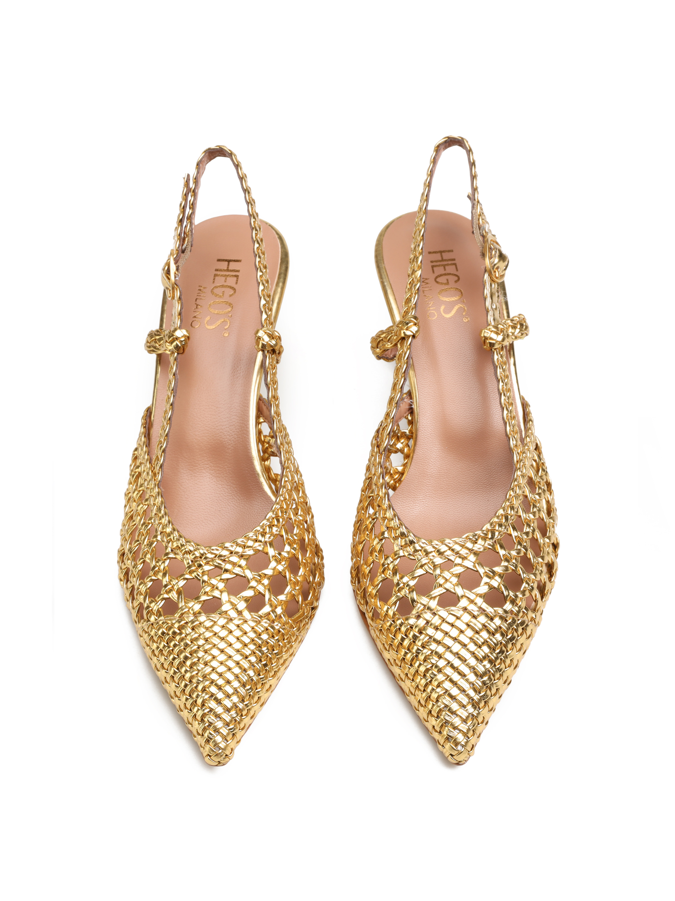 ZŁOTE SZPILKI Z ODKRYTĄ PIĘTĄ HEGO'S MILANO