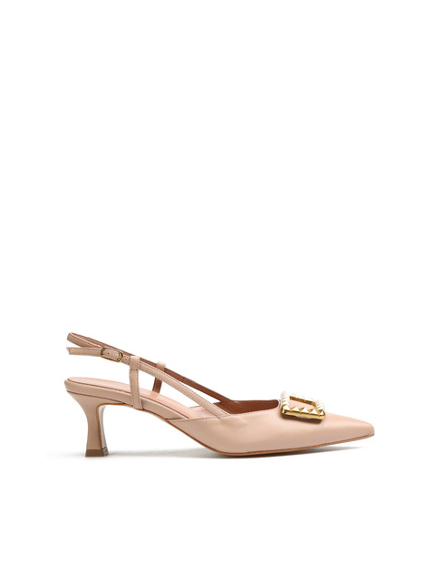 Szpilki z odkrytą piętą HEGO'S Milano to model prosto z włoskich ulic. Cholewka w beżowym kolorze wykonana jest z naturalnej skóry . Wzbogacona została o biżuteryjną broszkę. Nosek w szpic wpisuje się nie tylko w obecne Trendy. Wygodne, regulowane zapięcie pozwala dopasować obuwie do stopy. Skórzana wkładka w połączeniu z niskim, stabilnym obcasem na szpilce to komfort i wygoda na co dzień.