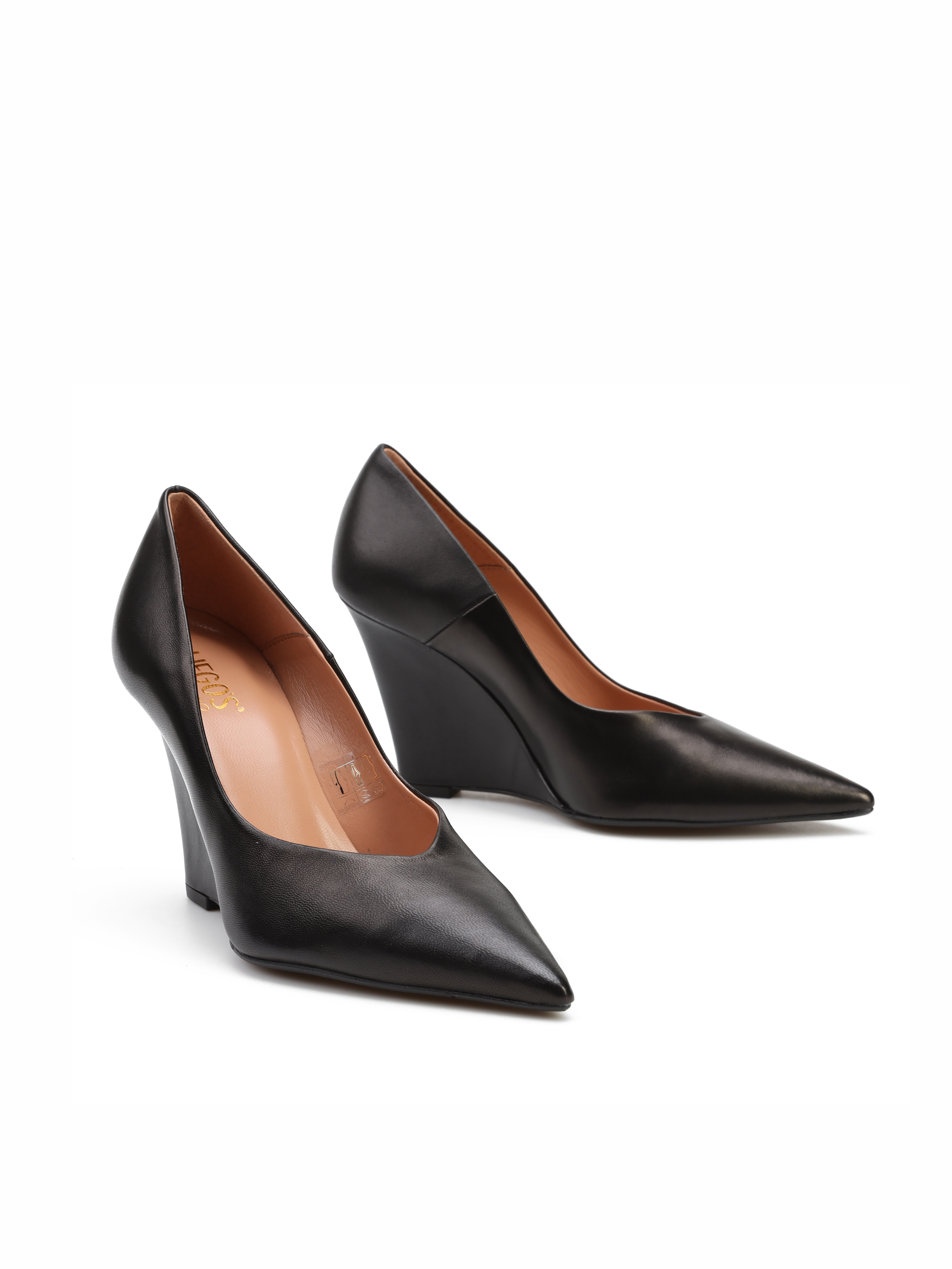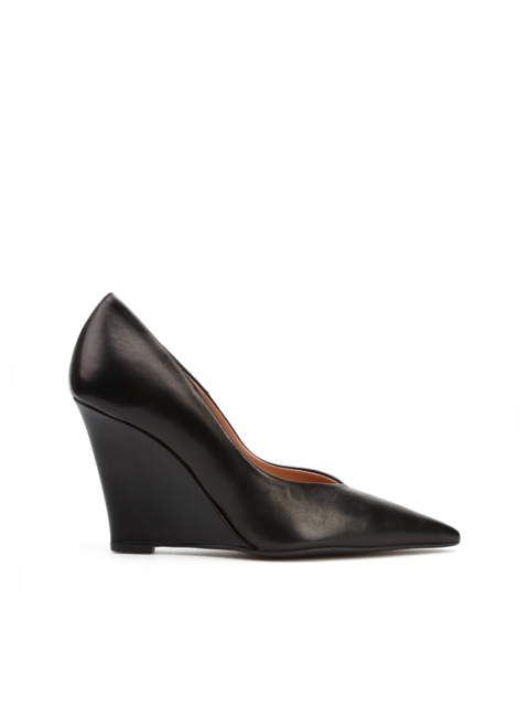 Koturny w szpic to alternatywa dla klasycznych szpilek. Wycięta cholewka w ponadczasowym, czarnym kolorze wykonana jest z naturalnej skóry. Model na obcasie na koturnie. Elegnckie, będą uzupełnieniem modnej garderoby kobiety.