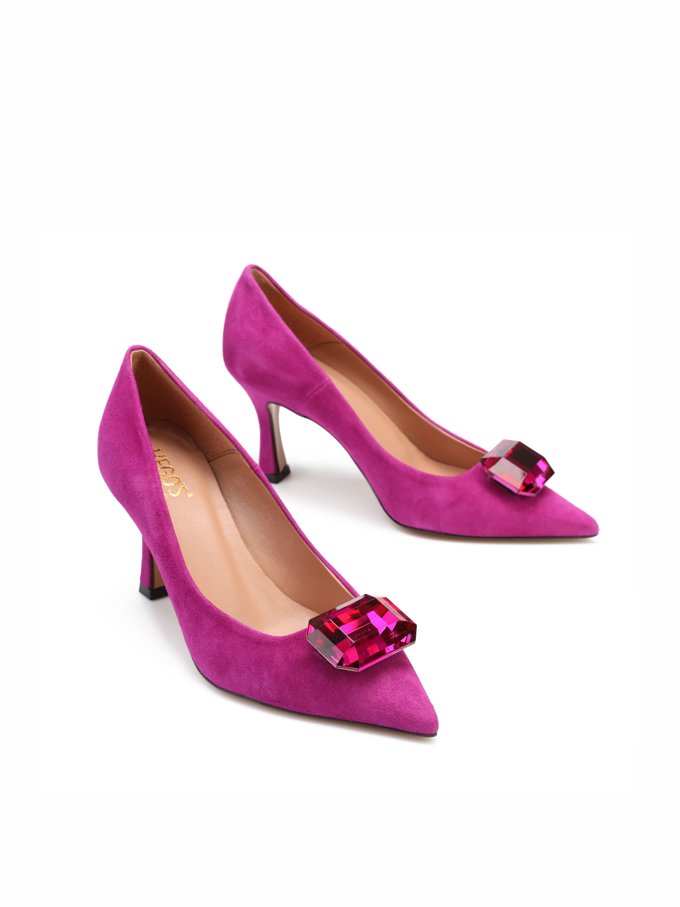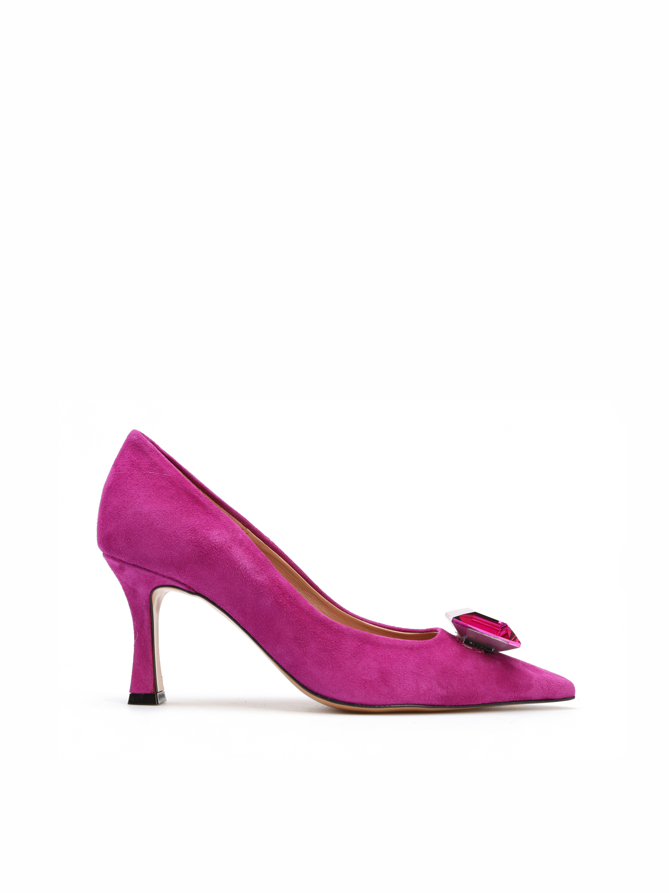 Szpilki w szpic to klasyka w eleganckim wydaniu. Cholewka w modowym kolorze wykonana jest z włoskiej, zamszowej skóry. Wzbogacona została o biżuteryjną broszkę z kamieniem. Model osadzony na stabilnym obcasie na szpilce. Stylowe, będą ozdobą Twoich stylizacji.