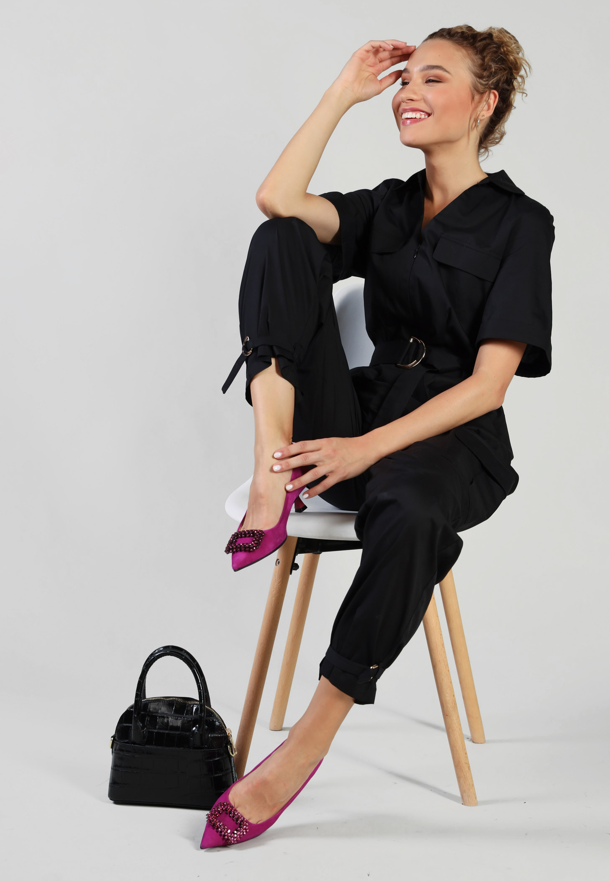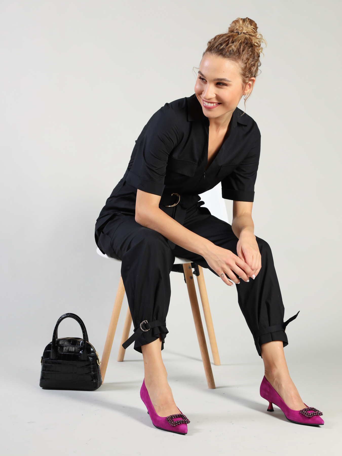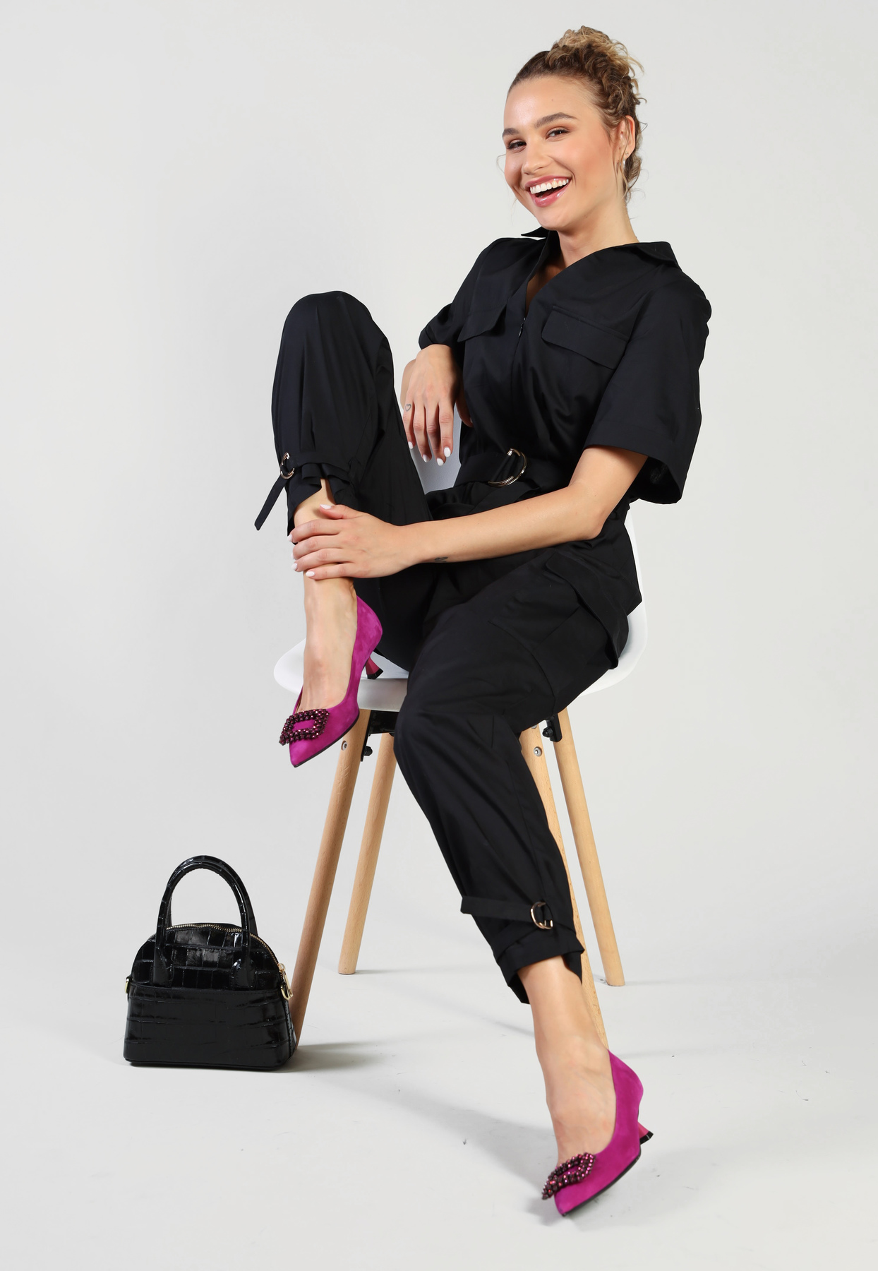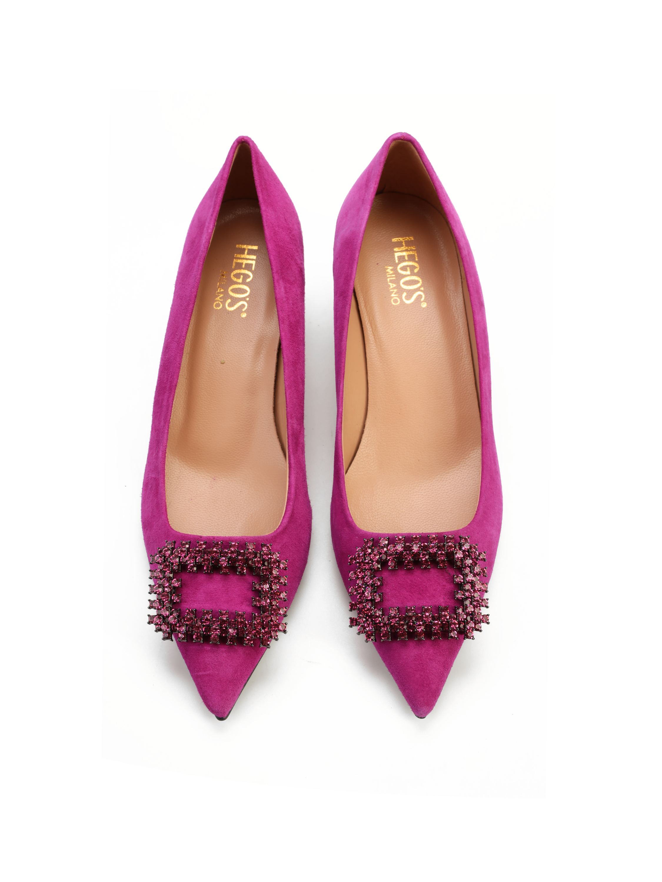 Szpilki w szpic to model prosto z włoskich ulic. Cholewka w modnym, fuksjowym kolorze wykonana jest zamszowej skóry. Wzbogacona została o biżuteryjną broszkę z kamieni. Stylowe i eleganckie będą ozdobą Twoich stylizacji.