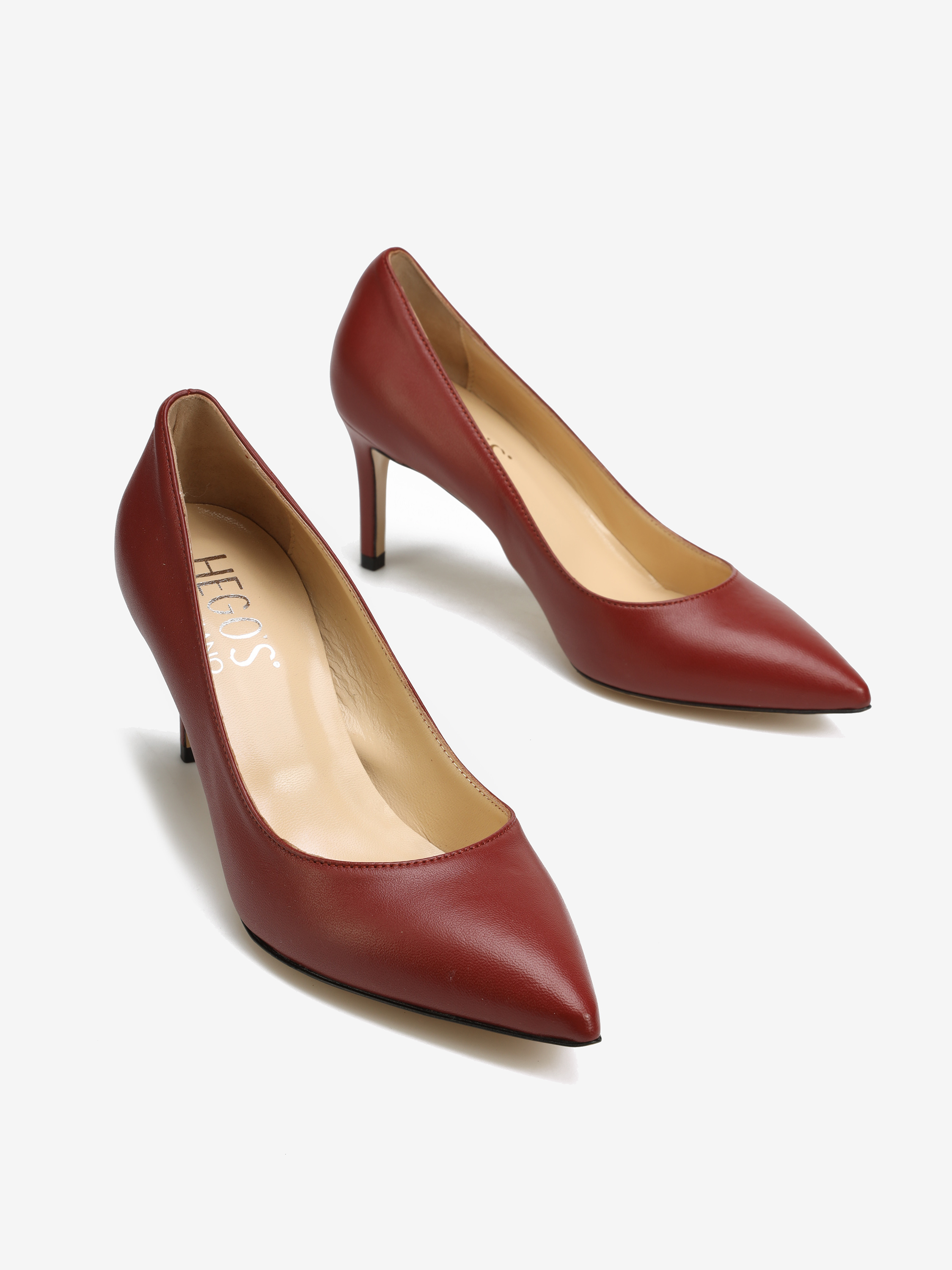 Szpilki w szpic HEGO'S Milano wykonane są z włoskiej, naturalnej skóry. Cholewka w kolorze koniaku. Wygodny obcas na szpilce w połączeniu ze skórzaną wkładką zapewnią komfort podczas użytkowania obuwia.