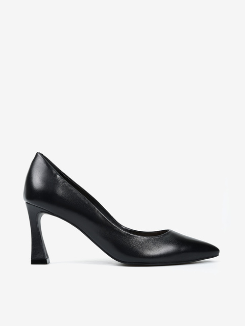 Klasyczne, czarne szpilki z noskiem w szpic wykonane z miękkiej i delikatnej skóry.