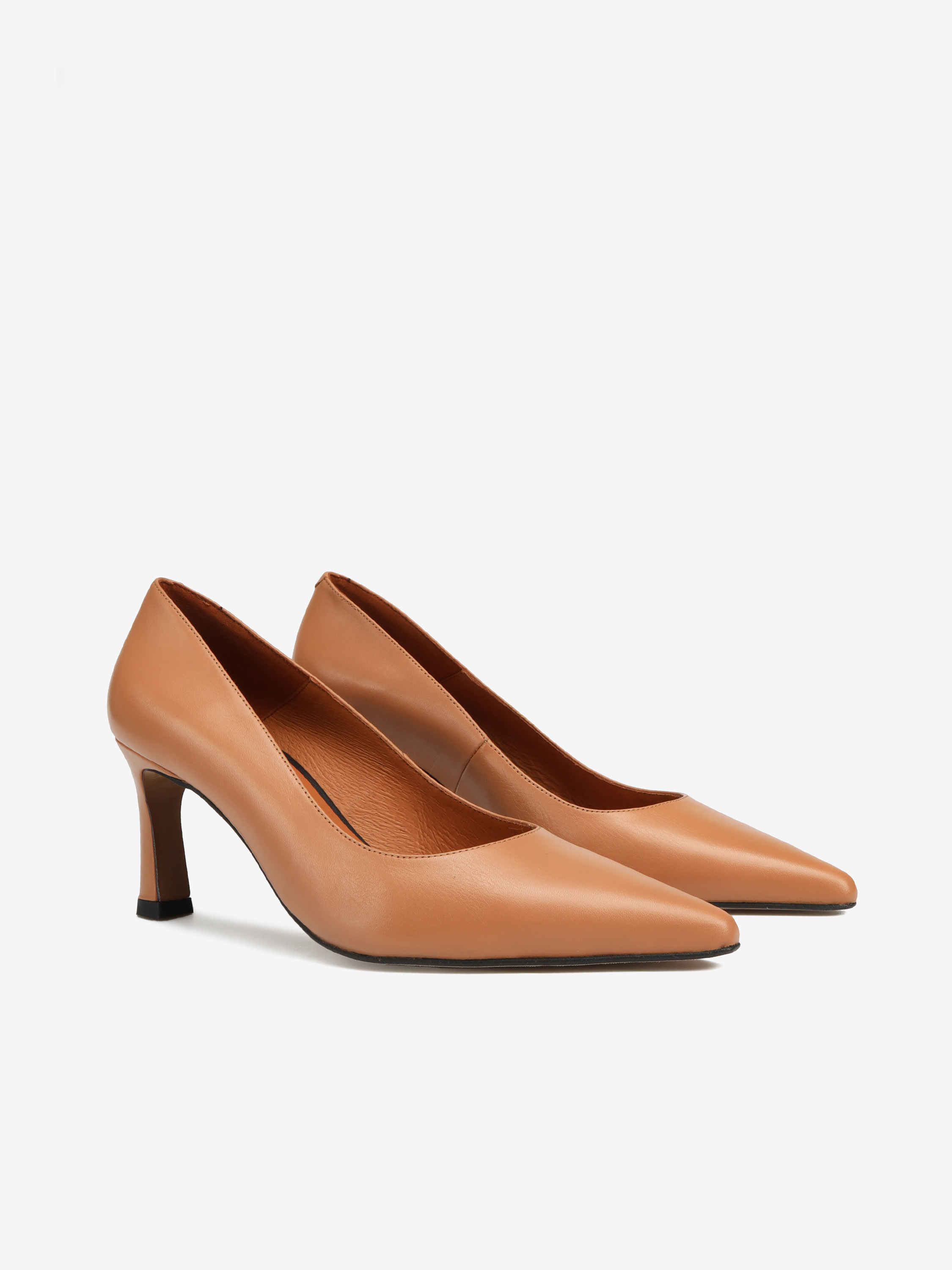 Szpilki w beżowym kolorze wykonane są z naturalnej skóry.  Obcas na szpilce a nosek w szpic.