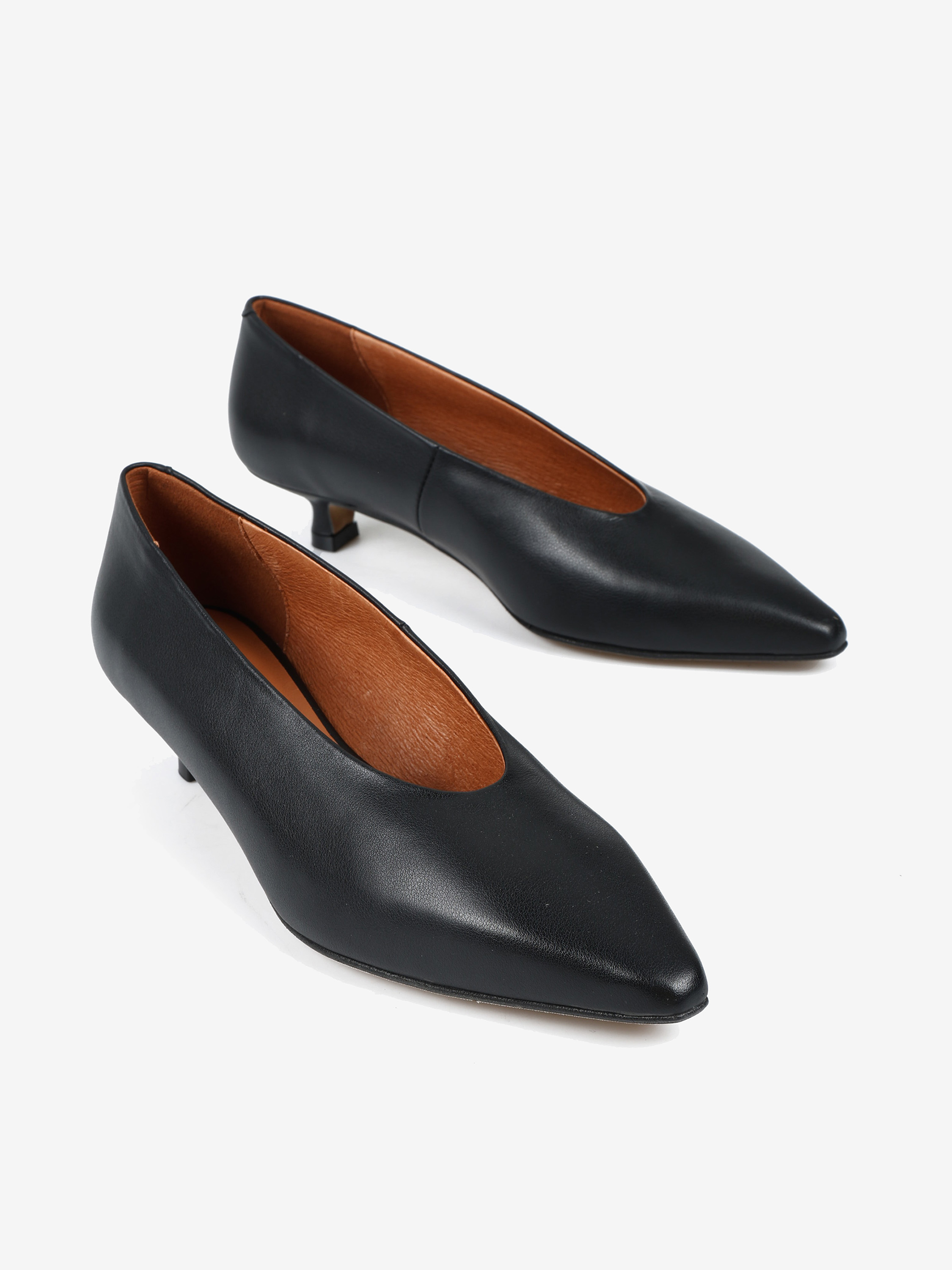 Proste, klasyczne szpilki wykonane z miękkiej i delikatnej skóry. Wycięcie z zabudowanymi brzegami i nosek w szpic.