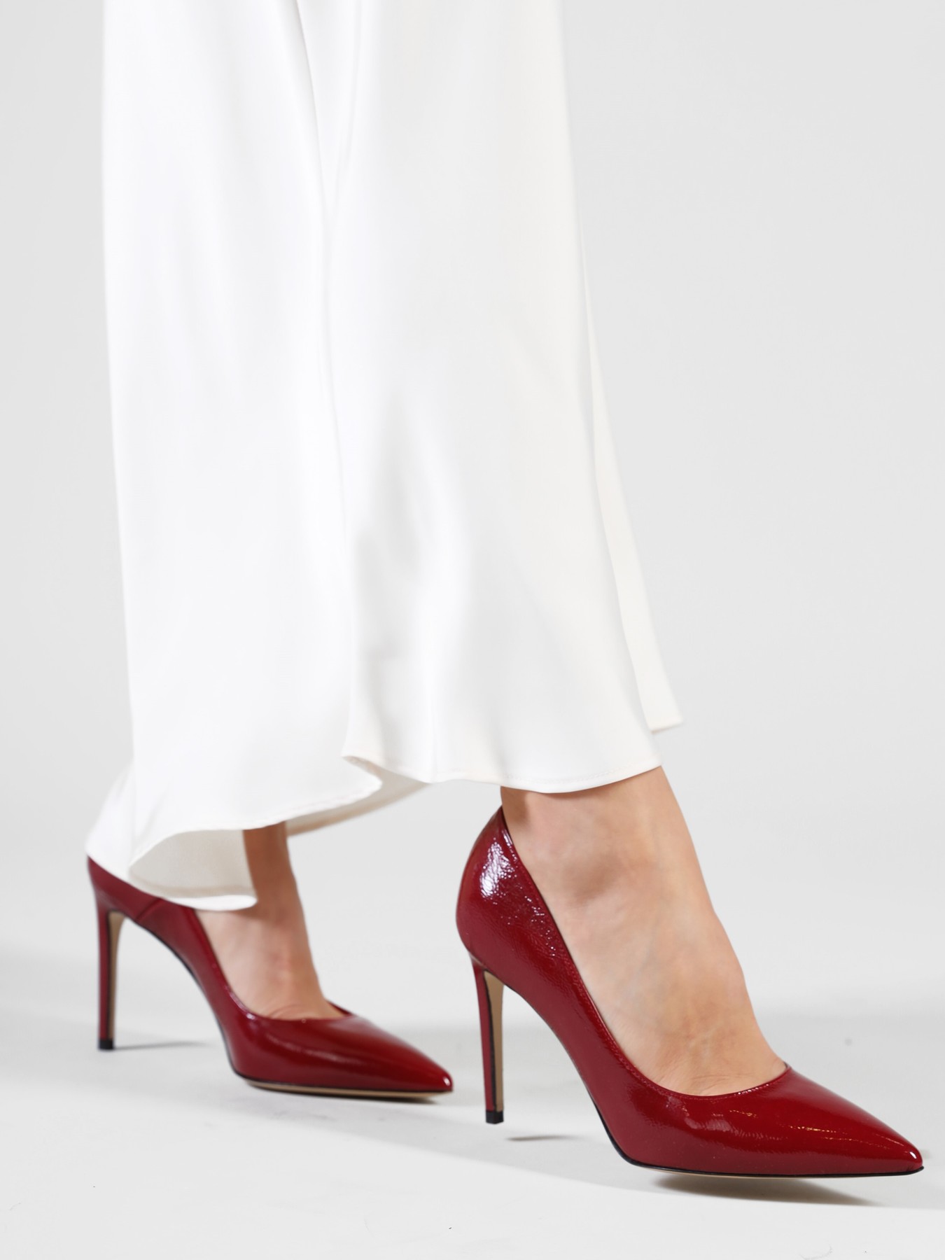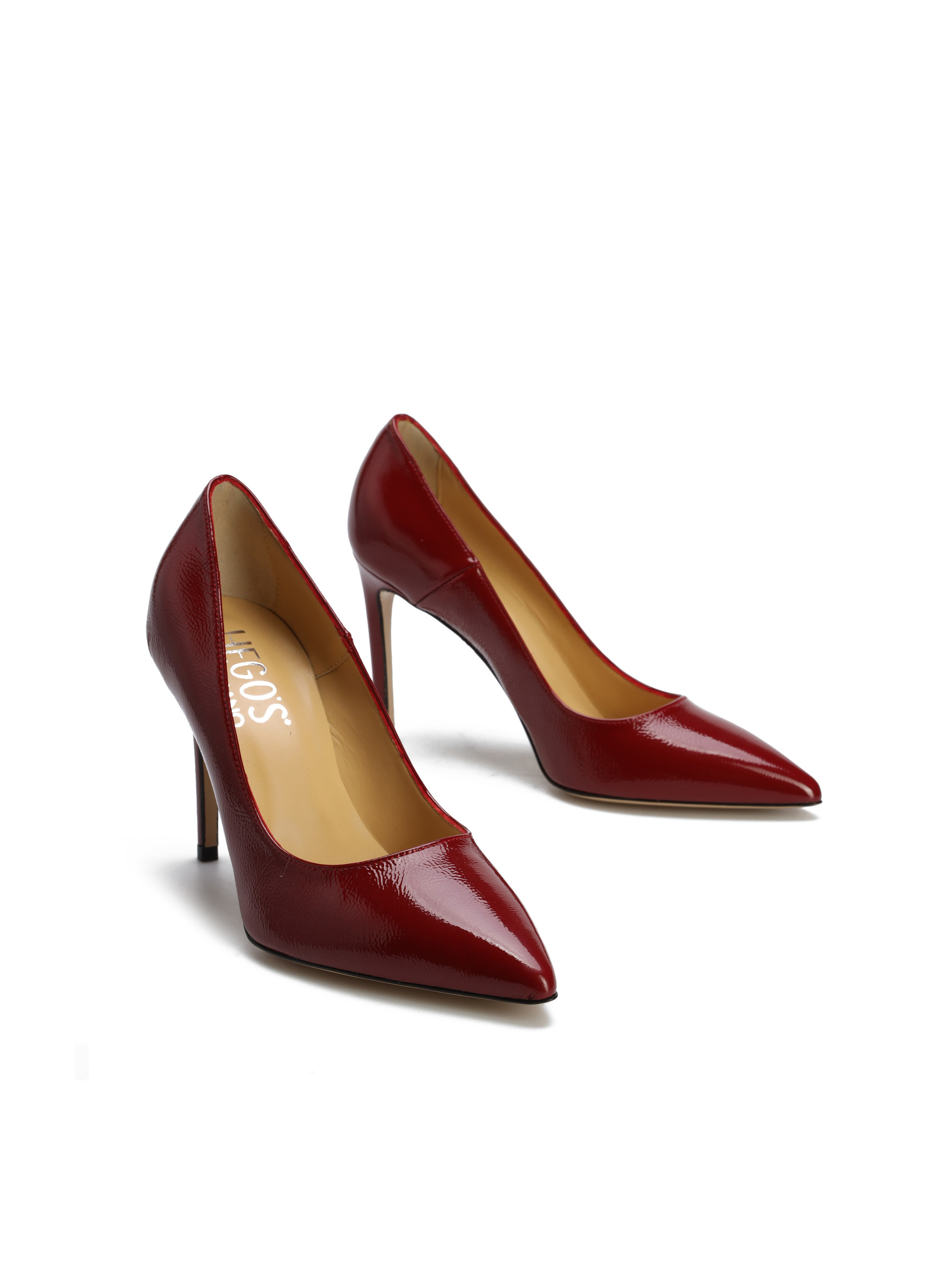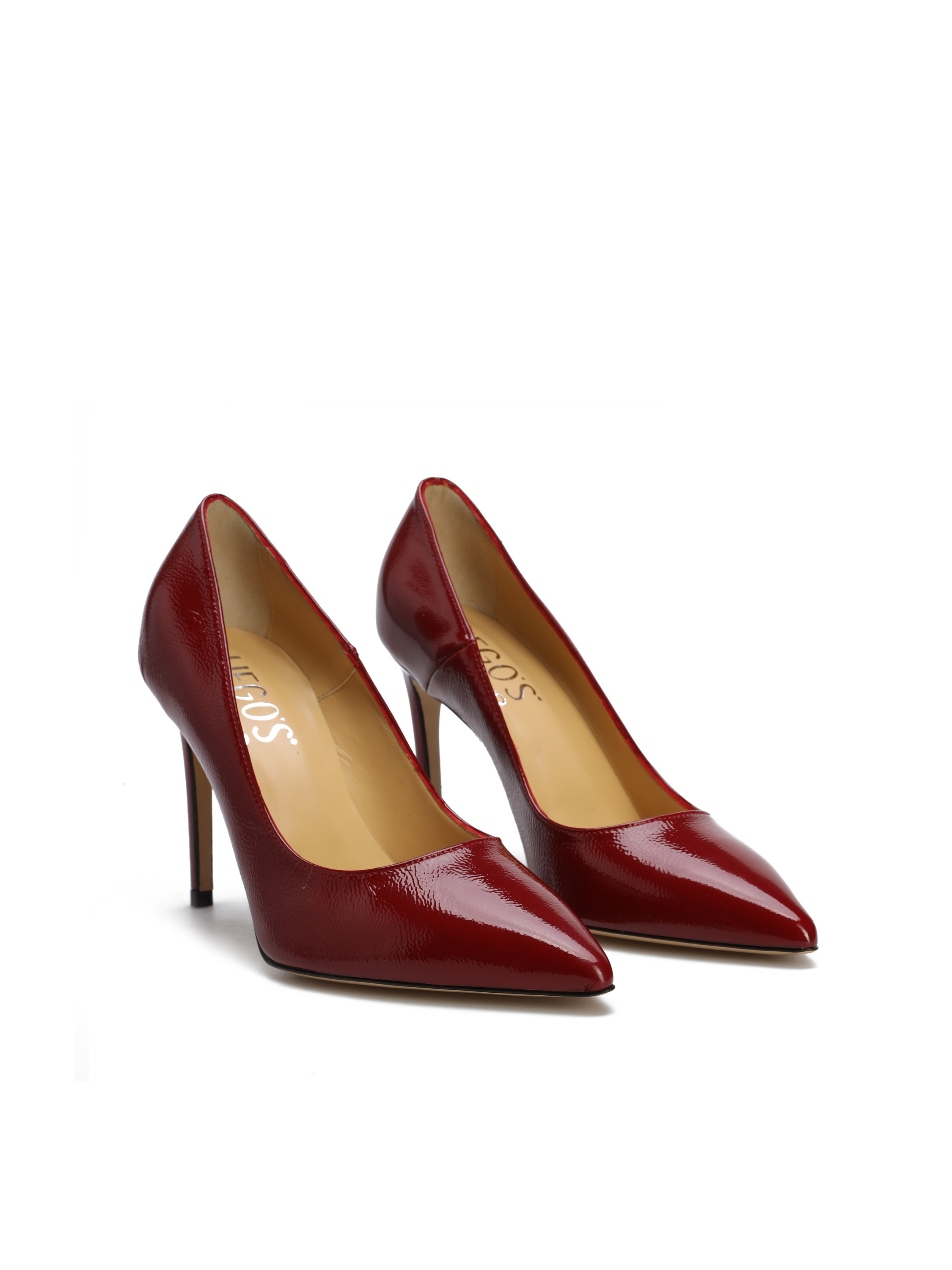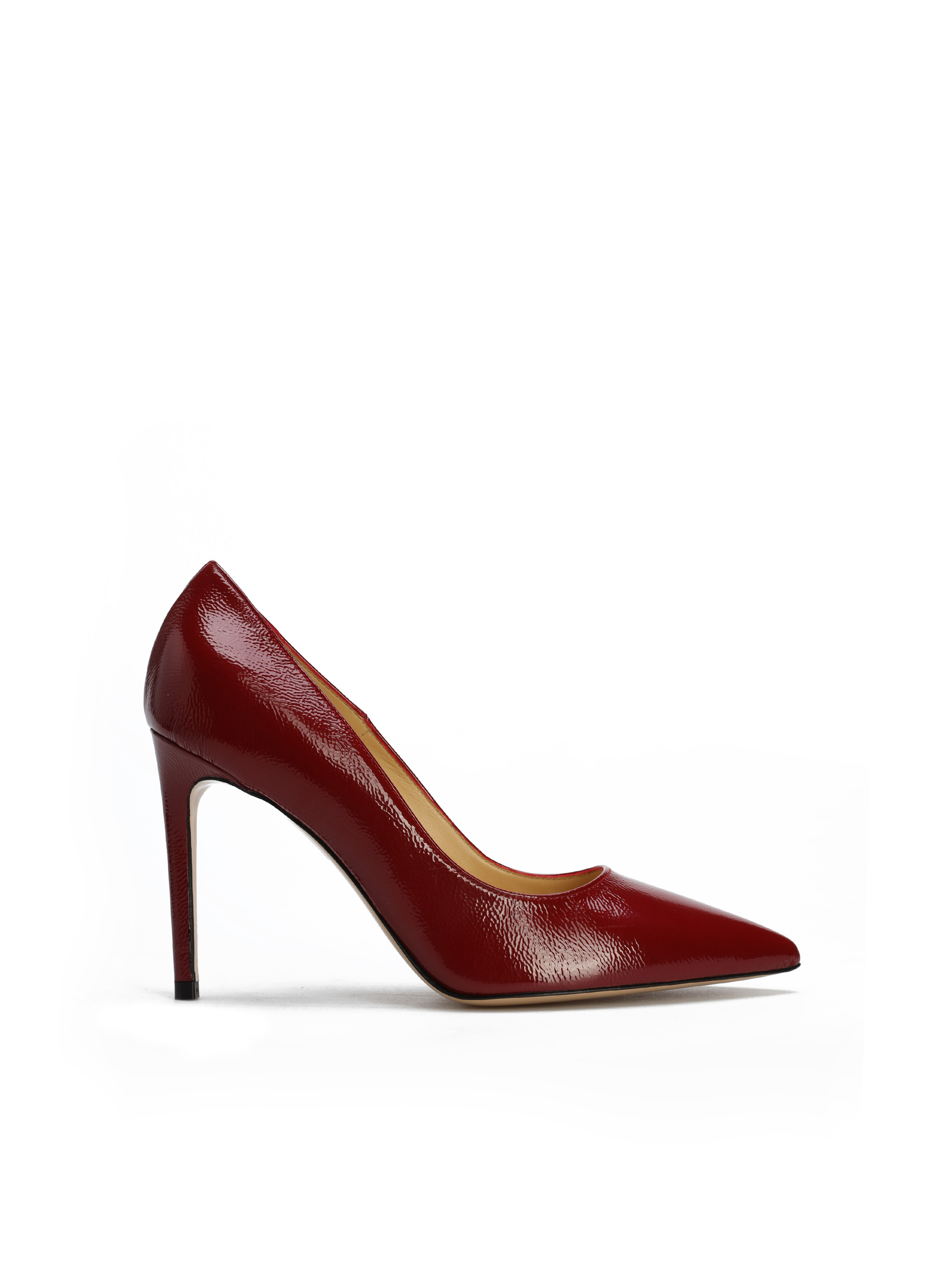 Szpilki w szpic wykonane są z włoskiej, lakierowanej skóry. Cholewka w modnym, bordowym kolorze. Wygodny obcas na szpilce w połączeniu ze skórzaną wkładką zapewnią komfort podczas użytkowania obuwia.