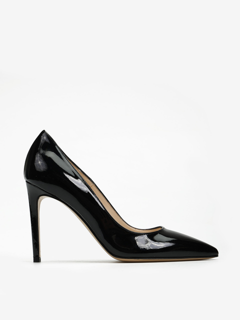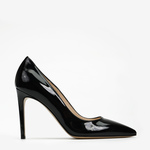 Szpilki w szpic wykonane są z włoskiej, lakierowanej skóry. Cholewka w klasycznym, czarnym kolorze. Wygodny obcas na szpilce w połączeniu ze skórzaną wkładką zapewnią komfort podczas użytkowania obuwia.