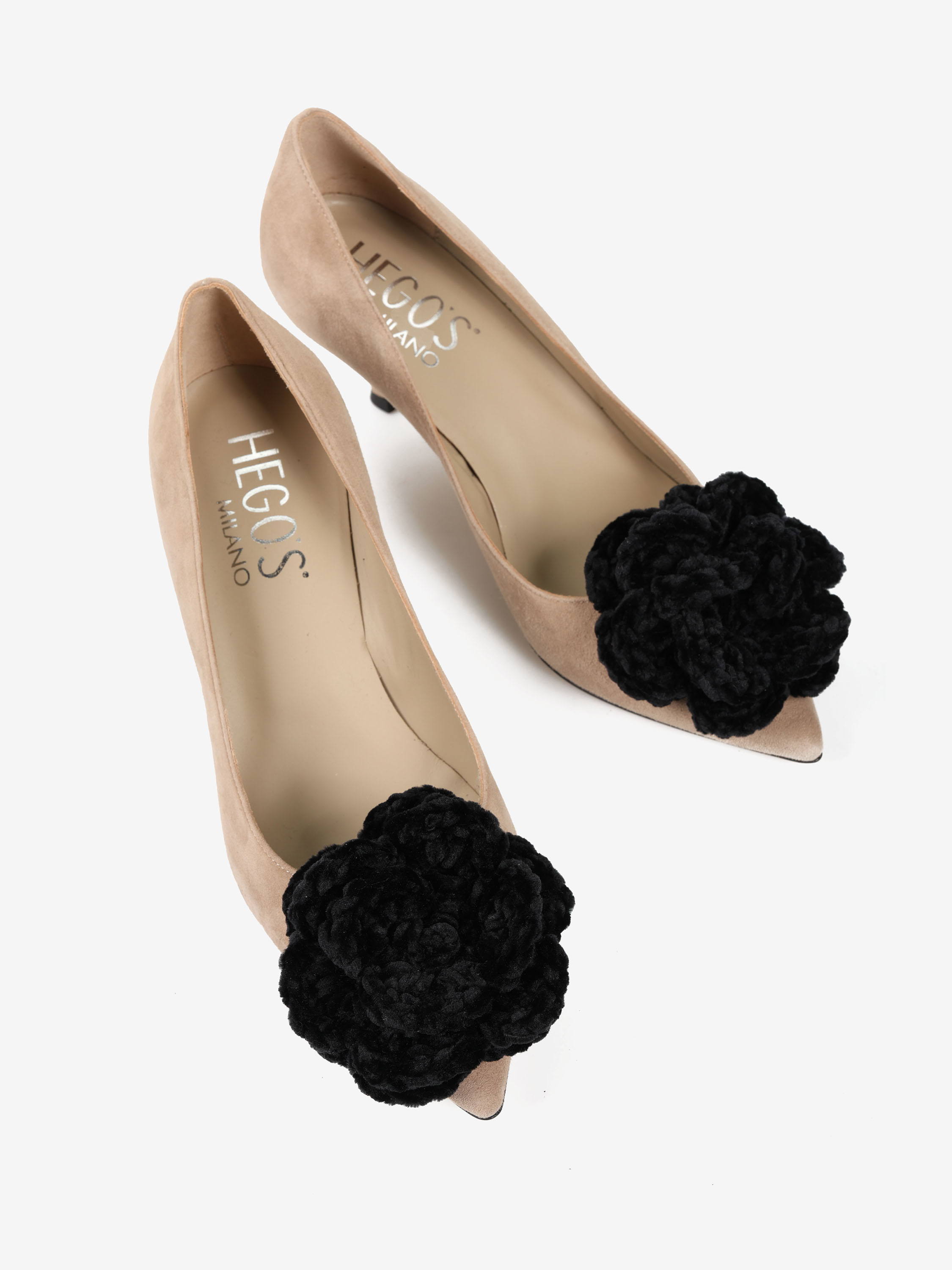 BEŻOWE SZPILKI Z KWIATEM HEGO'S MILANO