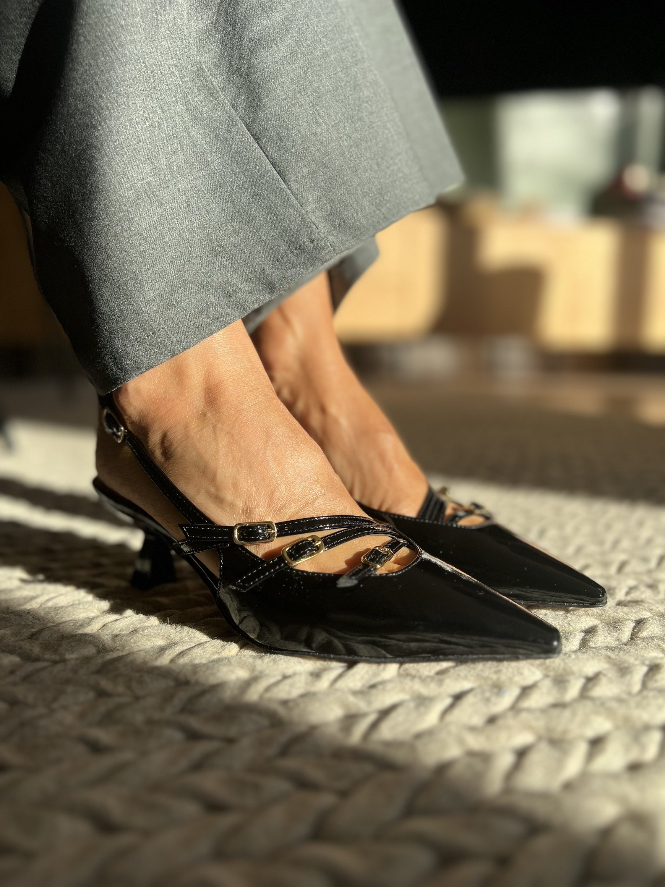 Obcas w modelu ma charakterystyczny kształt – kitten heels. To jeden z najgorętszych trendów sezonu.