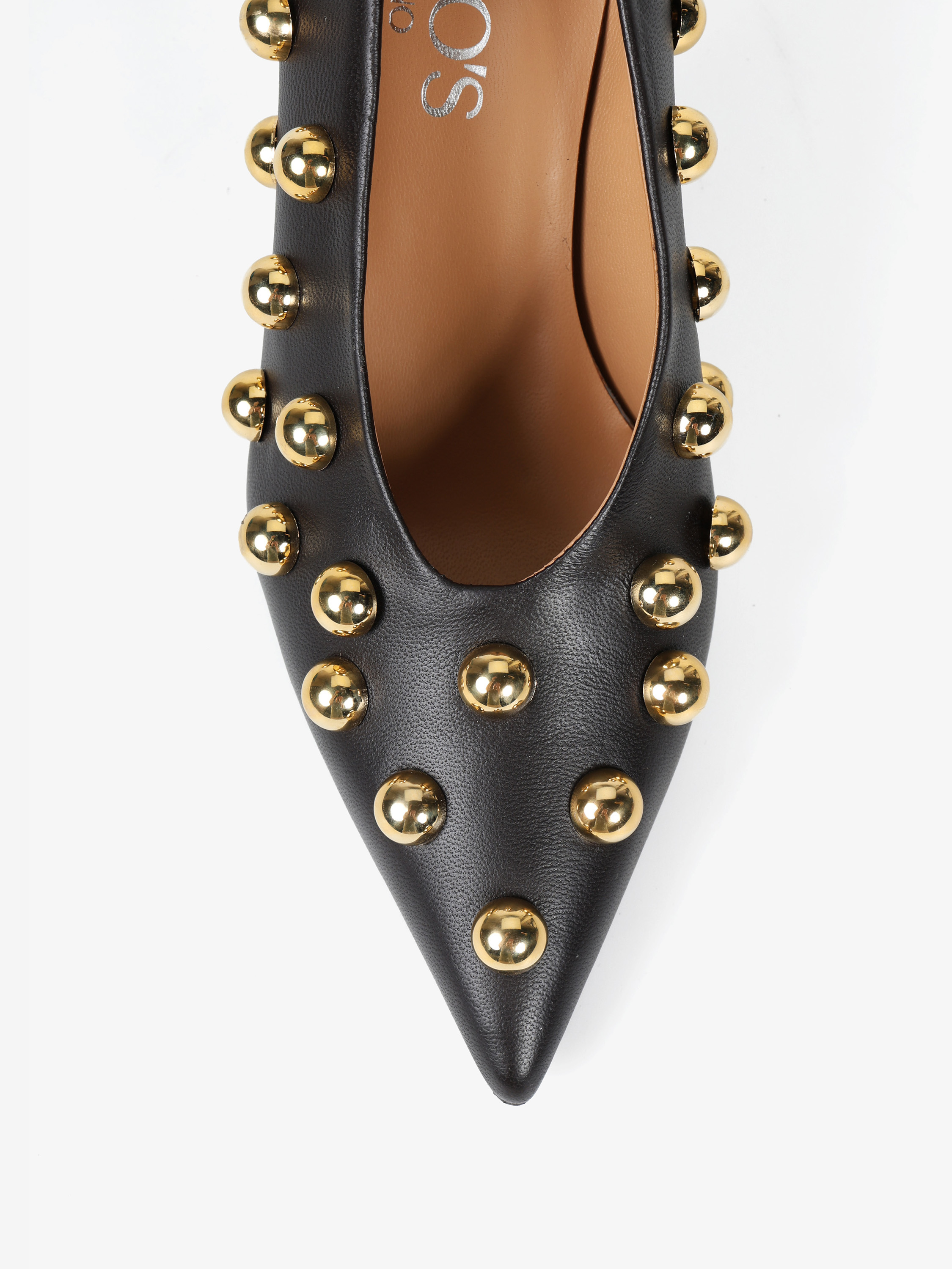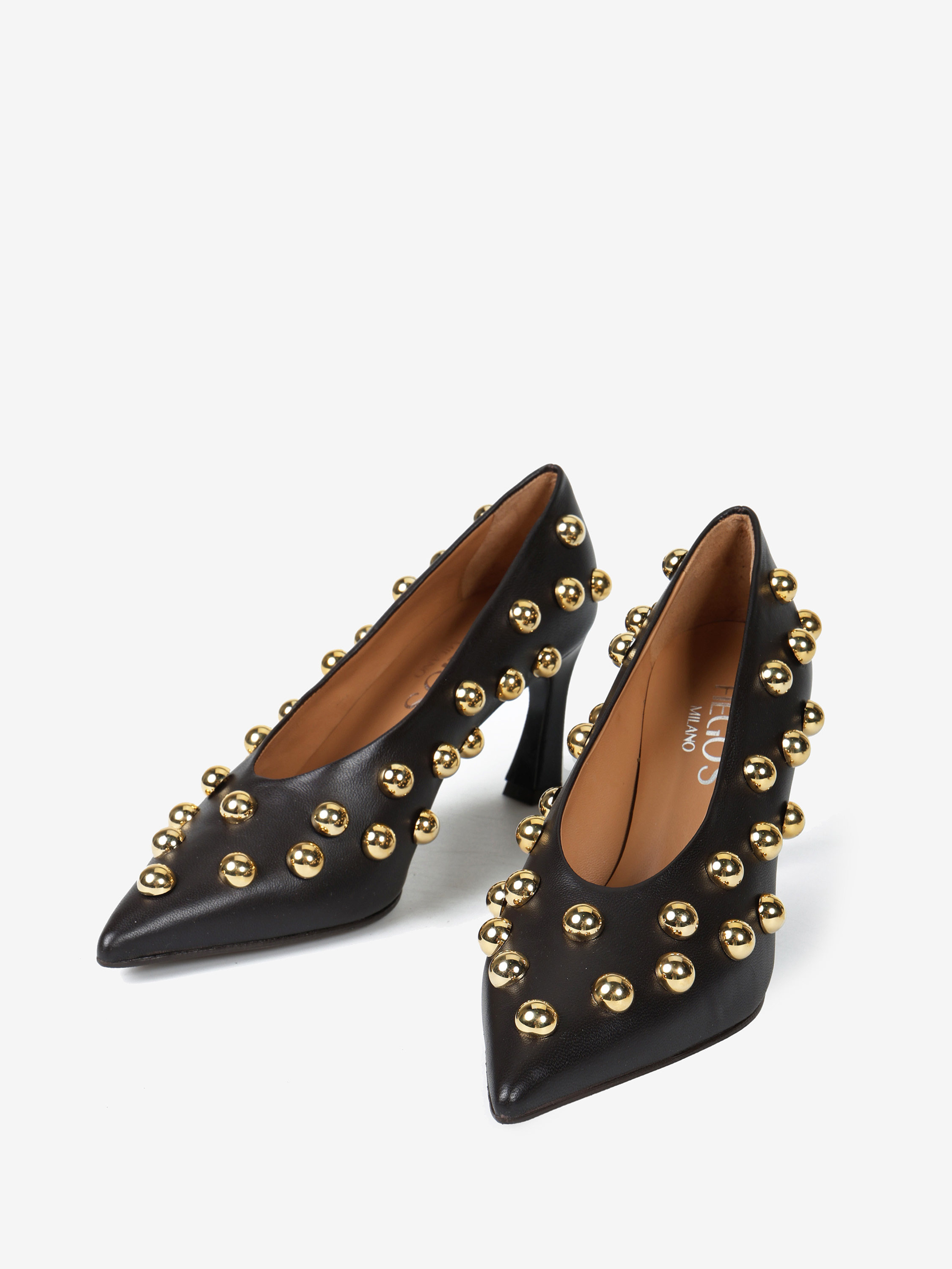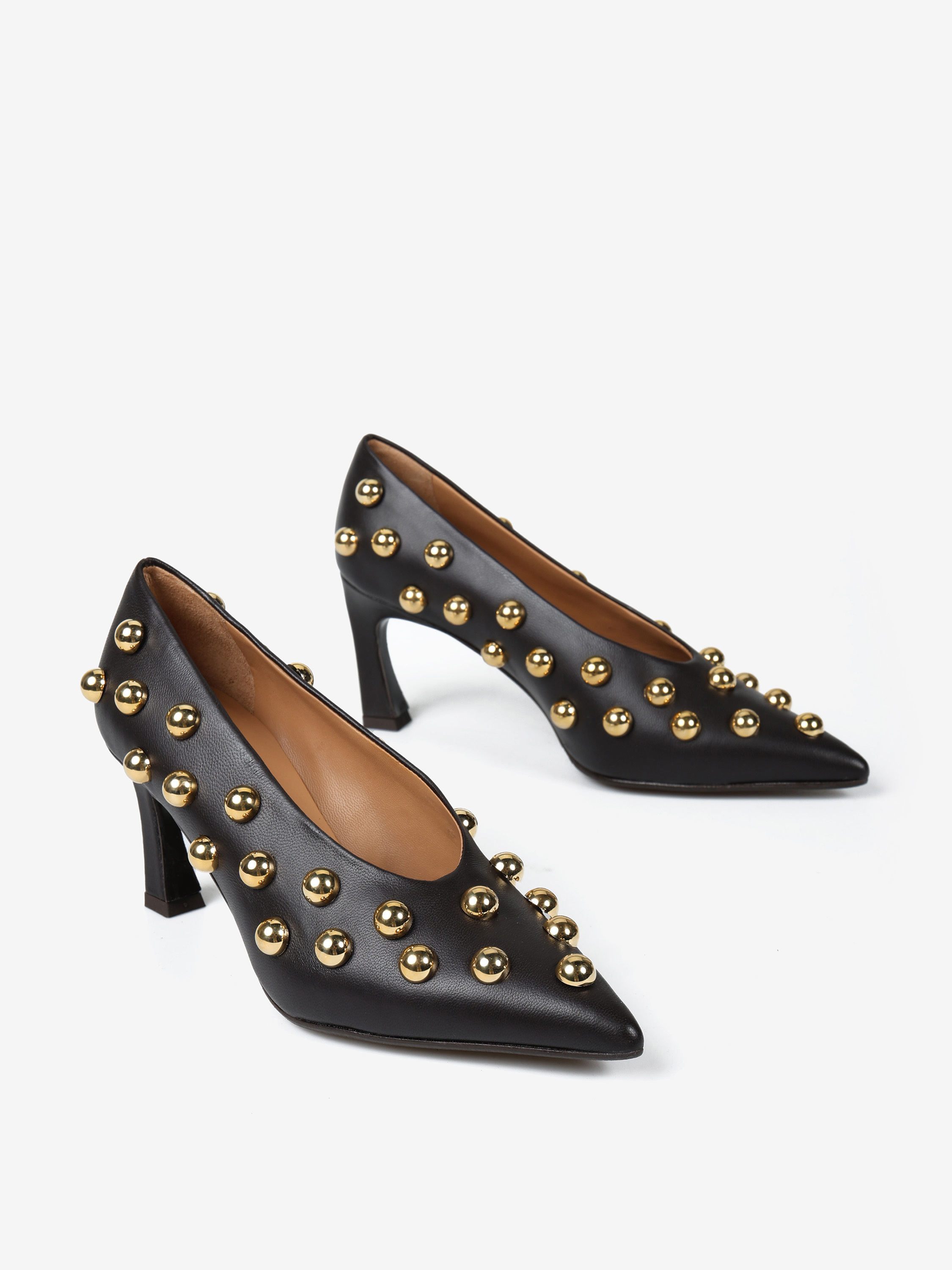Szpilki z noskiem w szpic i ozdobnymi ćwiekami. Wykonane z miękkiej, delikatnej skóry.