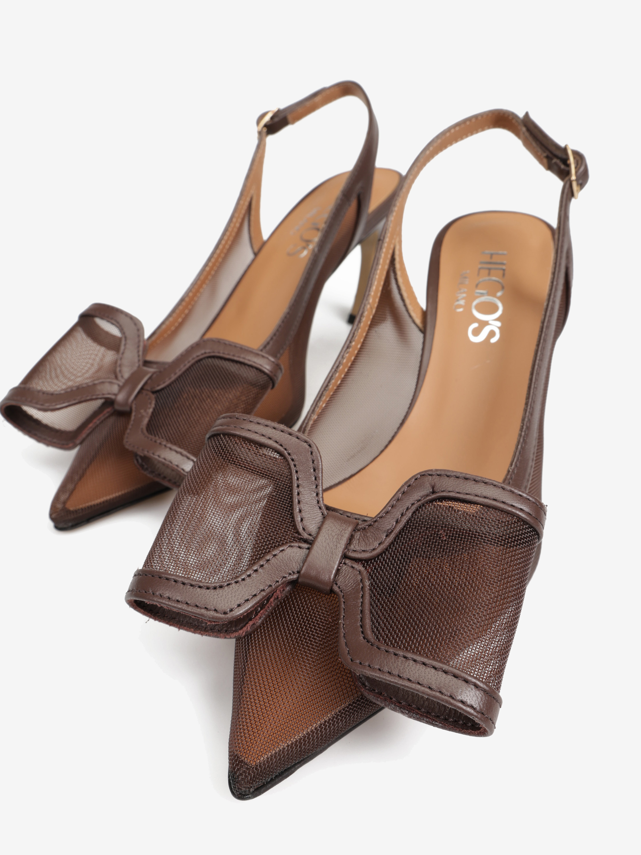 BRĄZOWE SZPILKI Z KOKARDĄ HEGO'S MILANO