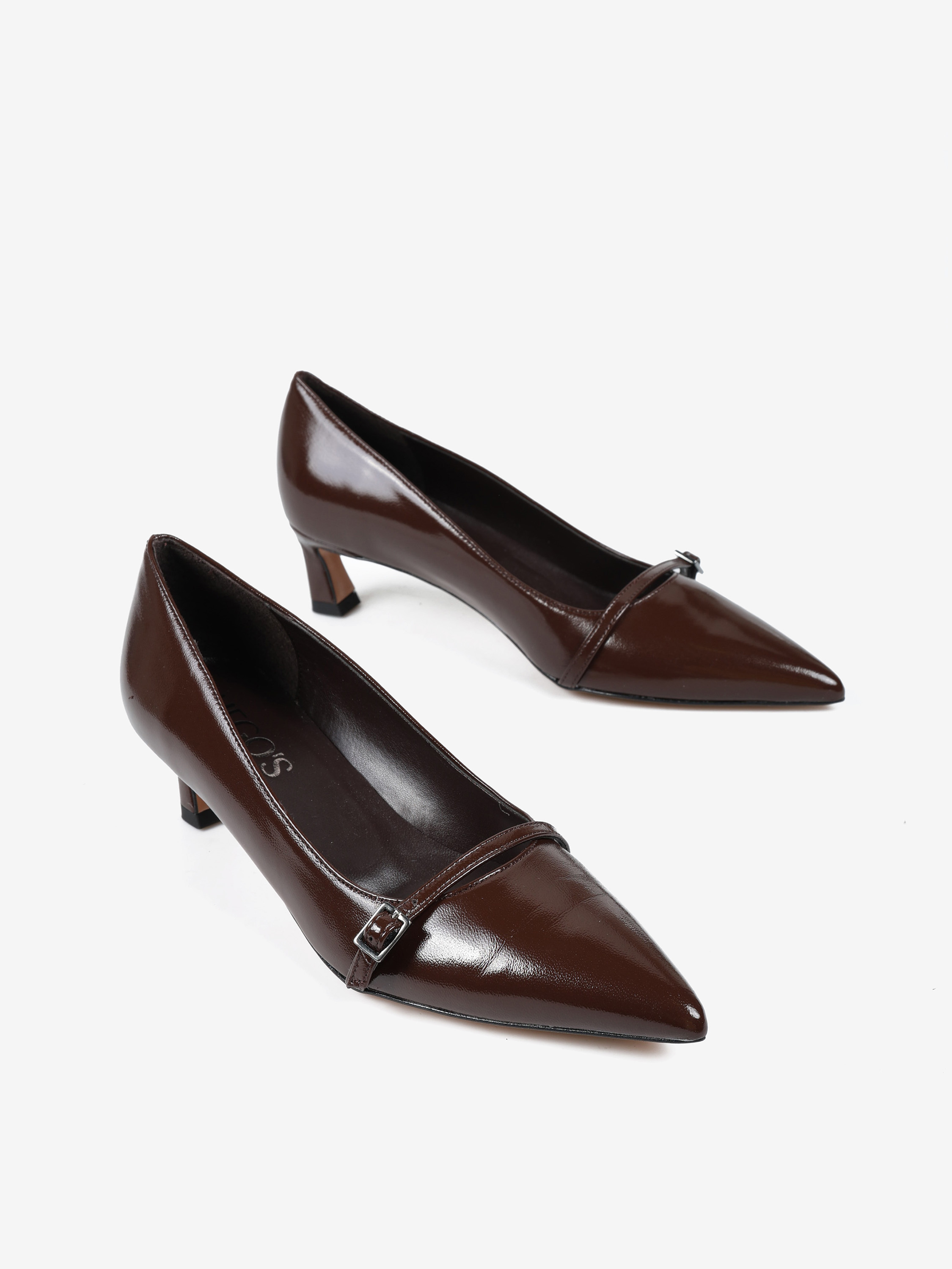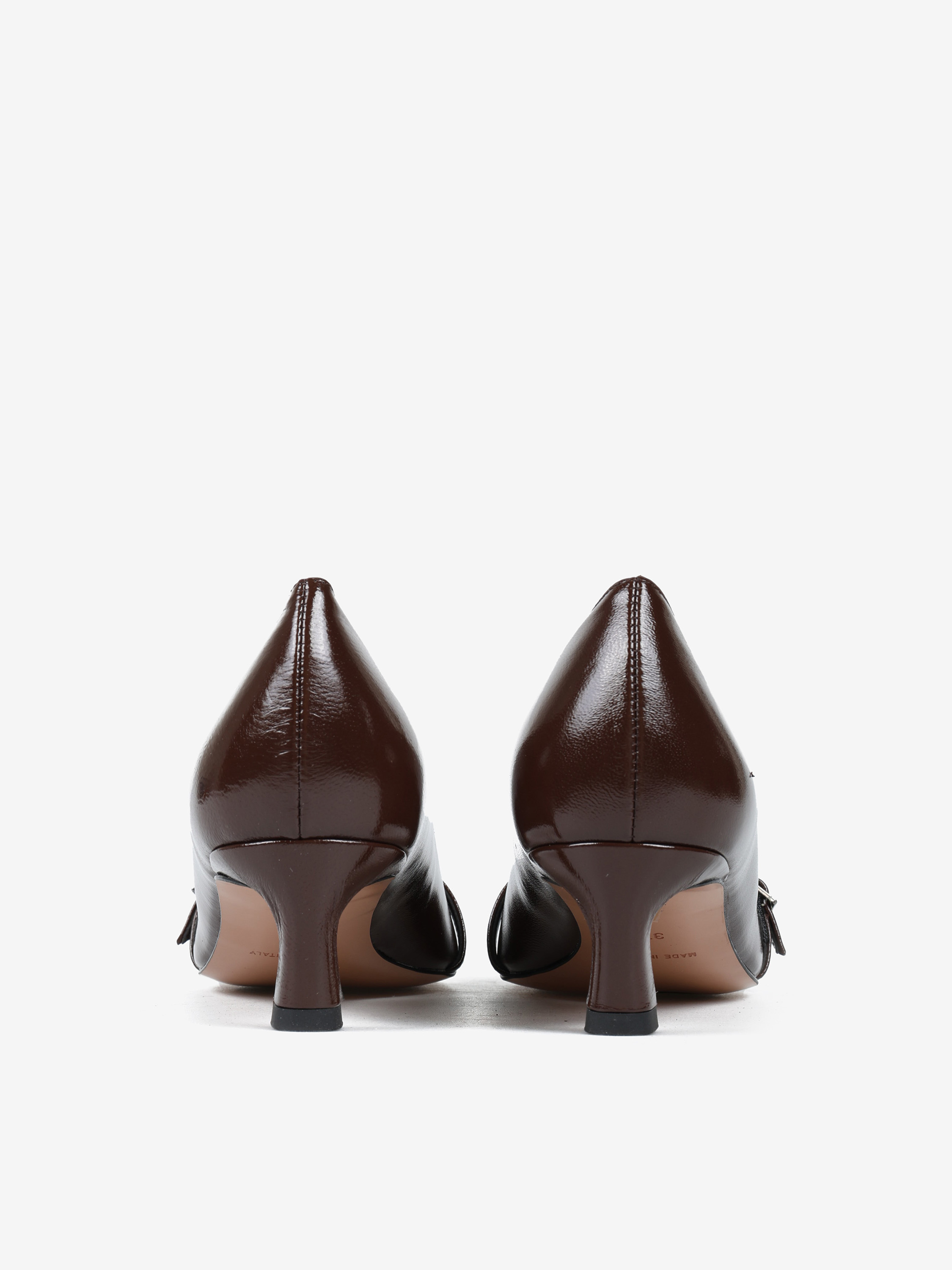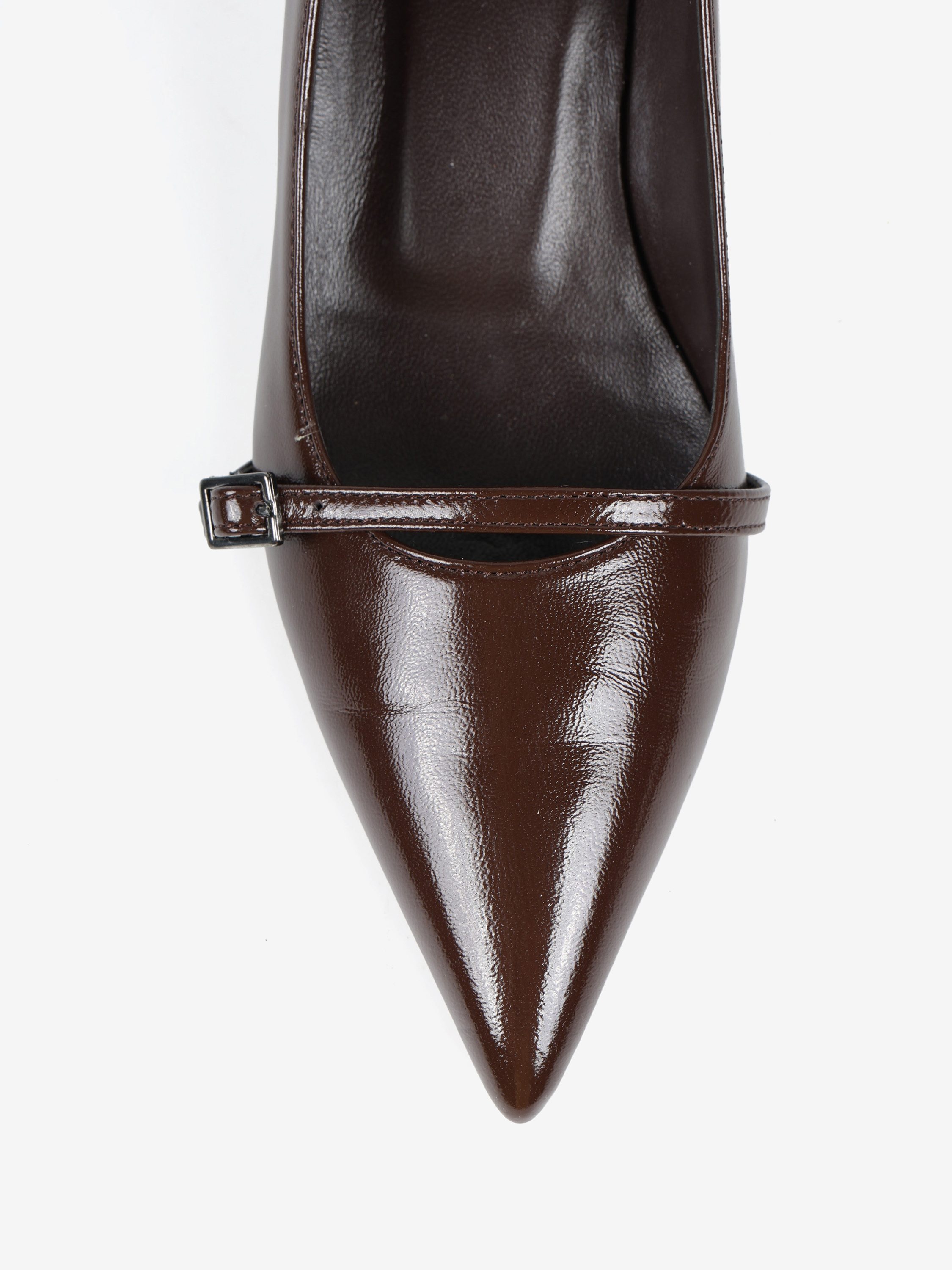 Eleganckie szpilki wykonane ze skóry lakierowanej. Nosek w szpic z ozdobnym paseczkiem.