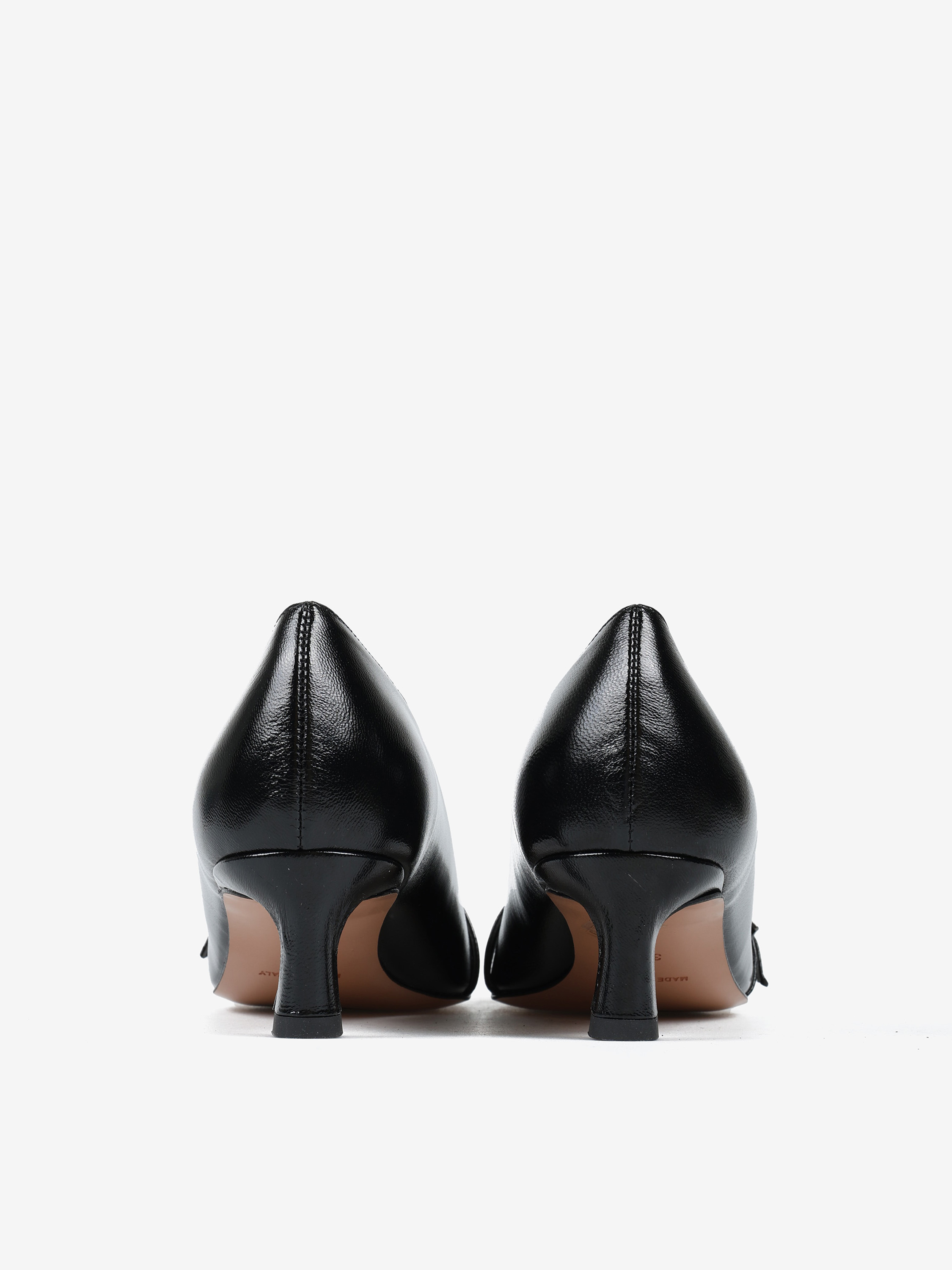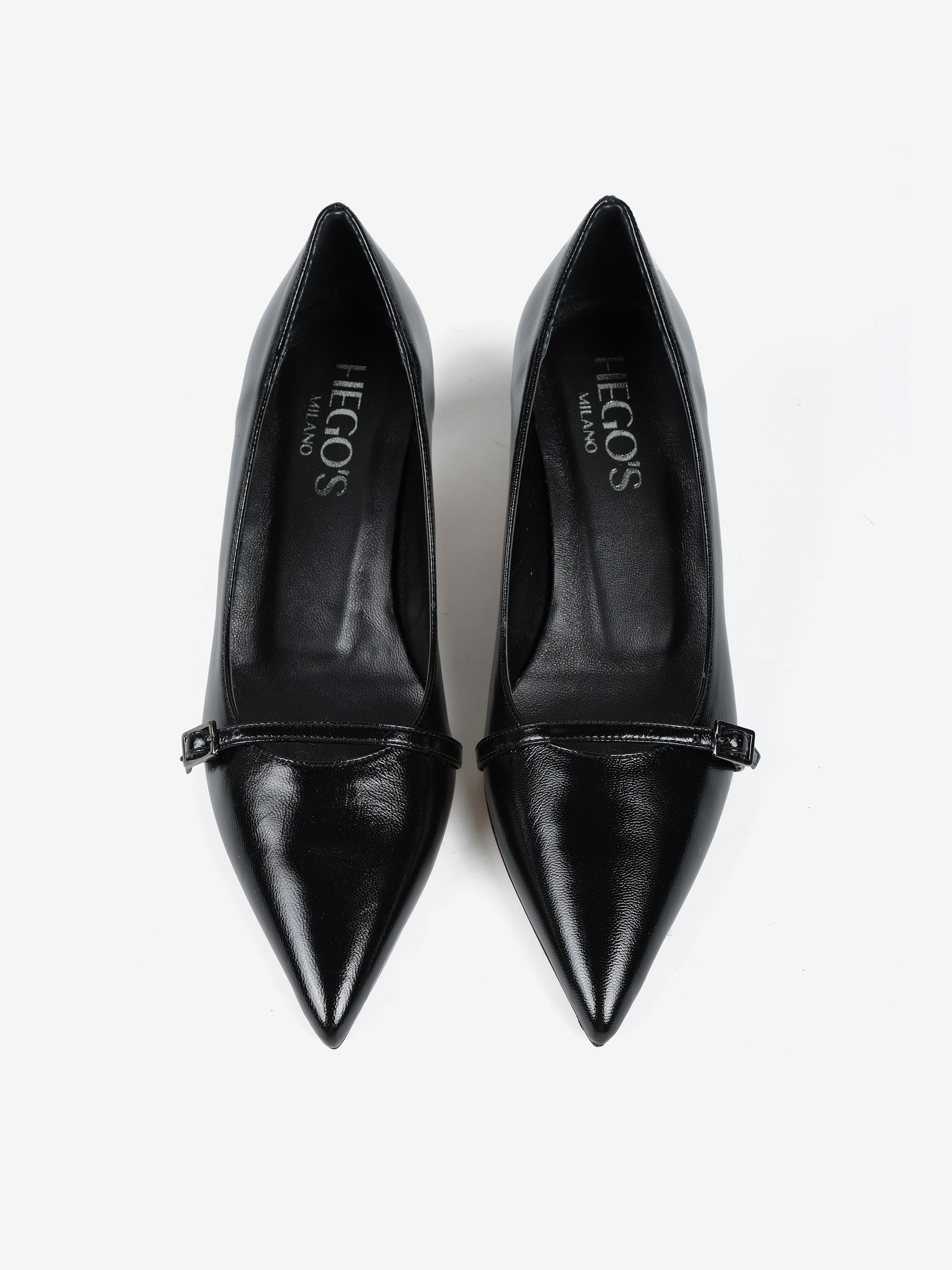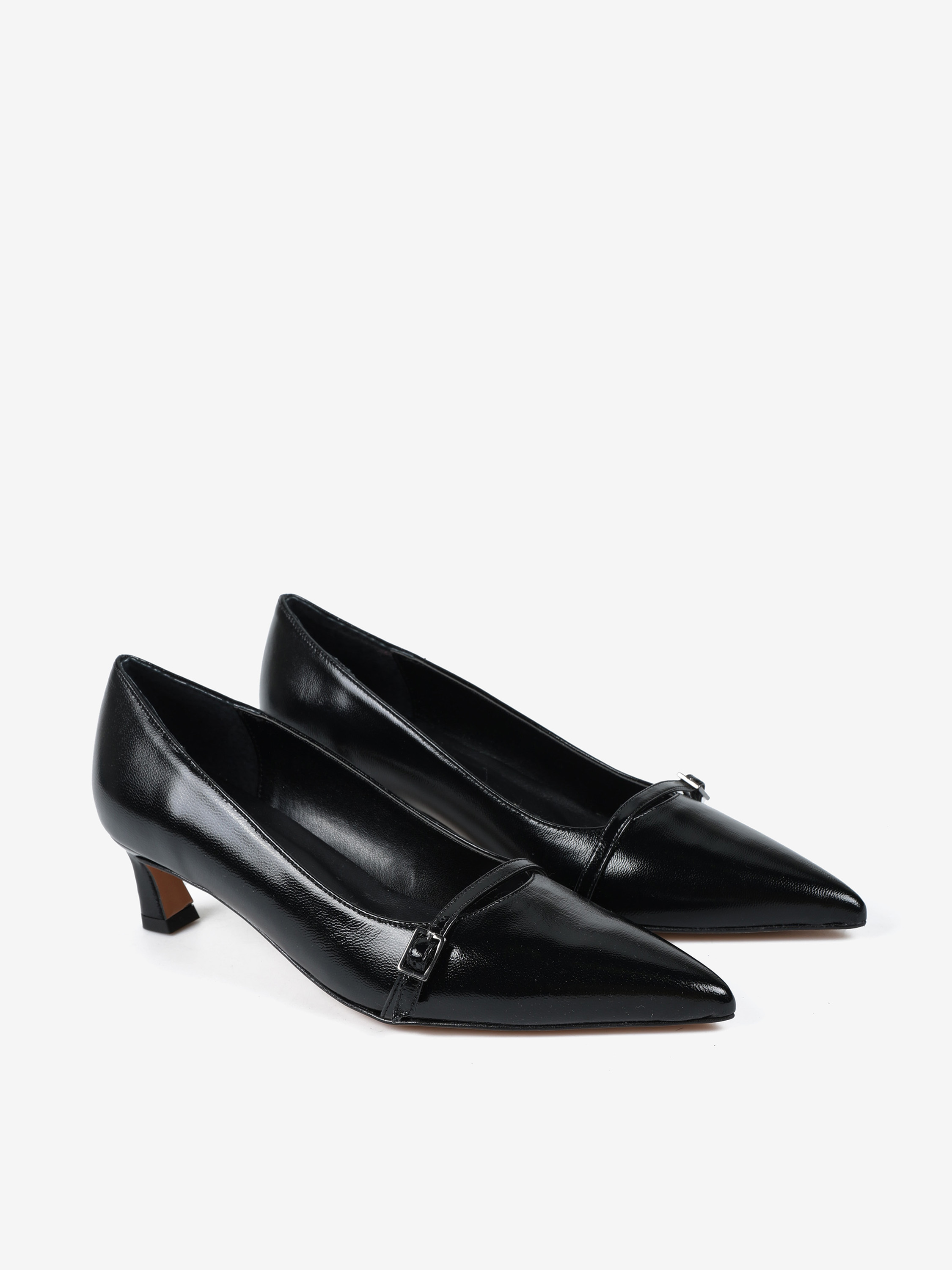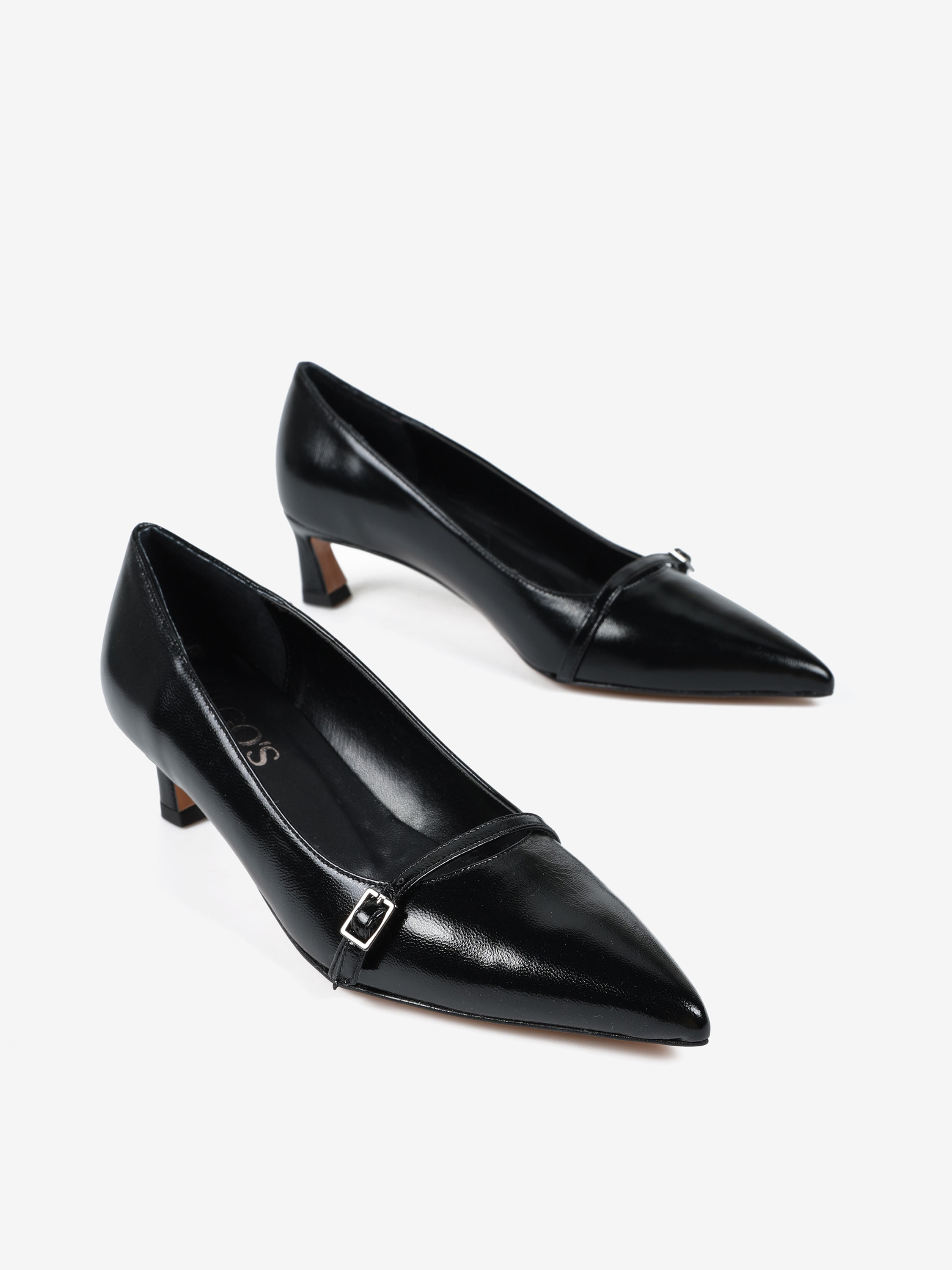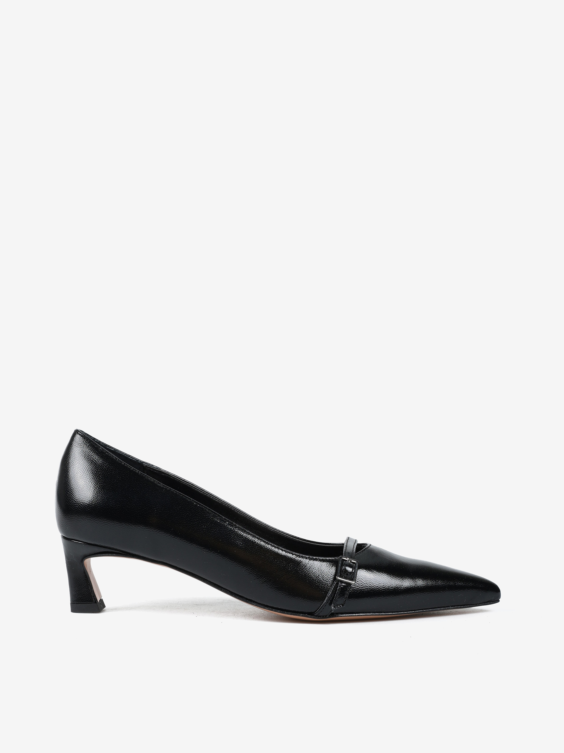 Eleganckie szpilki wykonane ze skóry lakierowanej. Nosek w szpic z ozdobnym paseczkiem.