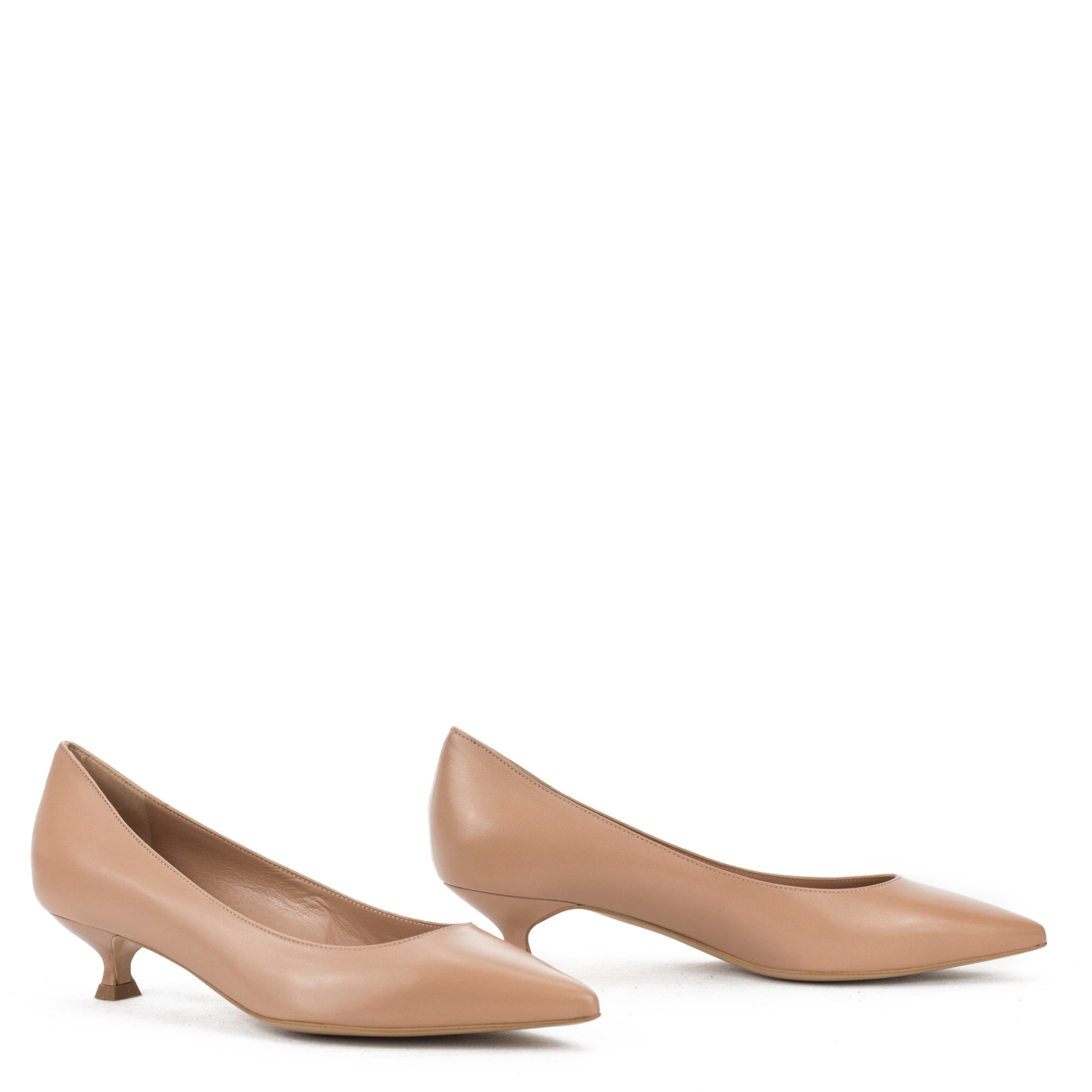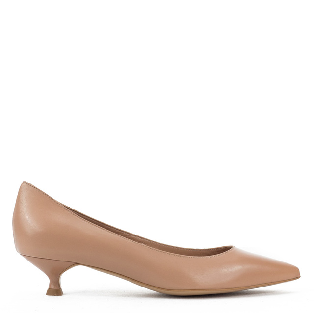 Piękne szpilki w klasycznym kolorze nude na 3 cm obcasie typu "kaczuszka" to idealna, codzienna opcja dla kobiet chcących wysmuklić i wydłużyć sylwetkę. Skórzana cholewka i wkładka gwarantują komfort i wygodę. Dobrze wyprofilowane buty z charakterystycznym noskiem w szpic świetnie pasować będą do wielu stylizacji.