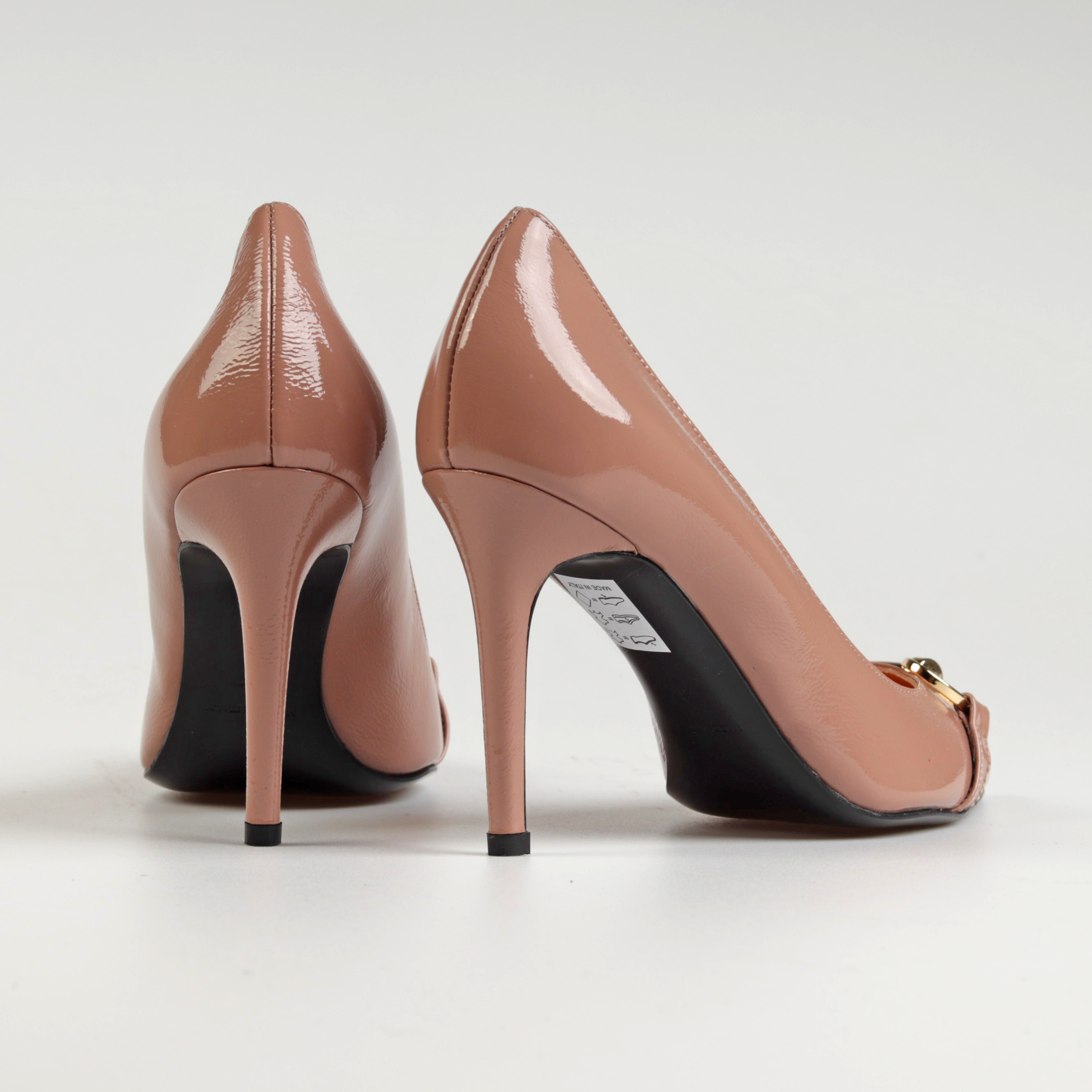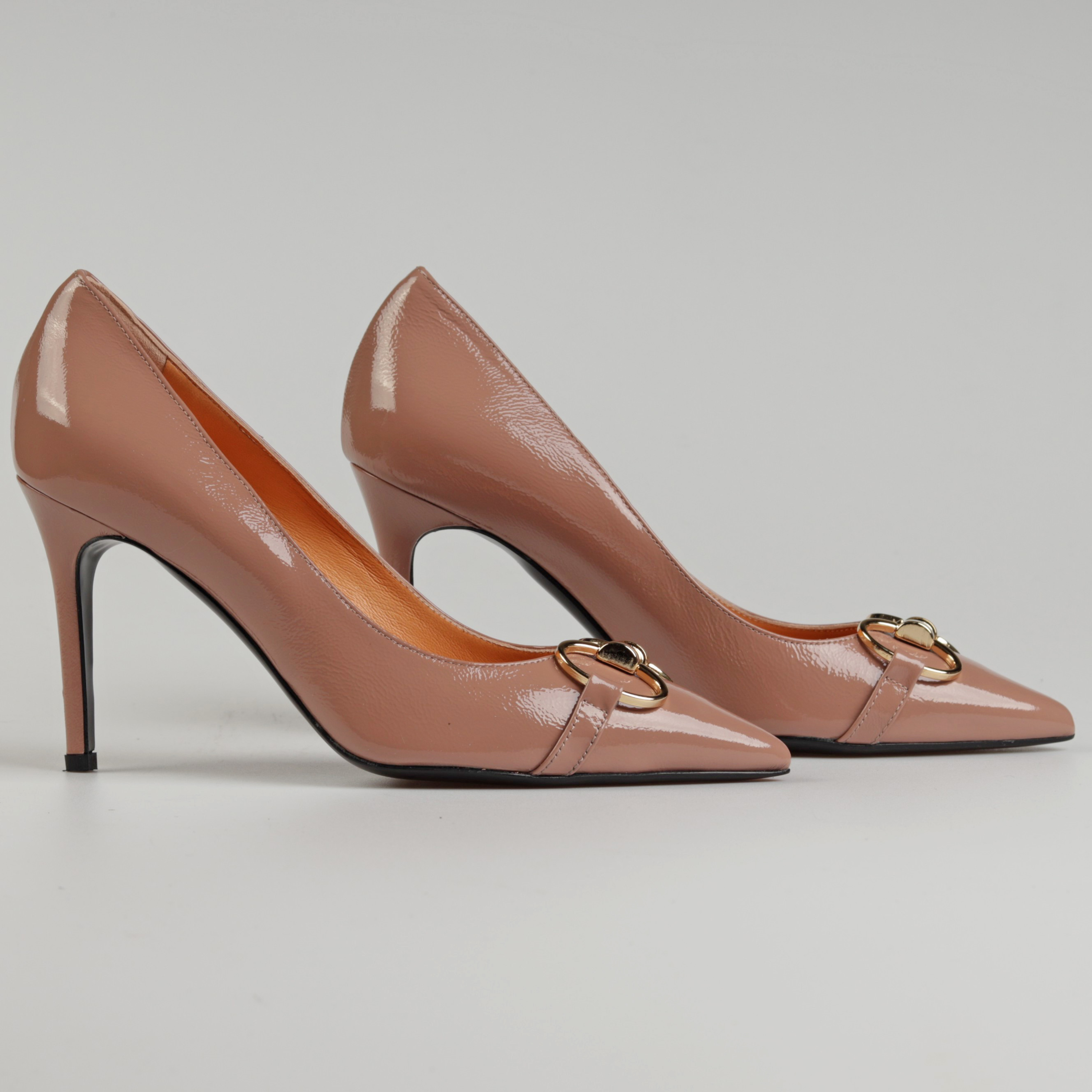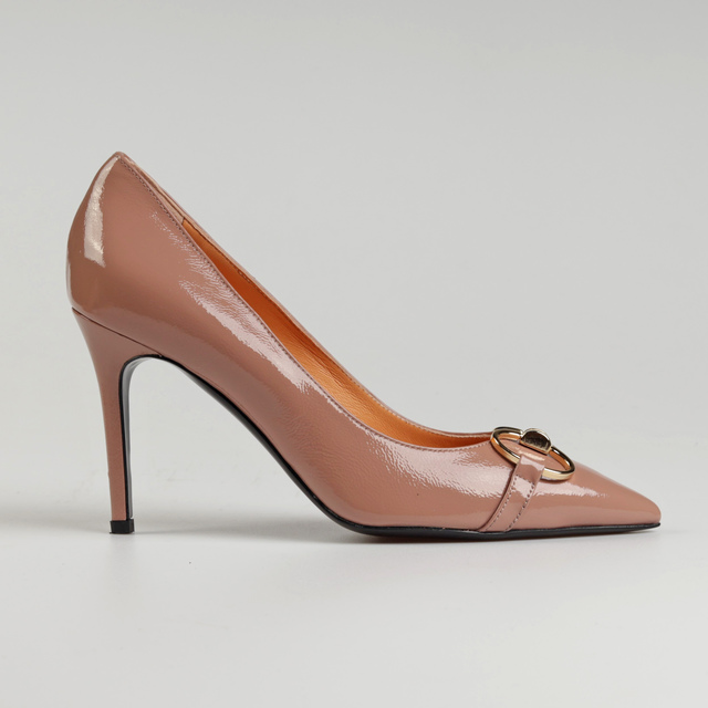 Piękne szpilki na stabilnym, 9 cm obcasie to ponadczasowa propozycja od włoskich projektantów dla HEGO'S Milano stworzona z myślą o eleganckich kobietach ceniących styl i design. Skórzana cholewka i wnętrze oraz dobrze wyprofilowana, skórzana wkładka gwarantują komfort i wygodę przez wiele godzin na nogach. Klasyczny krój szpilek wzbogacony został o złotą, metalową ozdobę, która pięknie prezentuje się na tle laminowanej cholewki.