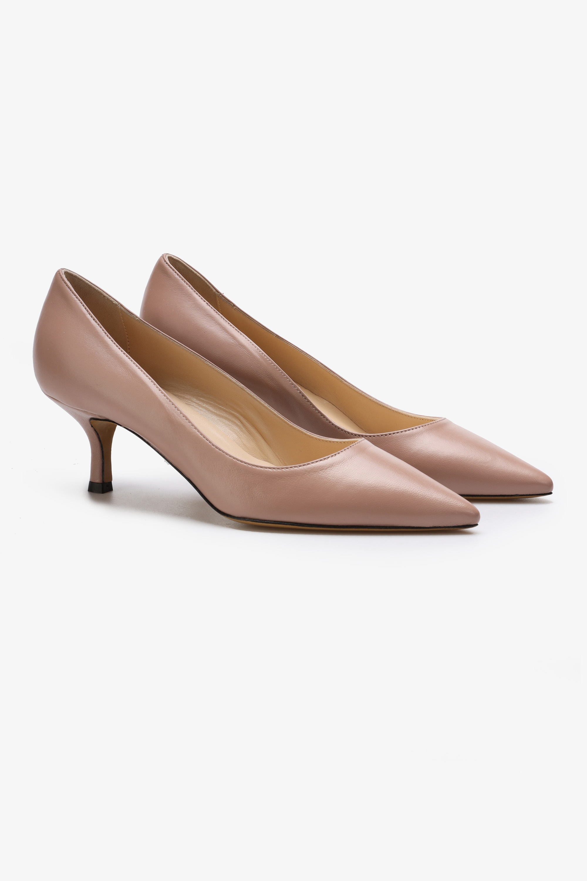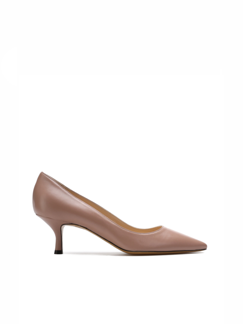 Szpilki w szpic w uniwersalnym, beżowym kolorze wykonane są z włoskiej naturalnej skóry. Niski obcas na szpilce w połączeniu ze skórzaną wkładką i elastyczną, skórzaną podeszwą gwarantują wygodę i komfort. Nosek w szpic wpisuje się nie tylko w obecne Trendy.