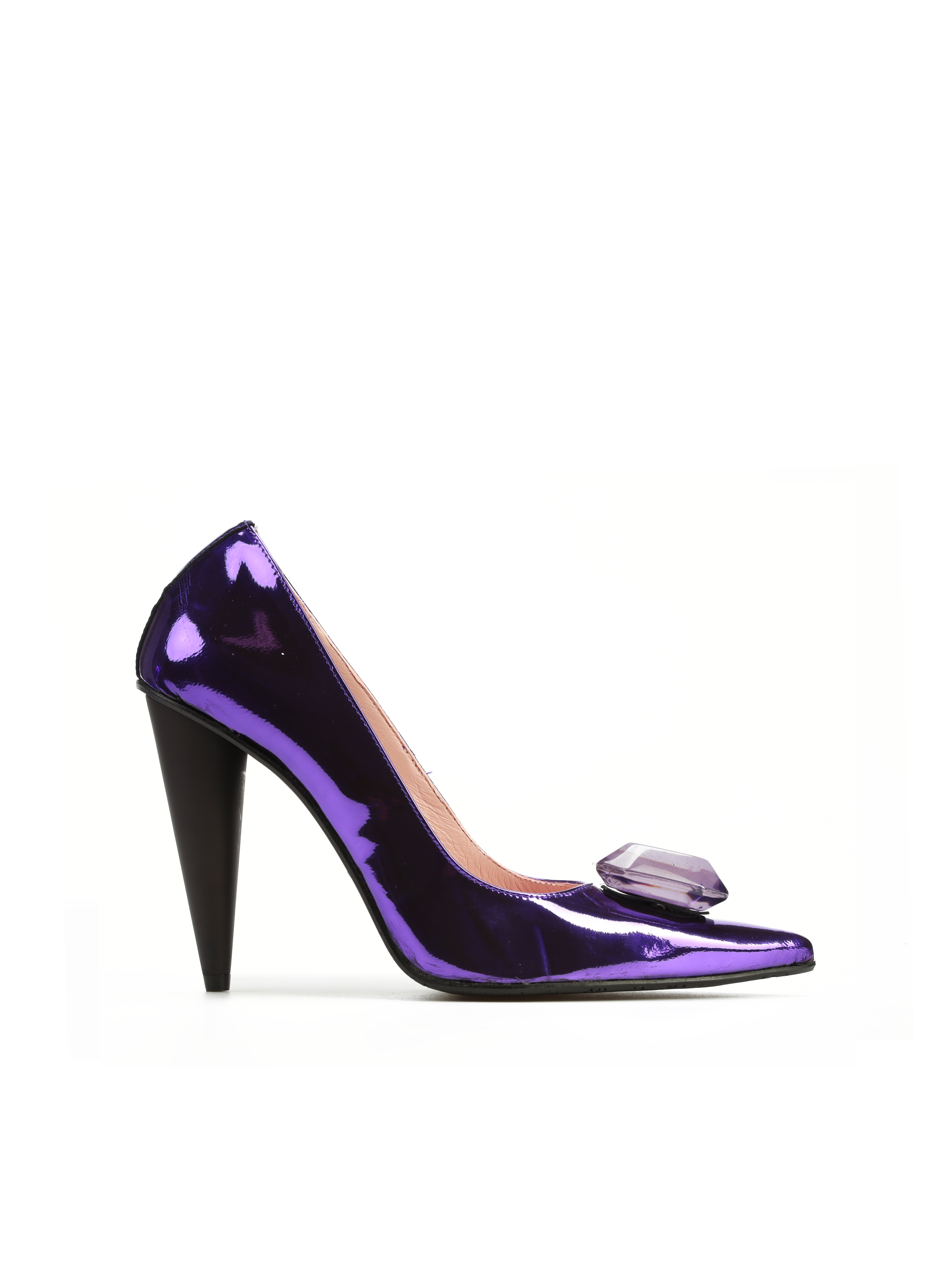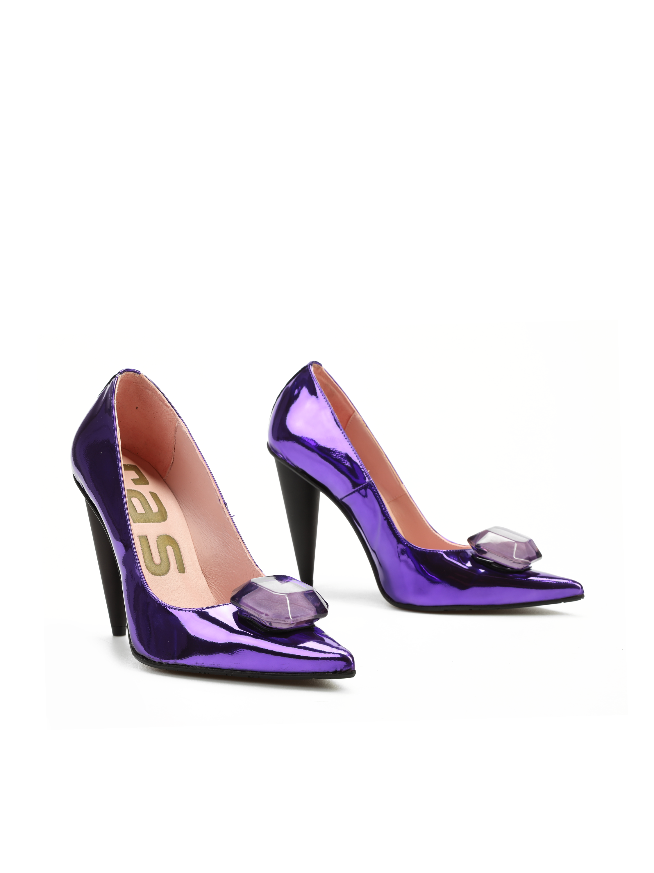 Szpilki w szpic marki RAS to model dla kobiet lubiących się wyróżniać. Cholewka w modnym kolorze wykonana jest z metalizowanej skóry naturalnej. Ozdobiona została broszką z kamienia. Fason dla koneserek obuwia.