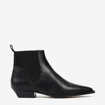 Czarne sztyblety w stylu kowbojskim. Noski w szpic i niski obcas.