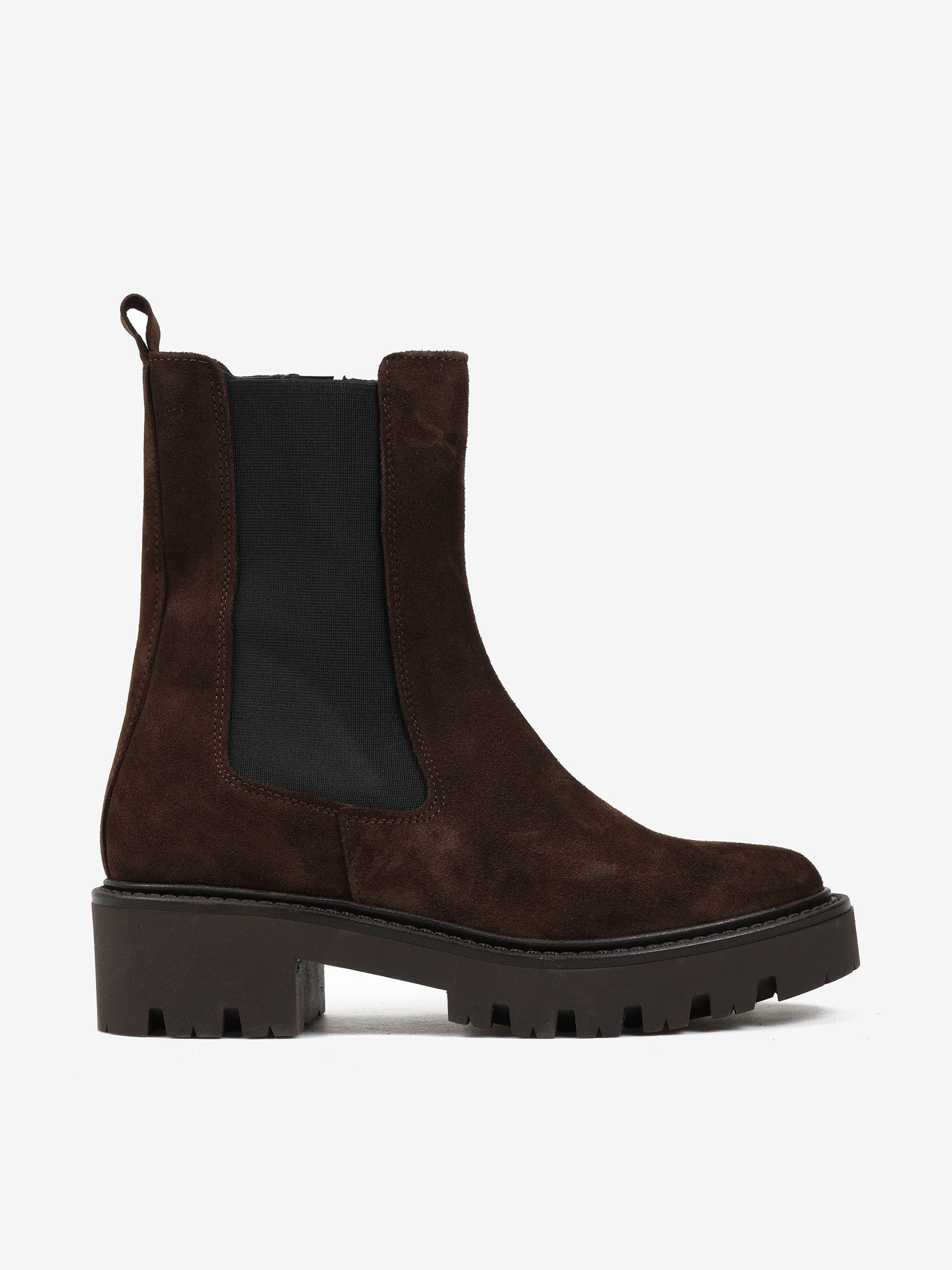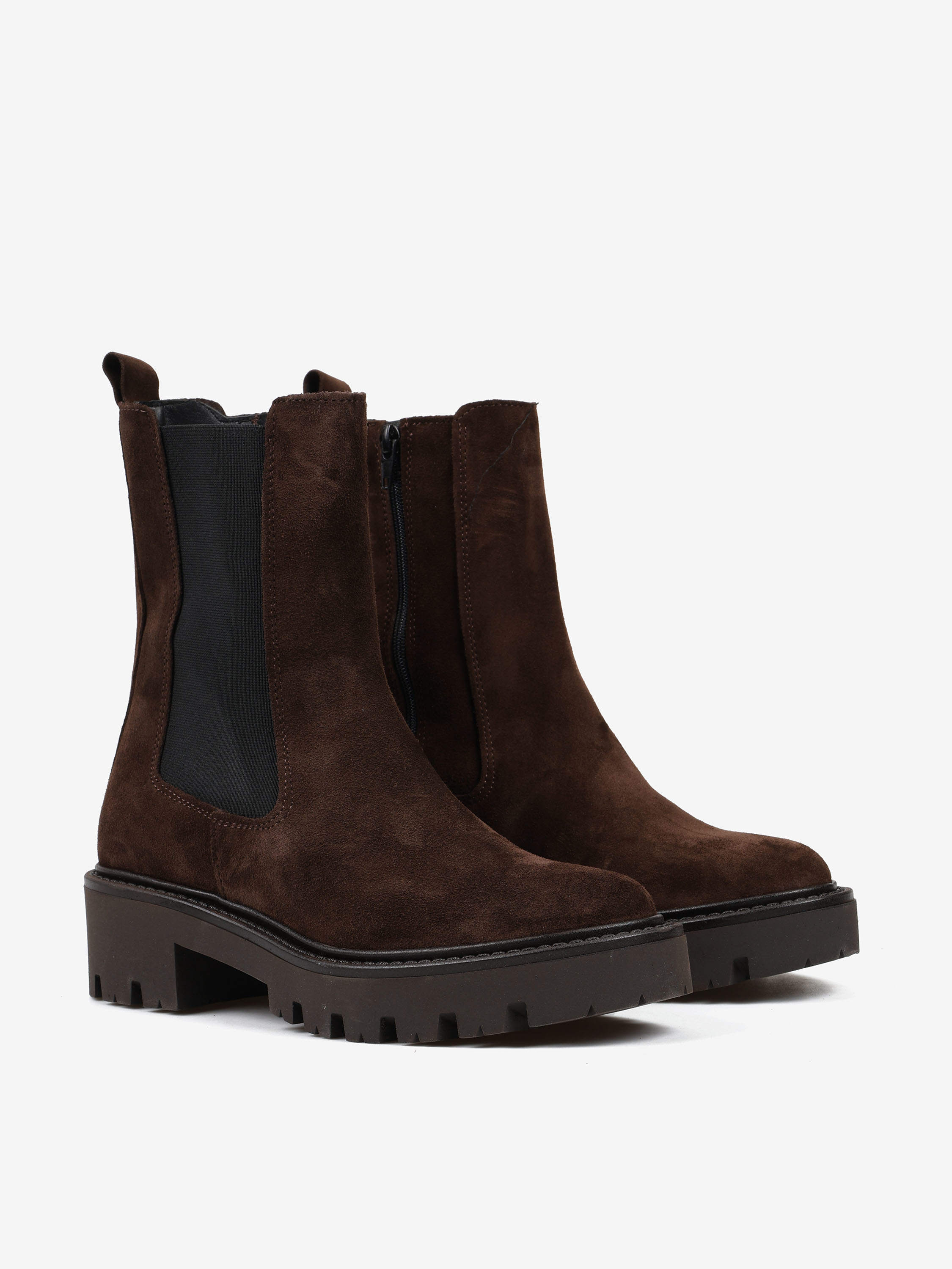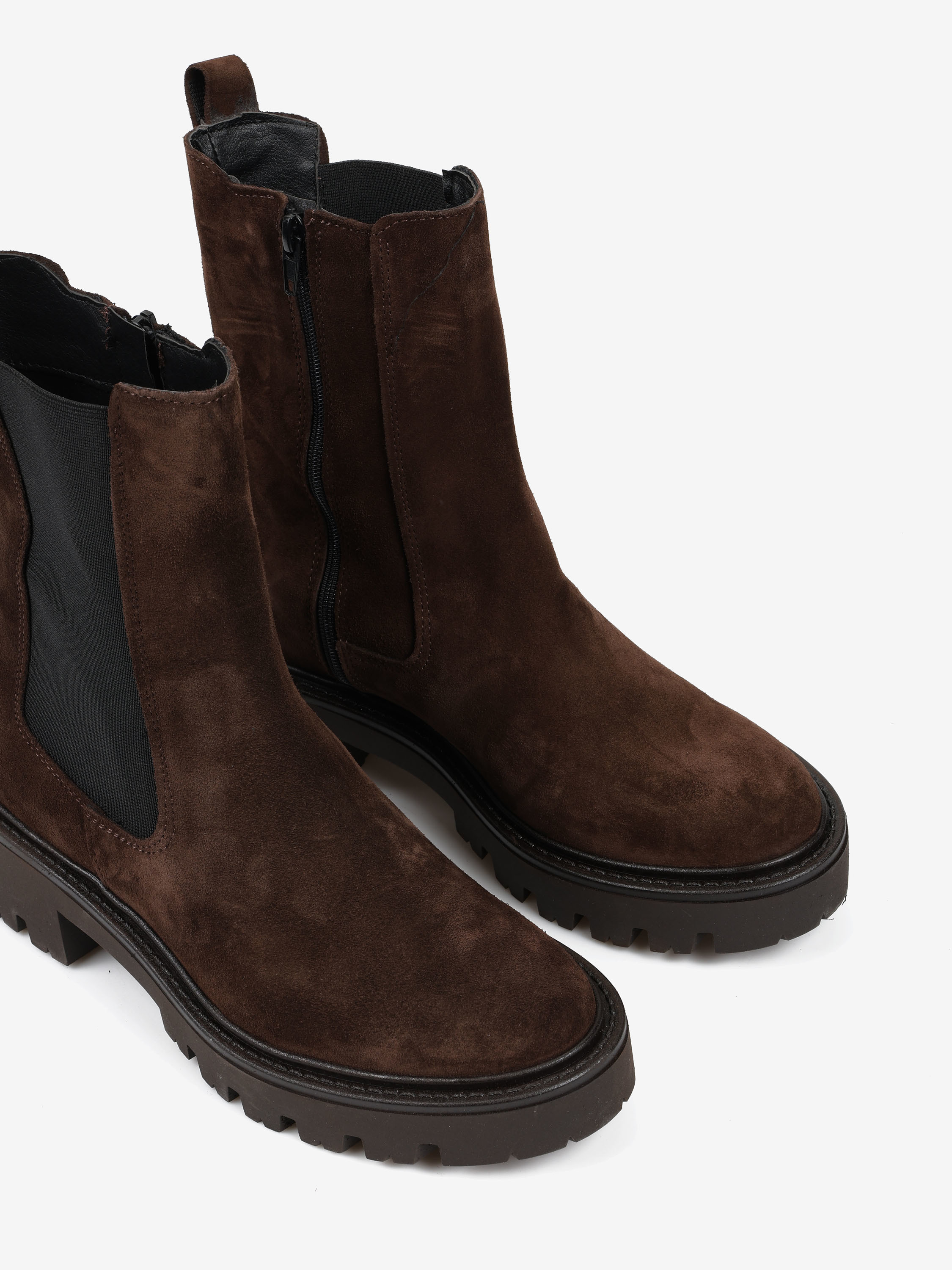 Klasyczne, zamszowe sztyblety na podwyższonej podeszwie.