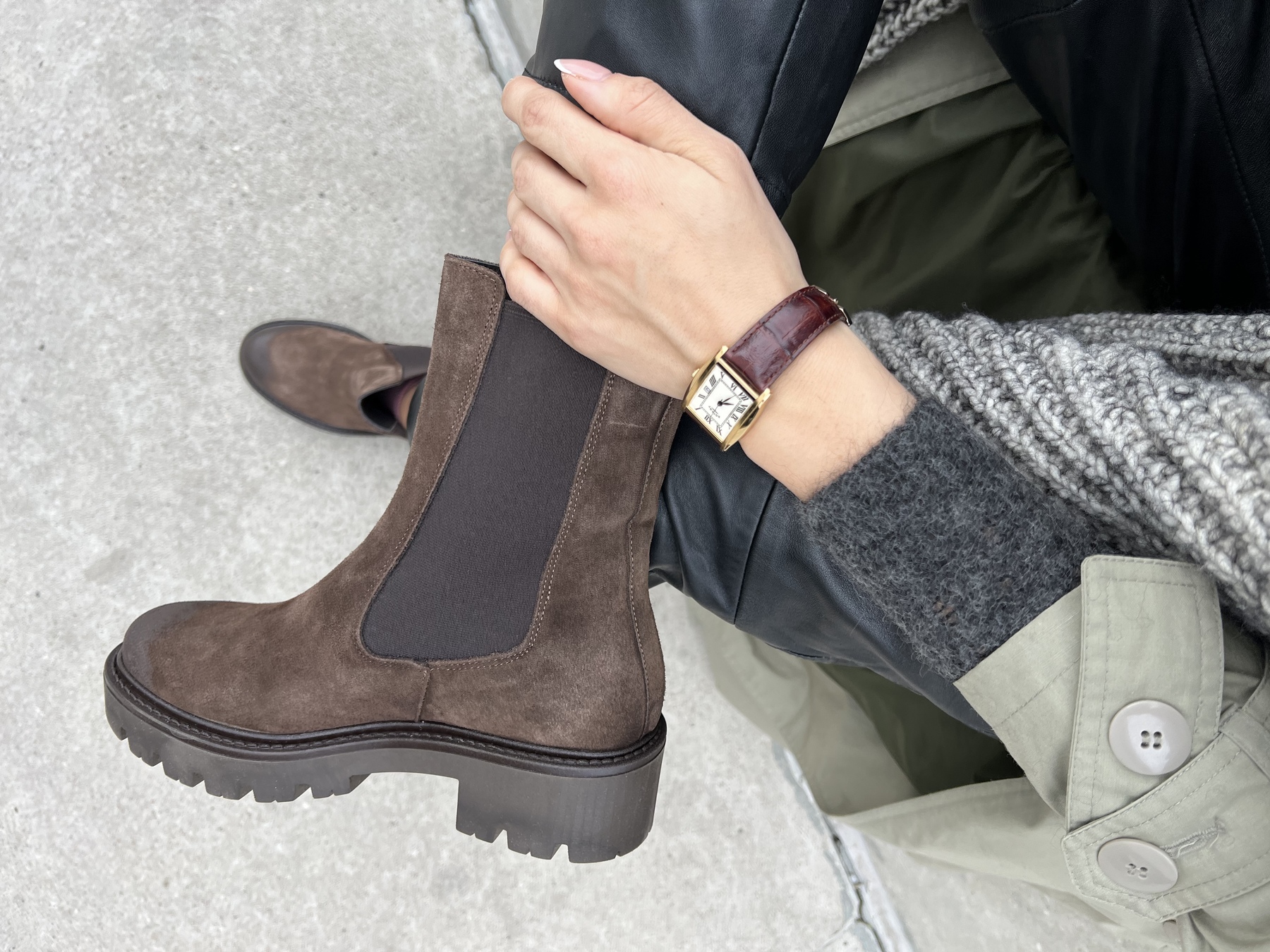 PIELĘGNACJA: Aby dłużej cieszyć się pięknem zamszu, warto zadbać o jego odpowiednią pielęgnację. Zalecamy impregnację bezbarwnym sprayem NANO STRONG przed pierwszym założeniem - to dodatkowa ochrona przed wilgocią i zabrudzeniami.