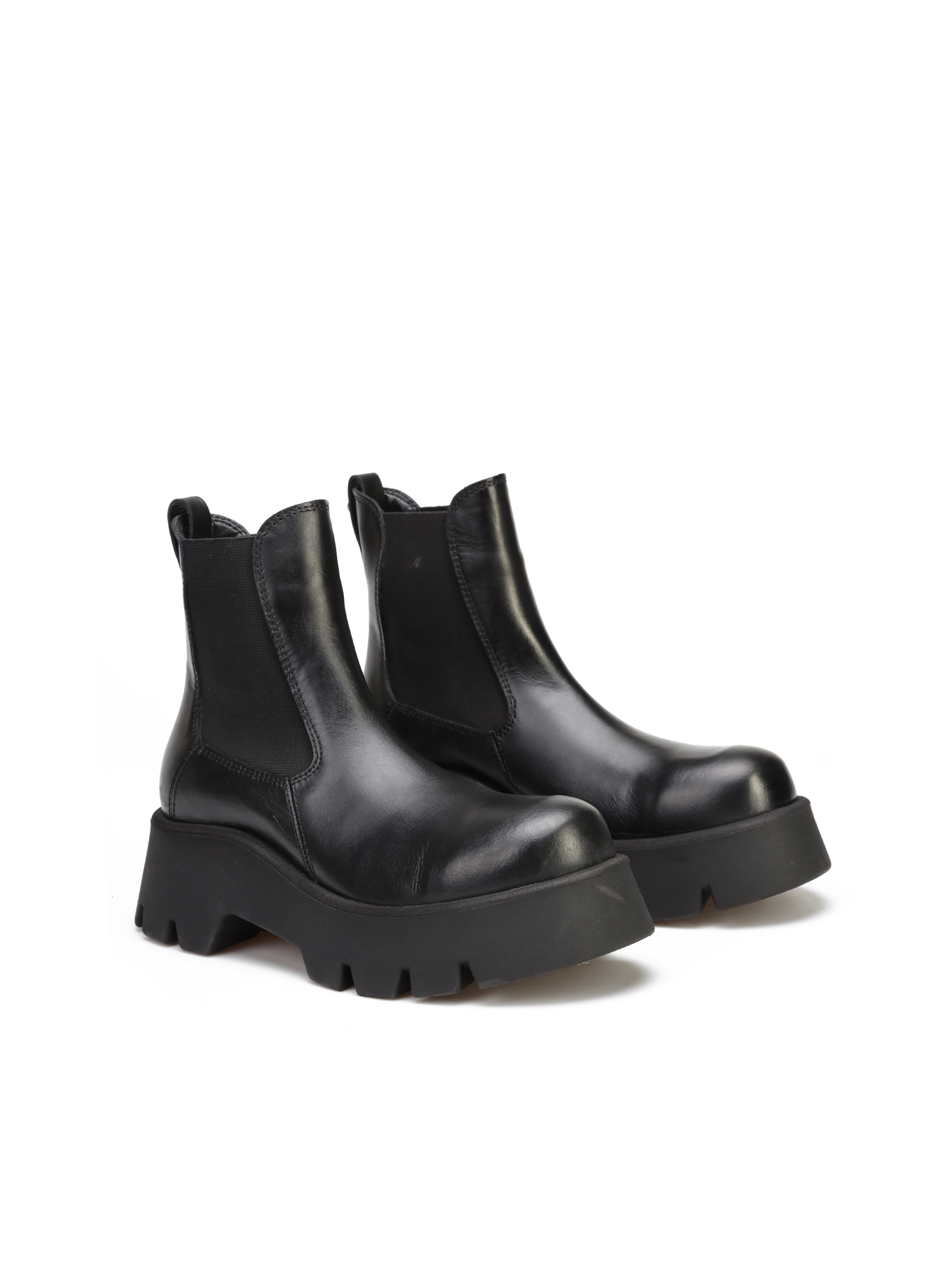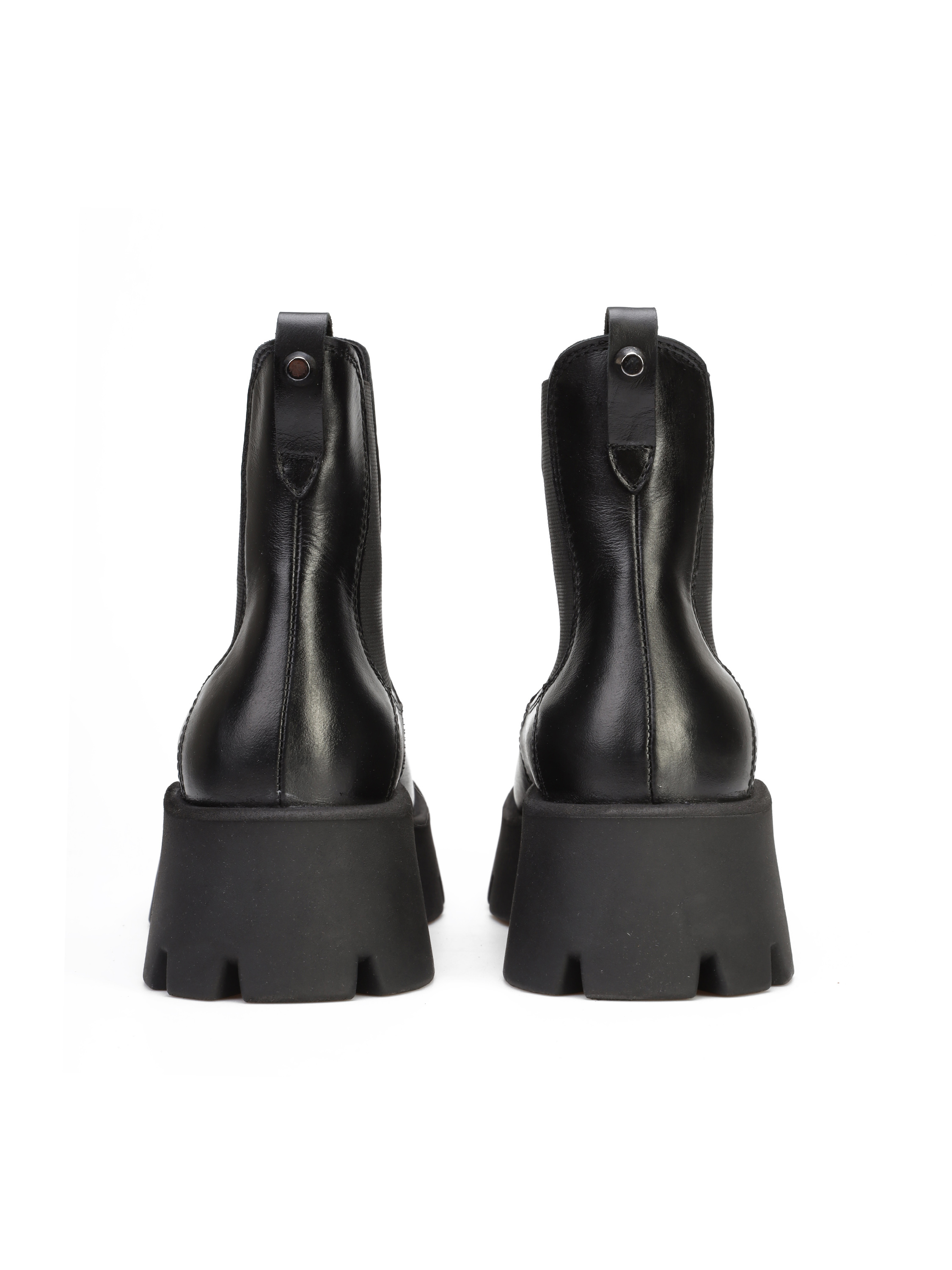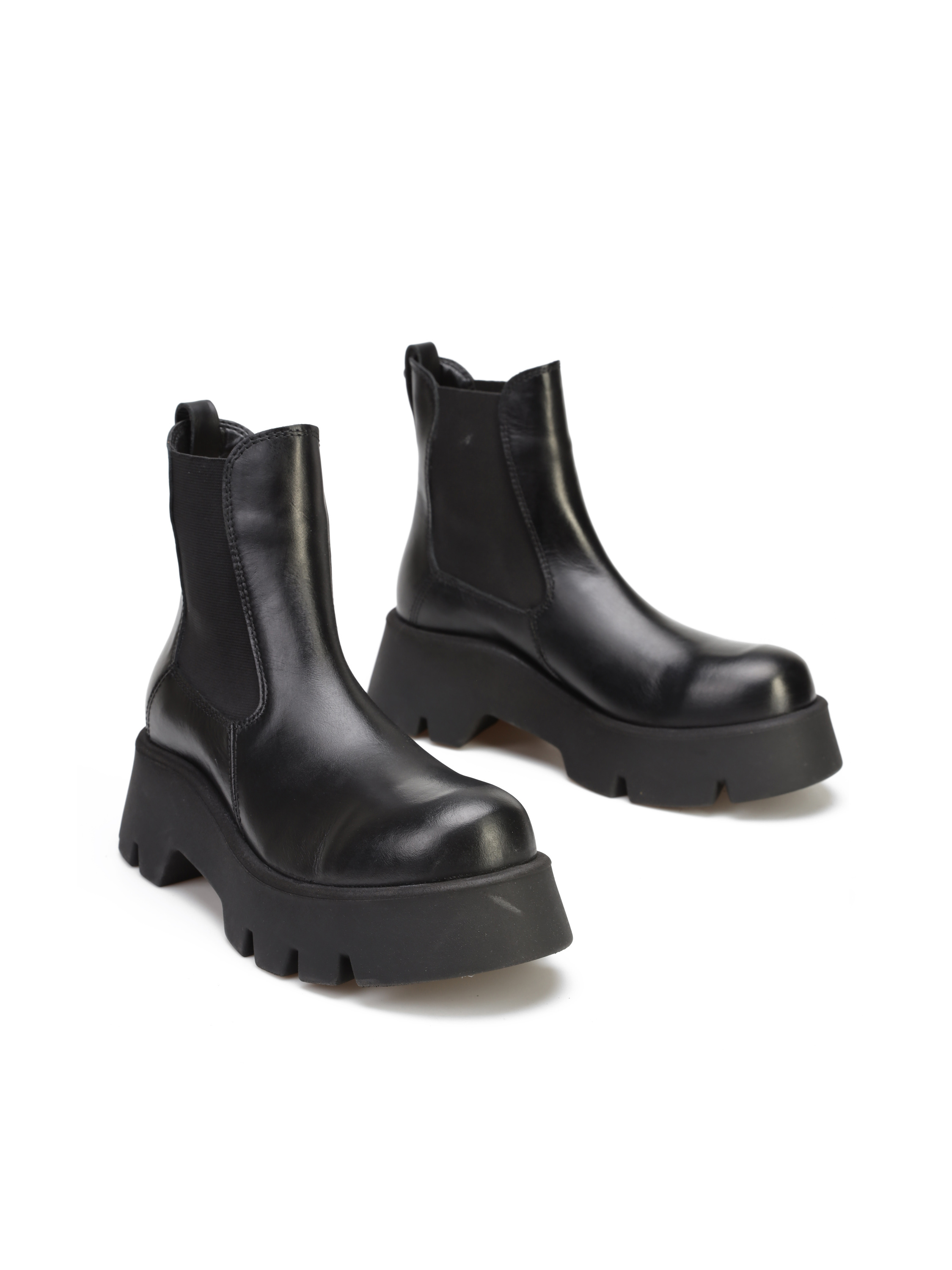 Sztyblety na platformie to must have sezonu. Wsuwana cholewka w czarnym kolorze wykonana jest z naturalnej skóry. Posiada wszytą elastyczną gumę, dzięki czemu idelanie dopasuje się do Twojej nogi. Lekkie i stylowe.