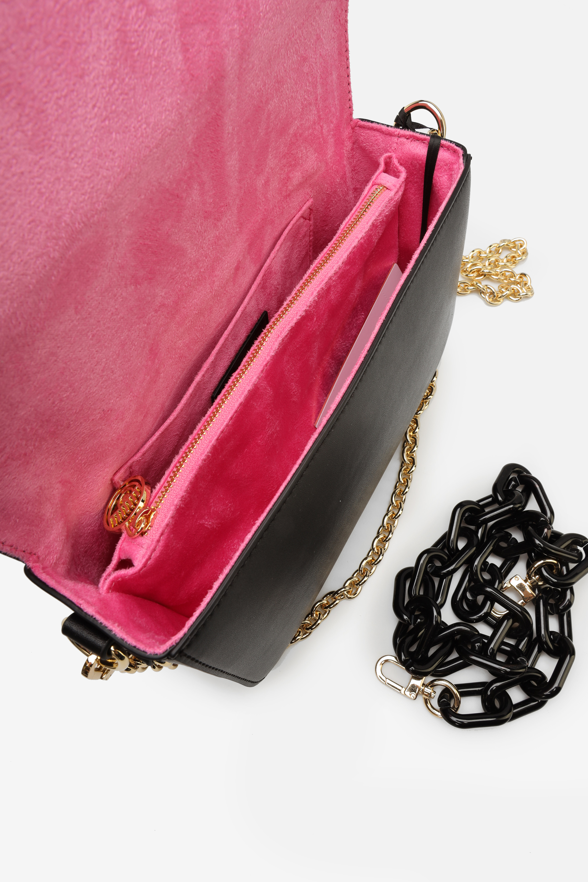 Przedstawiamy bestsellerowy model od CHIARY FERRAGNI! Torebka, którą musi w swojej szafie mieć każda kobieta kochająca modę, która jest na bieżąco z najgorętszymi trendami! Torebka jest niezwykle pakowna. Dzięki czterem przegródkom, w tym jednej na zamek błyskawiczny, każda rzecz znajdzie swoje miejsce. Wykonana z najwyższej jakości materiałów będzie znakomitym dodatkiem na codzień. Wypukły relief z logo na klapce idealnie współgra z najwyższej jakości gładką imitacją skóry. Do torby dołączone są dwa łańcuszki, które można nosić dowolnie zupełnie zmieniając charakter stylizacji.