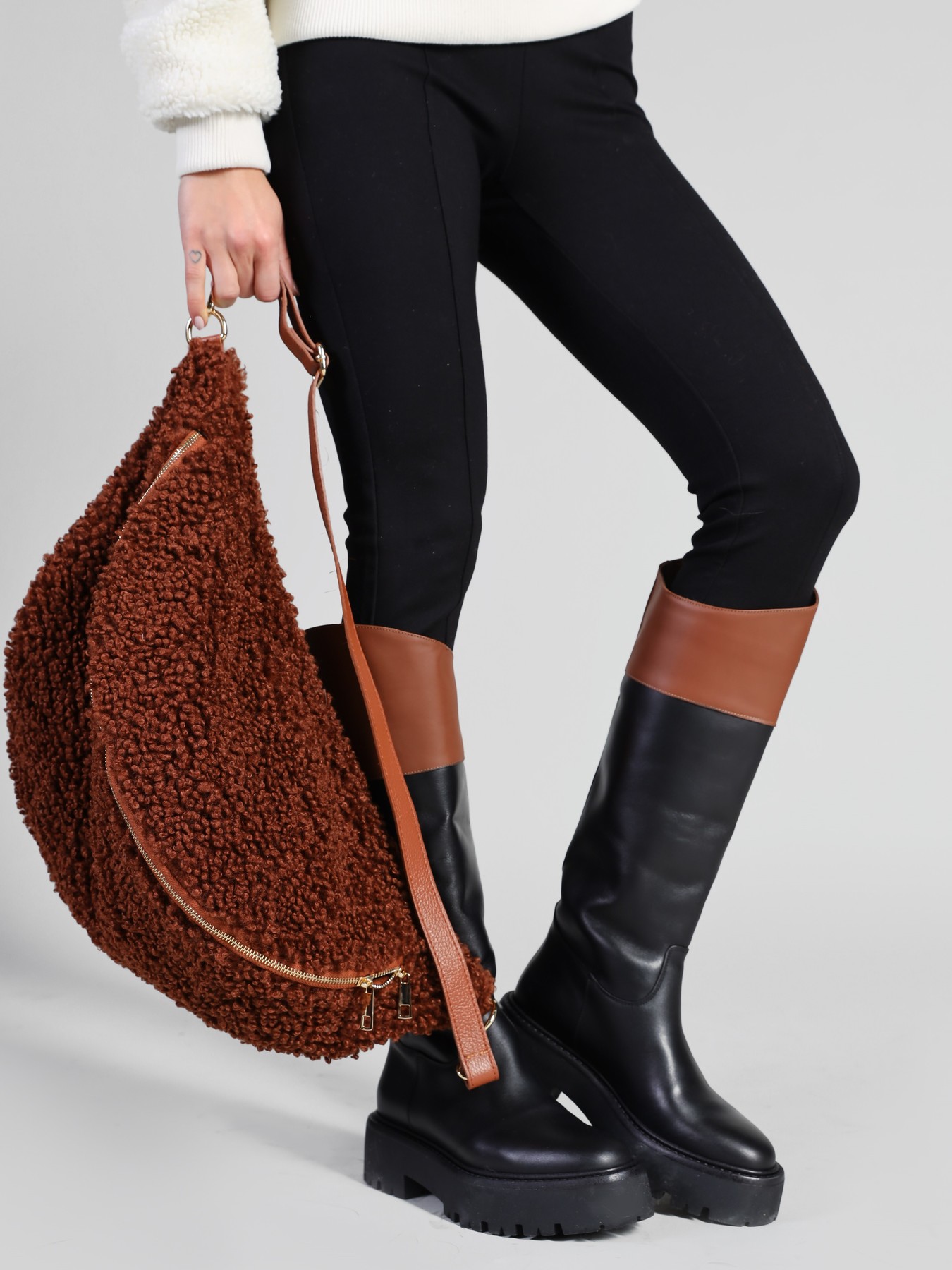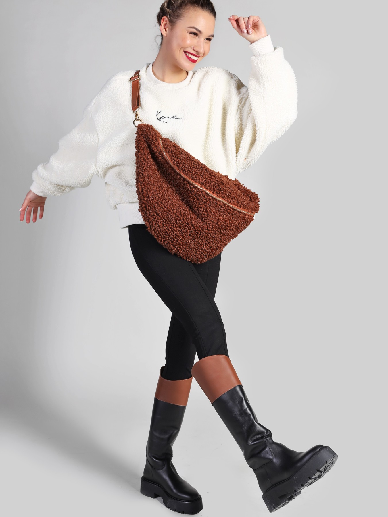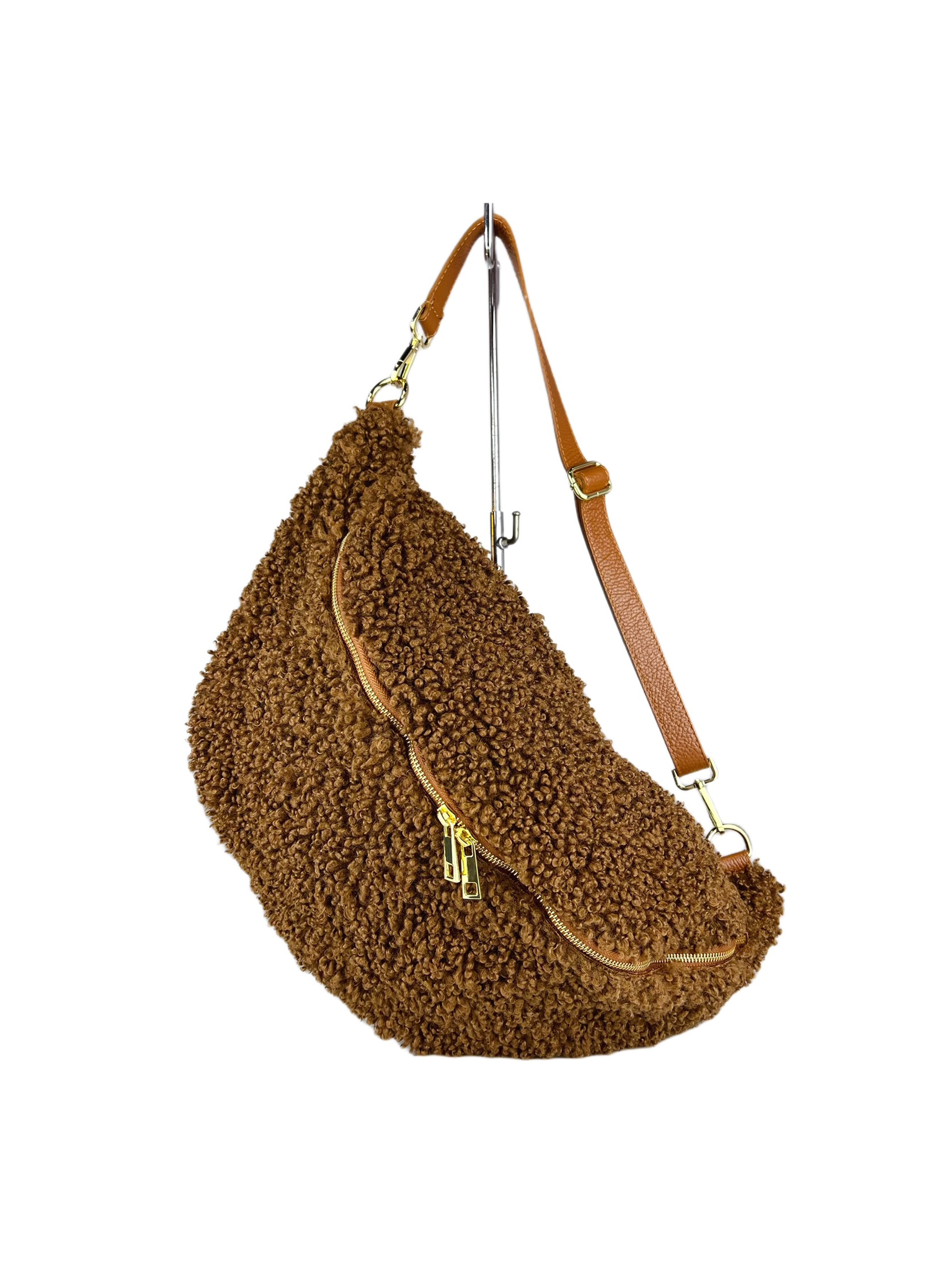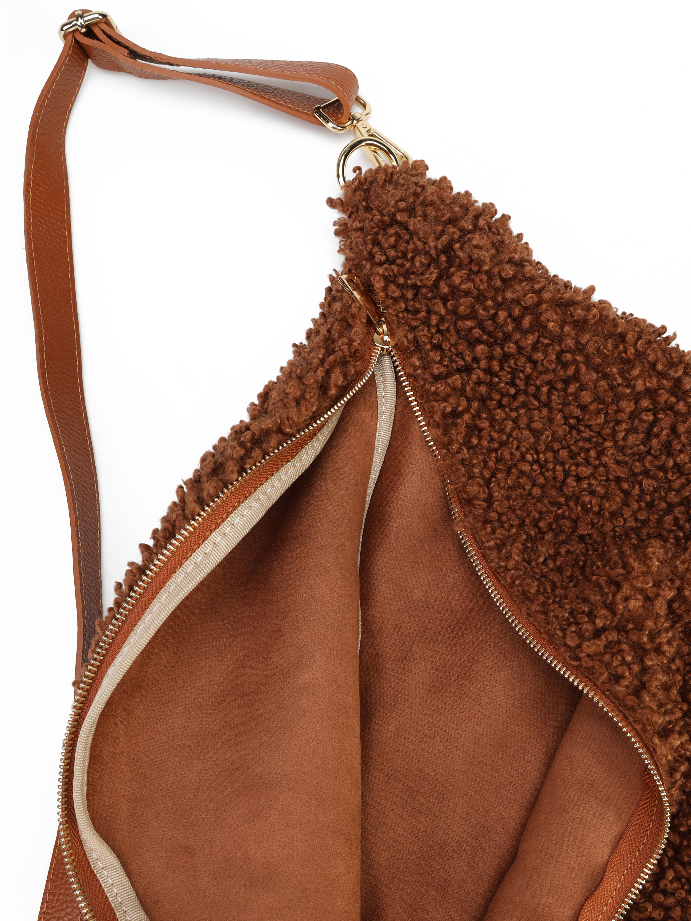 Duża torebka damska HEGO'S Milano wykonana jest z przyjemego w dotyku, miękkiego materiału. Zapinana jest na zamek błyskwiczny. Wnętrze to jedna przestrzeń podszyta materiałem. Torebka posiada regulowany pasek na ramię.