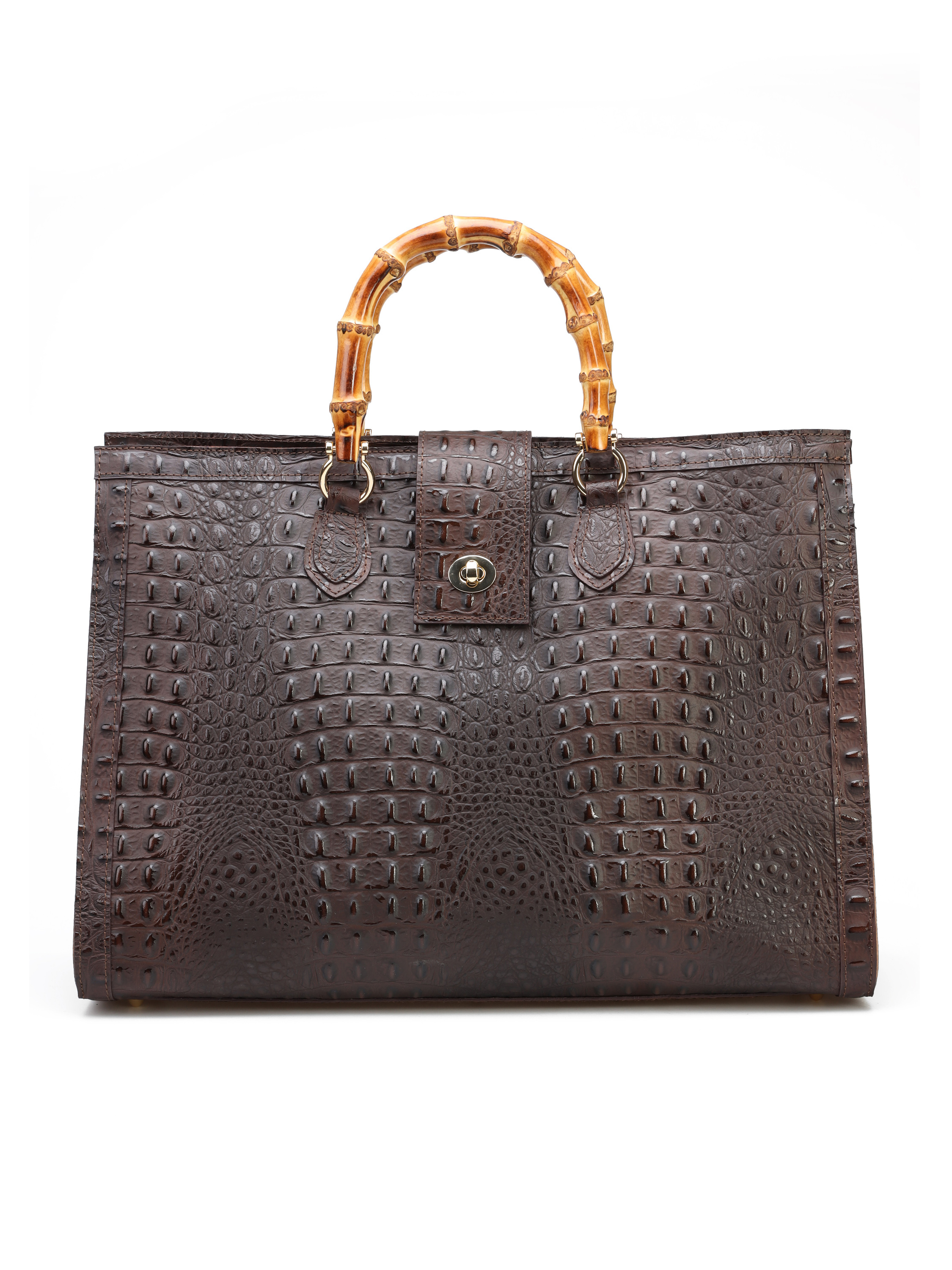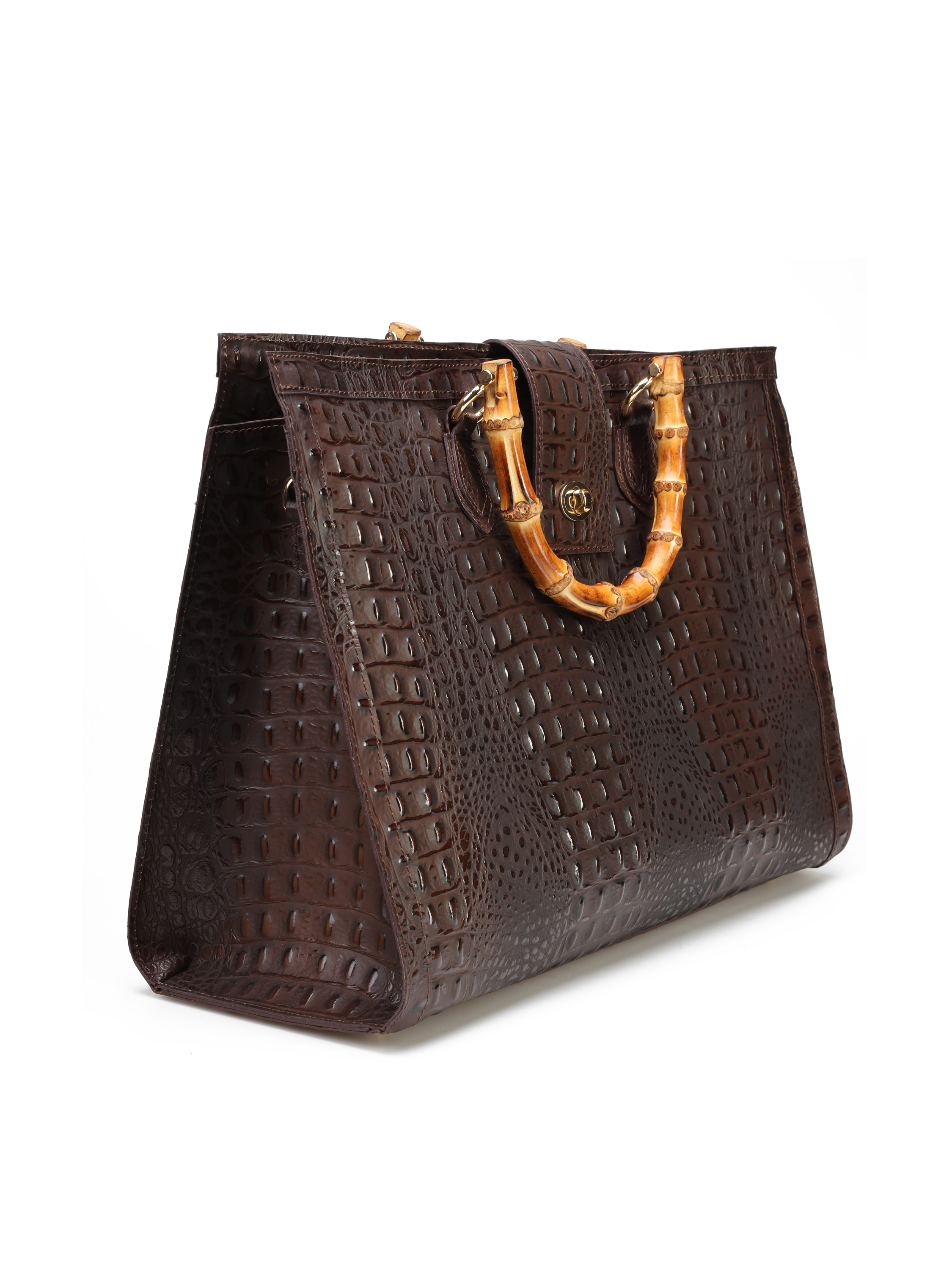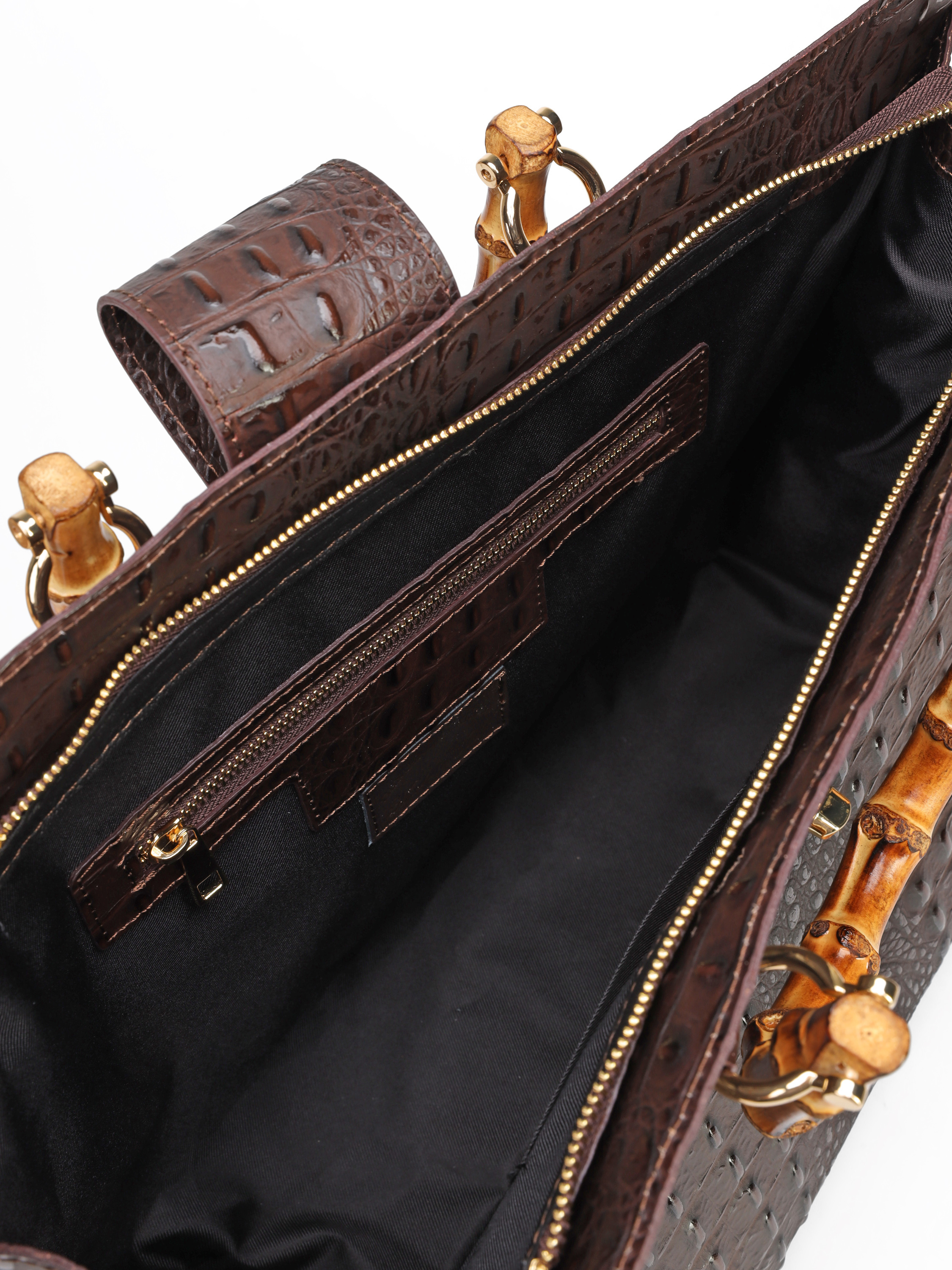 Duża torebka damska HEGO'S Milano wykonana jest włoskiej, naturalnej skóry. Wnętrze posiada dużą przestrzeń oraz kieszeń zapinaną na zamek błyskwiczny. Detale w postaci tłoczonej skóry oraz bambusowa, stylowa rączka wyróżniają ten model. Torebkę moża również nosić z paskiem na ramieniu.