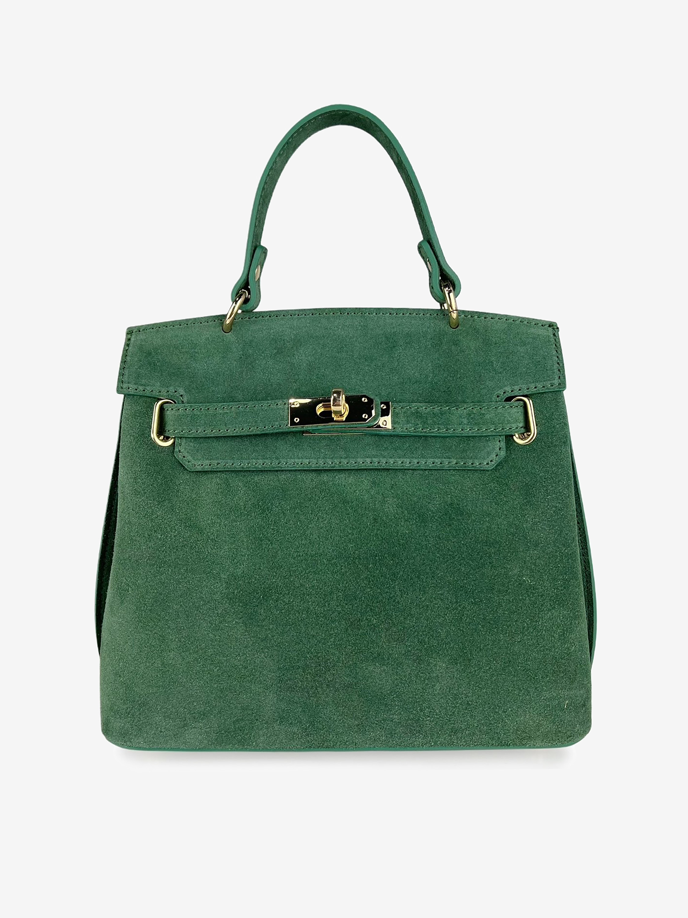Zamszowa torbka z kolekcji HEGO'S Milano w zielonym kolorze. Wewnętrz mała kieszeń zapinana na suwak oraz długi pasek na ramię.