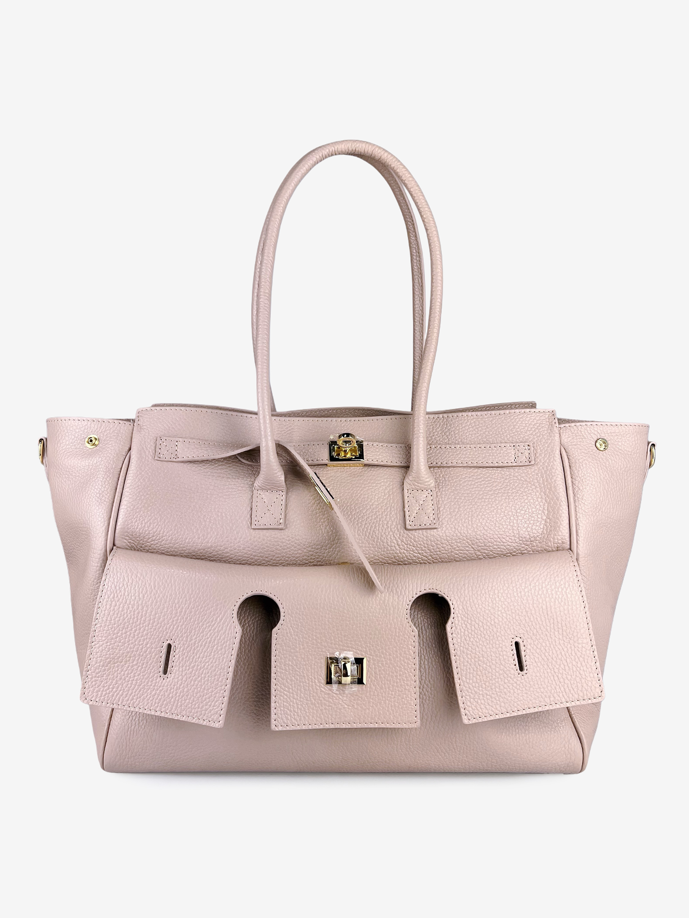 Duża, pojemna, wielofunkcyjna torba. Przednia przegródka z ozdobnymi klapami, zapinana na magnes. Boki torby mają wszyte napy, pozwalające dopasowanie kształtu torby. Dodatkowy, odczepiany pasek do noszenia na ramię.