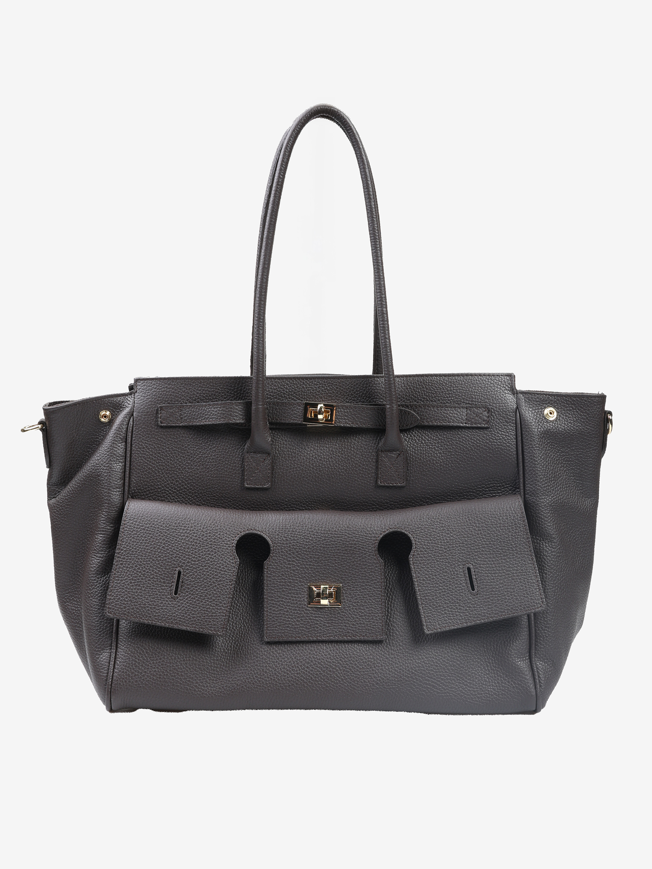 Duża, pojemna, wielofunkcyjna torba. Przednia przegródka z ozdobnymi klapami, zapinana na magnes. Boki torby mają wszyte napy, pozwalające dopasowanie kształtu torby. Dodatkowy, odczepiany pasek do noszenia na ramię.