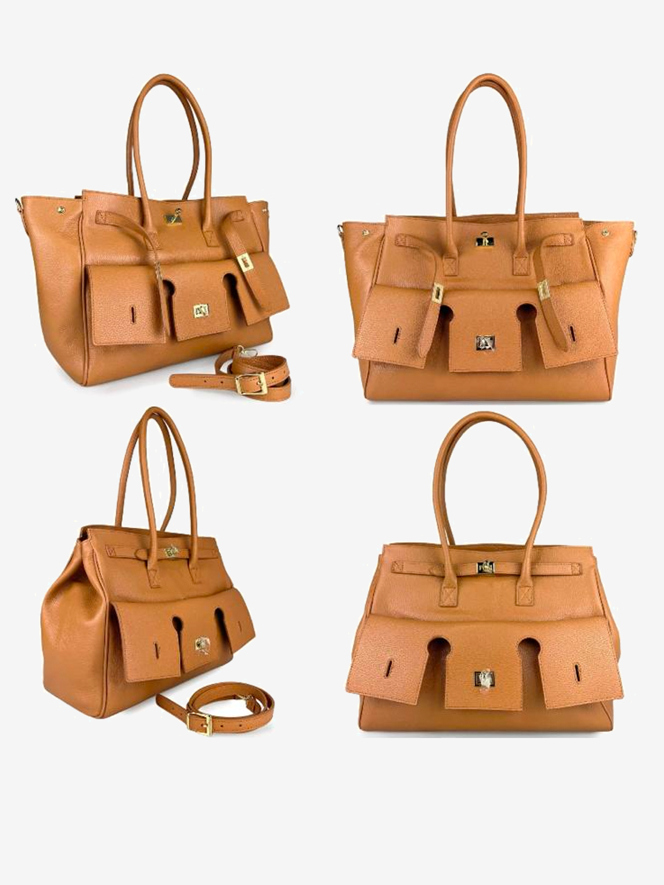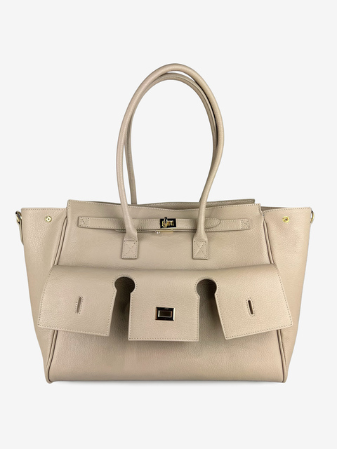Duża, pojemna, wielofunkcyjna torba. Przednia przegródka z ozdobnymi klapami, zapinana na magnes. Boki torby mają wszyte napy, pozwalające dopasowanie kształtu torby. Dodatkowy, odczepiany pasek do noszenia na ramię.