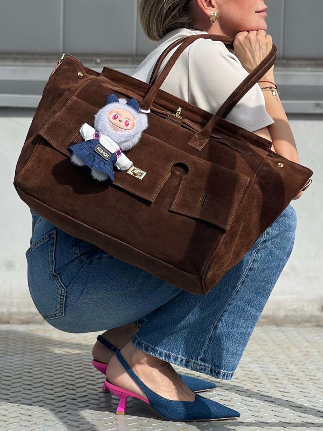 Duża, pojemna, wielofunkcyjna torba. Przednia przegródka z ozdobnymi klapami, zapinana na magnes. Boki torby mają wszyte napy, pozwalające na dopasowanie kształtu torby. Dodatkowy, odczepiany pasek do noszenia na ramieniu.