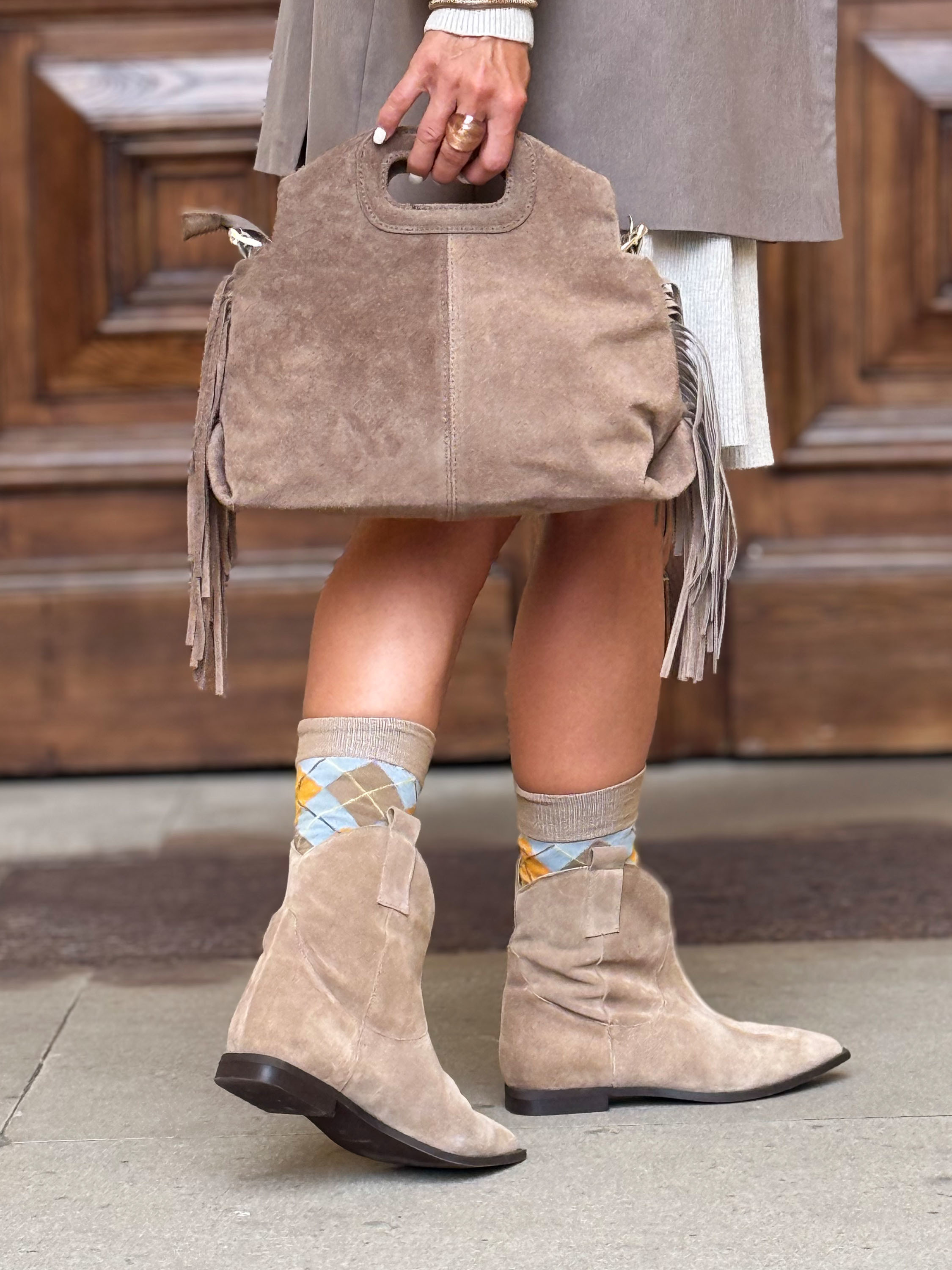 PIELĘGNACJA: Aby dłużej cieszyć się pięknem zamszu, warto zadbać o jego odpowiednią pielęgnację. Zalecamy impregnację bezbarwnym sprayem NANO STRONG przed pierwszym założeniem - to dodatkowa ochrona przed wilgocią i zabrudzeniami.