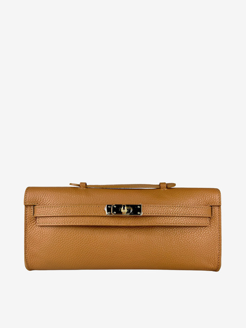 Mała kopertówka z ozdobnym, złotym zapięciem. Dodatkowy, odczepiany pasek do noszenia na ramieniu.